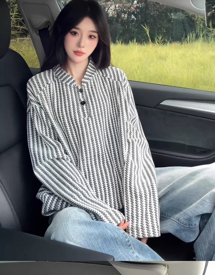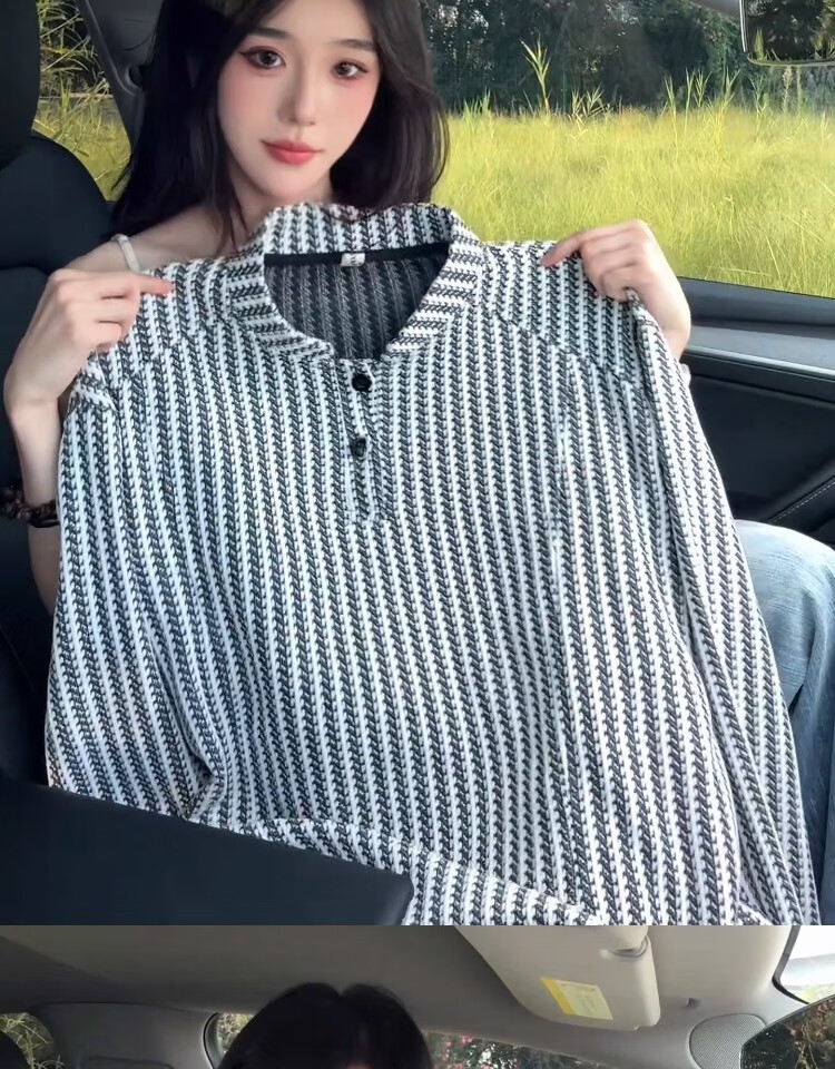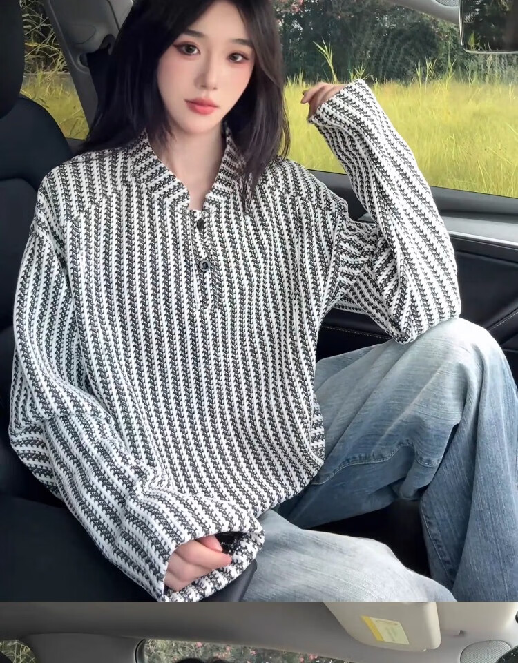 Cantu herringbone pattern American Henry collar sweatshirt men's spring and autumn heavyweight long-sleeved T-shirt houndstooth bottoming shirt white 2XL