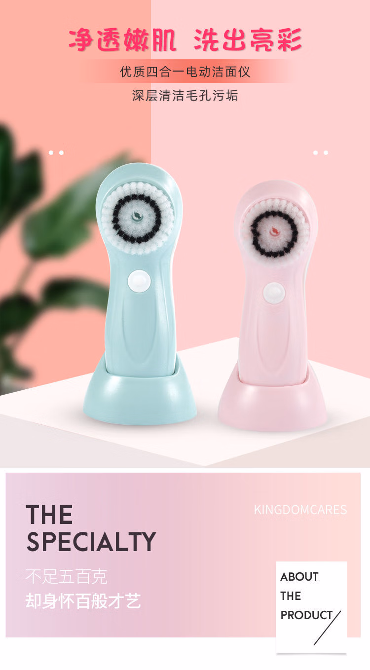 Rechargeable facial cleansing brush, electric waterproof facial cleansing instrument, pore cleaner, blackhead absorber, facial cleansing instrument, cleansing brush, blue upgraded rechargeable facial cleansing instrument
