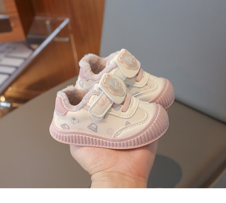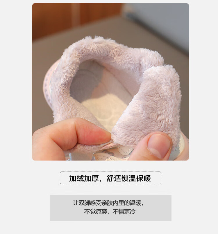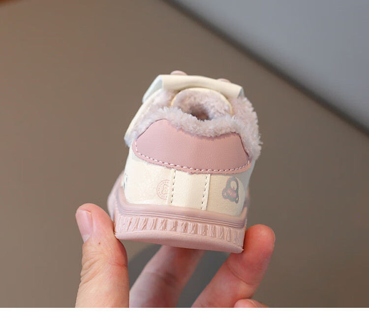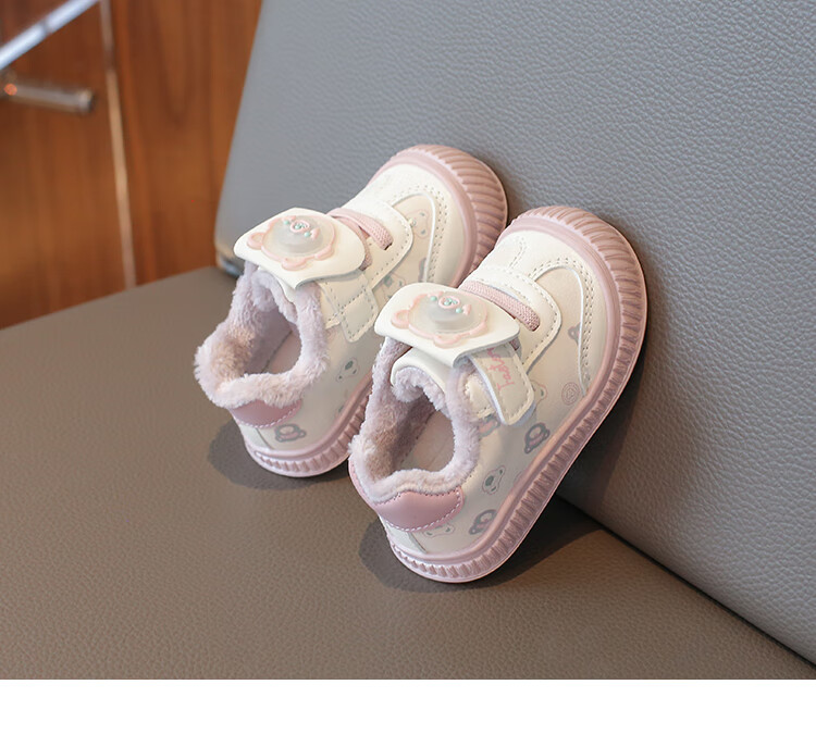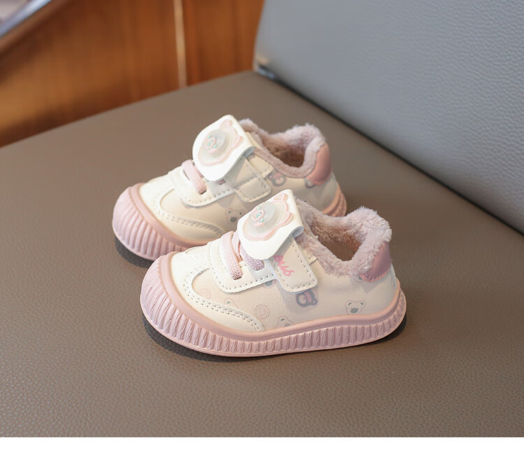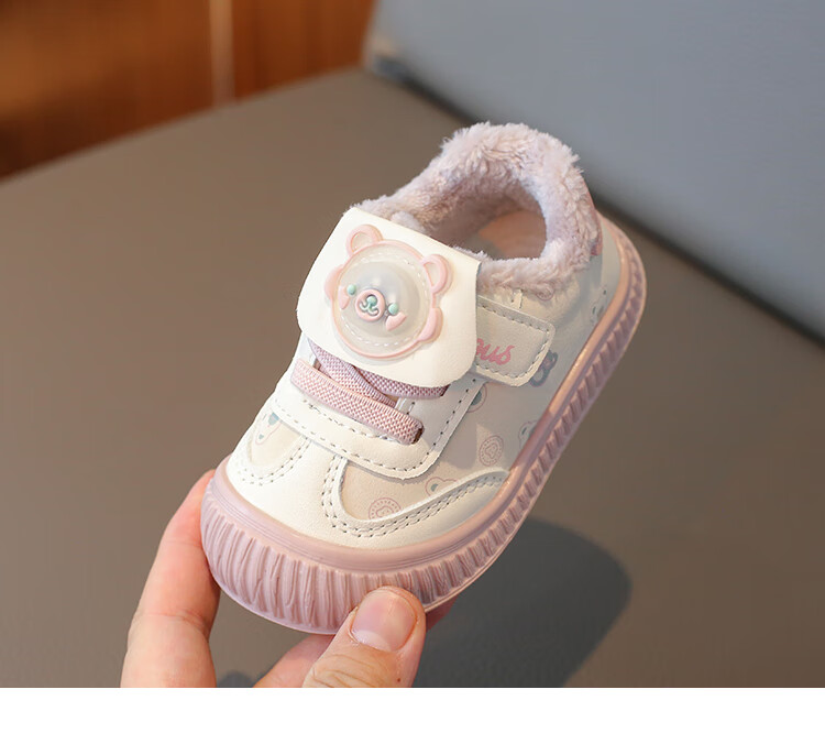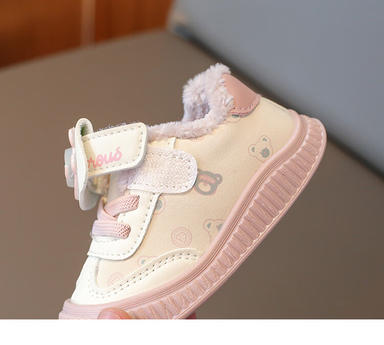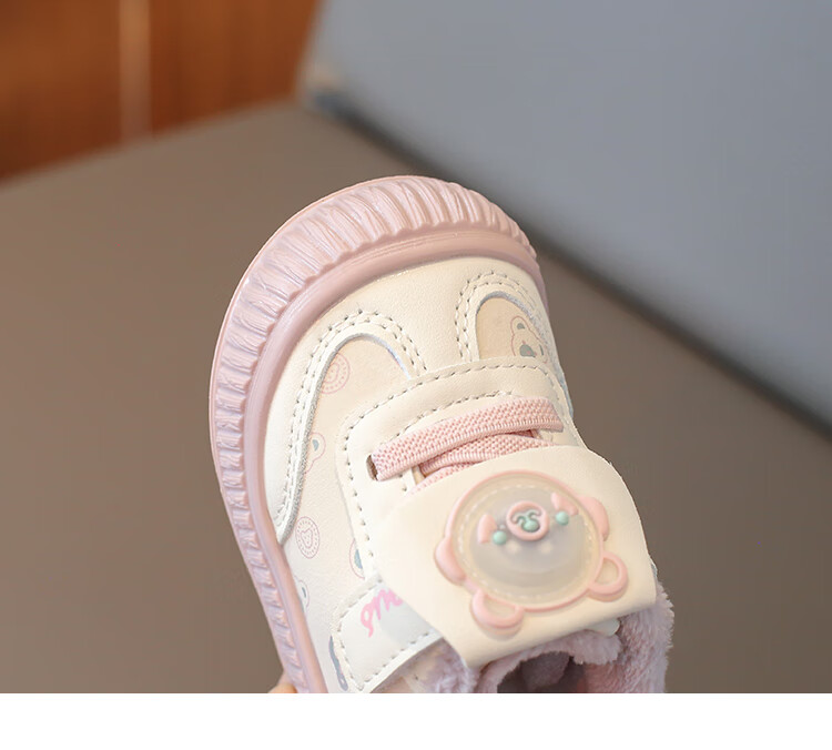Baby toddler shoes with lights, baby thick cotton shoes, boys and girls plus velvet sneakers 2025 winter new anti-slip Korean pink Malik Bear & 2868 velvet 18 inner length 13 cm