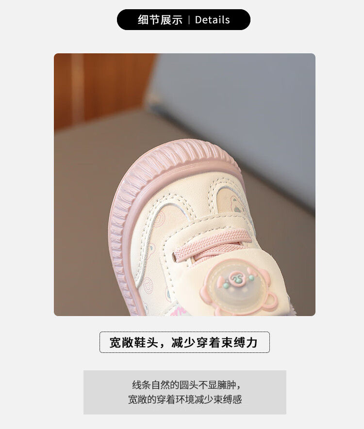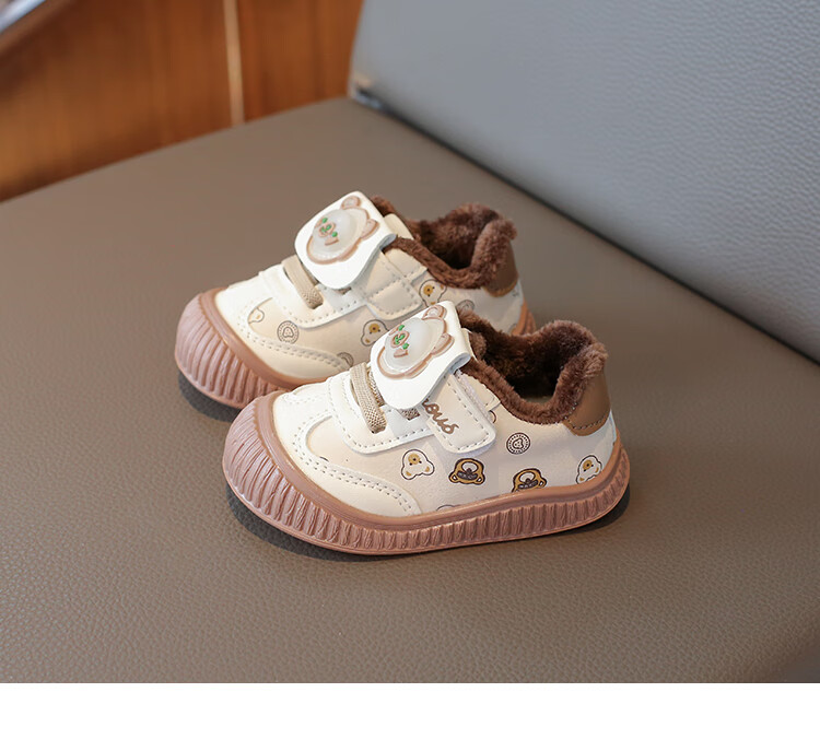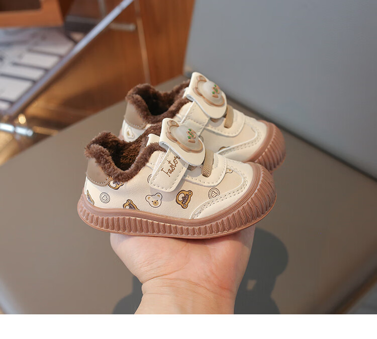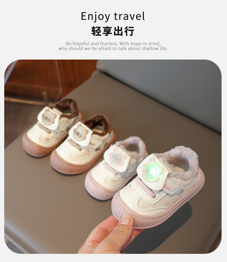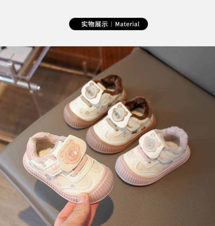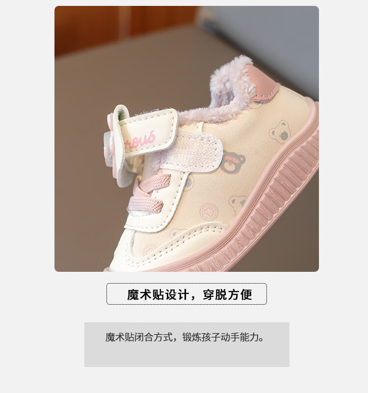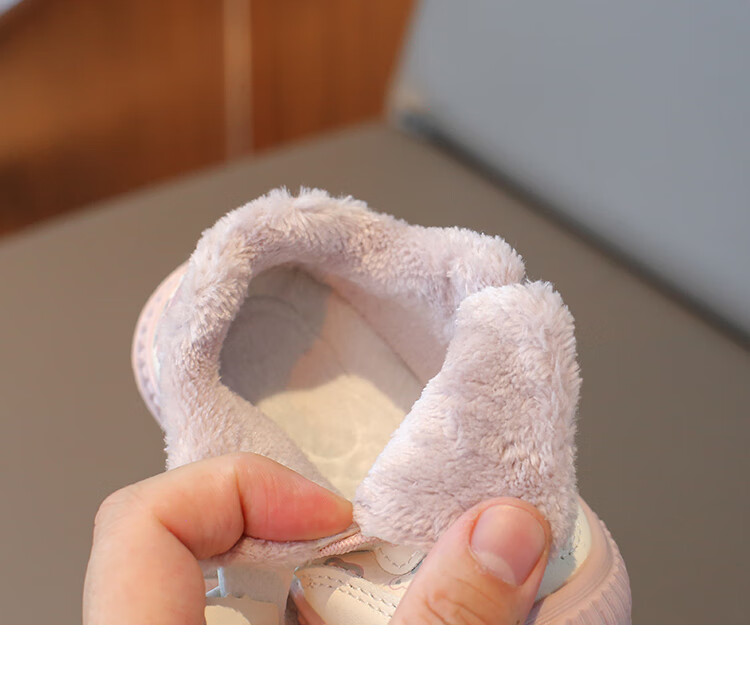 Baby toddler shoes with lights, baby thick cotton shoes, boys and girls plus velvet sneakers 2025 winter new anti-slip Korean pink Malik Bear & 2868 velvet 18 inner length 13 cm