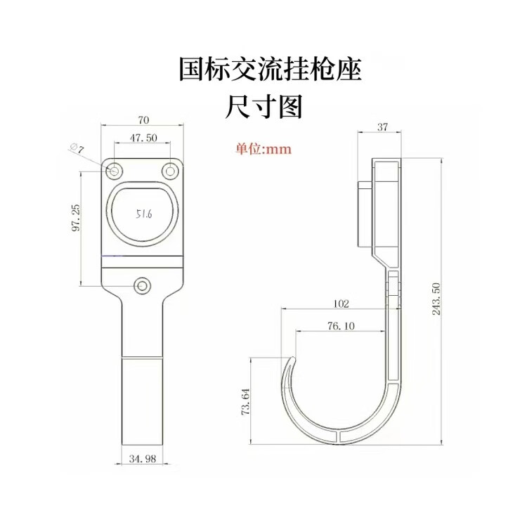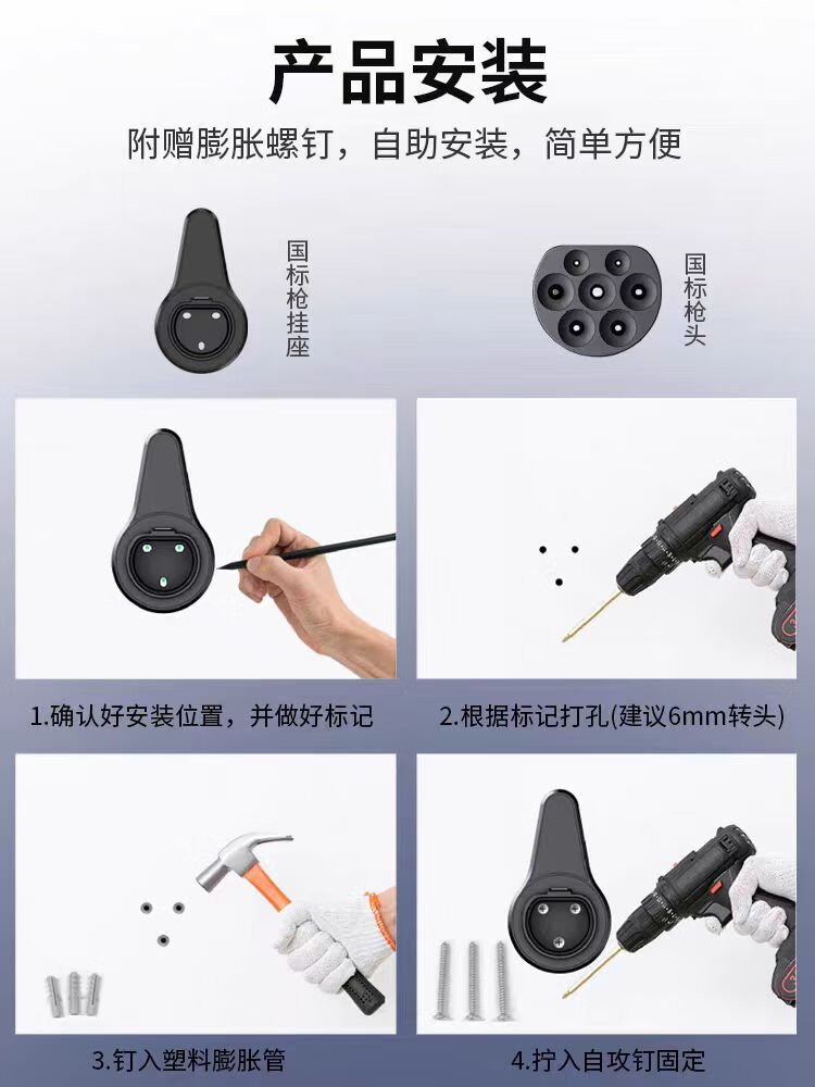Yusenyi national standard new energy electric bicycle AC charging pile gun cable, cable hook seat, gun seat, exposed gun head, national standard DC seat with column (embedded in the device)