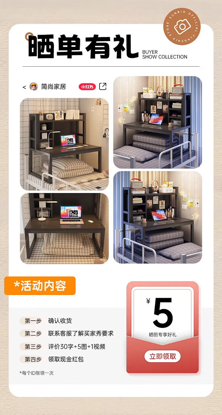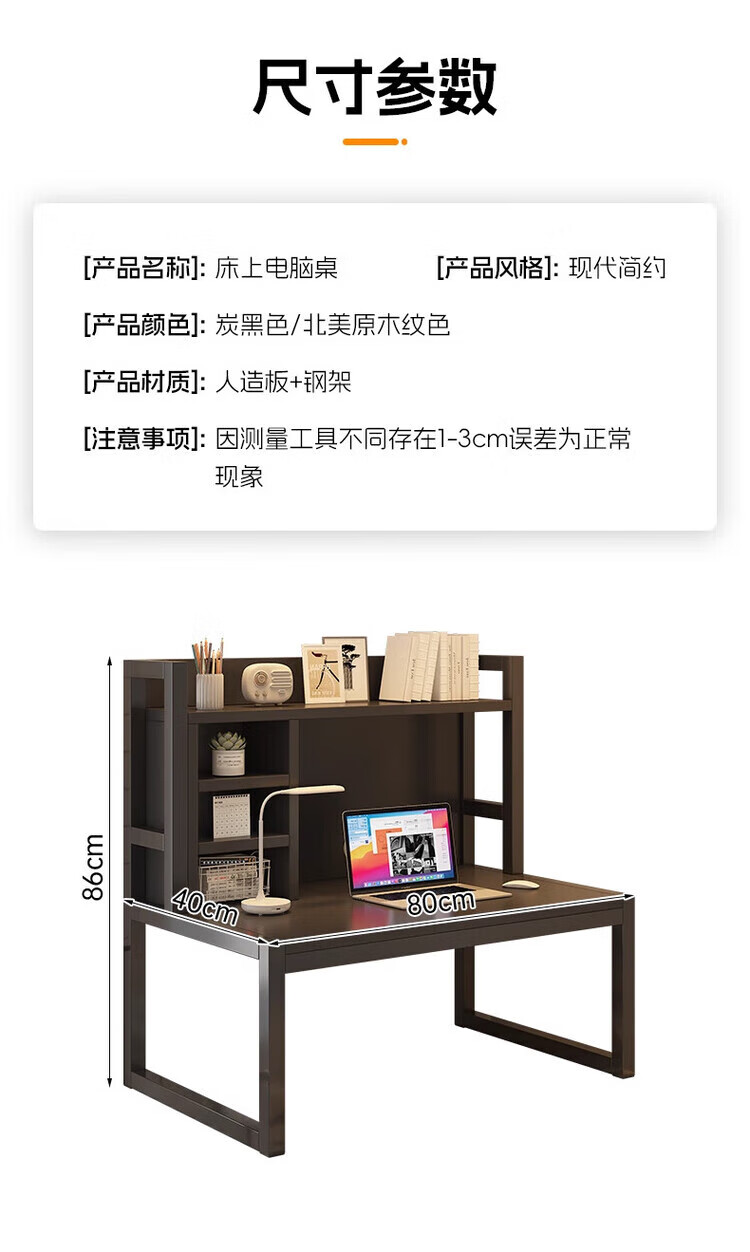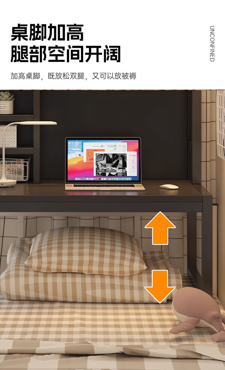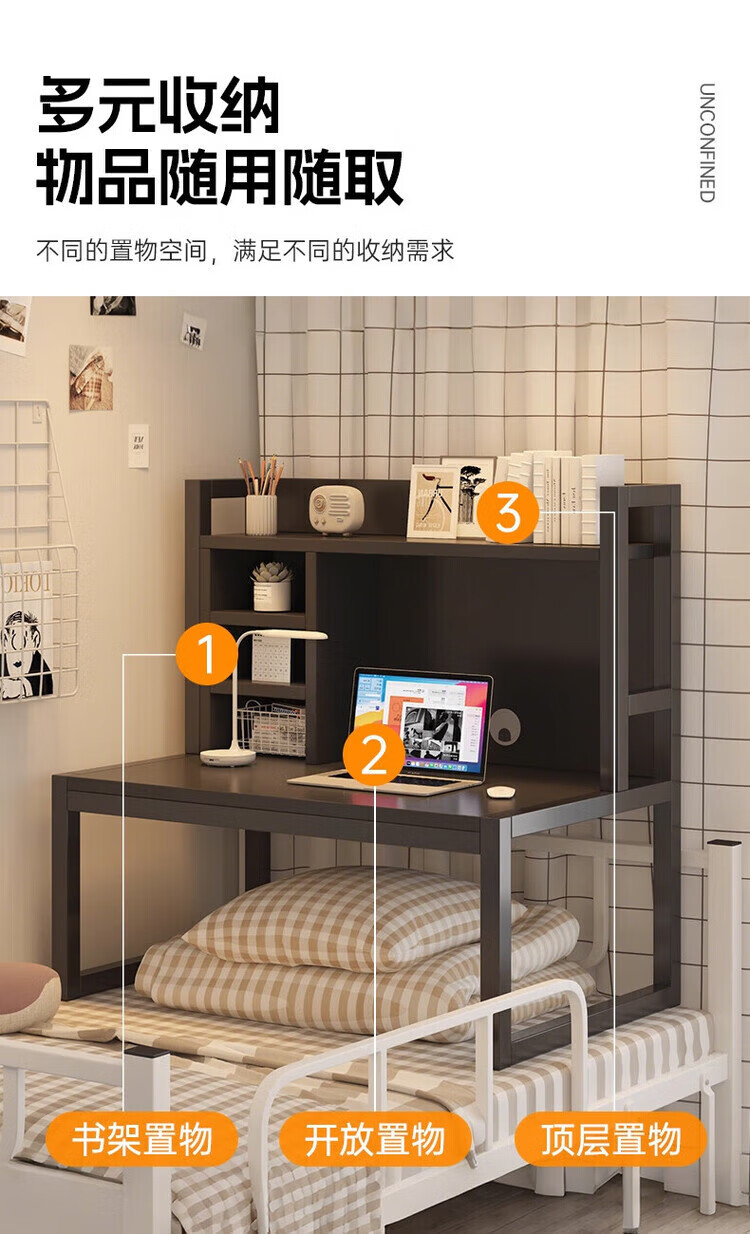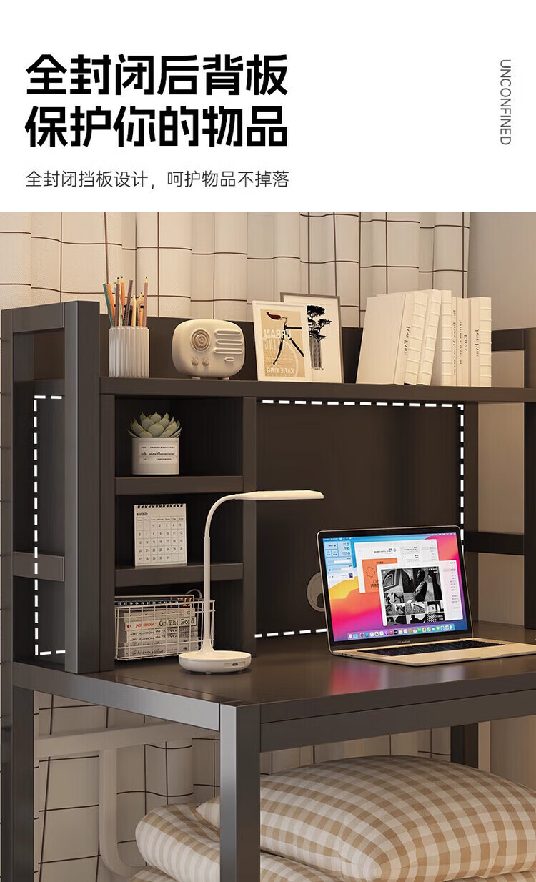 Dormitory artifact college student bed computer desk with bookshelf lazy desk upper and lower bunk steel frame bedside storage table full back panel + mobile bookshelf + LED light maple color + white shelf 80 40 86cm