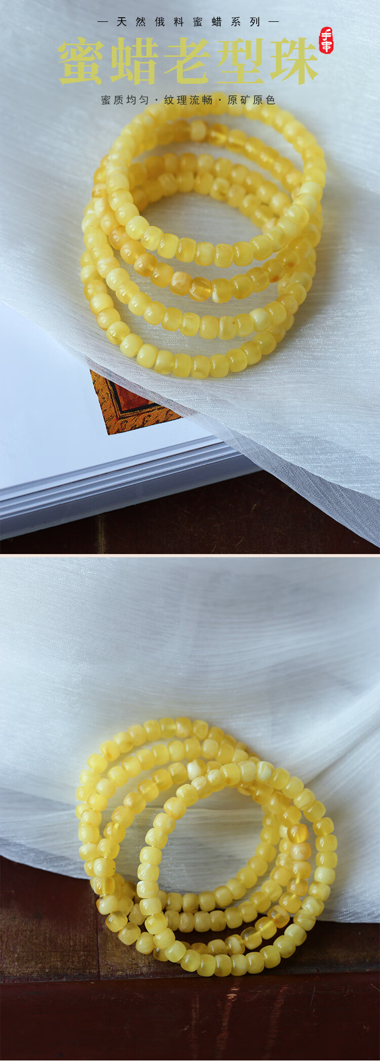 Uozawa special price, natural Russian beeswax old-style bead bracelet, beeswax amber jewelry gift for women, about 7-7.5MM, randomly sent one