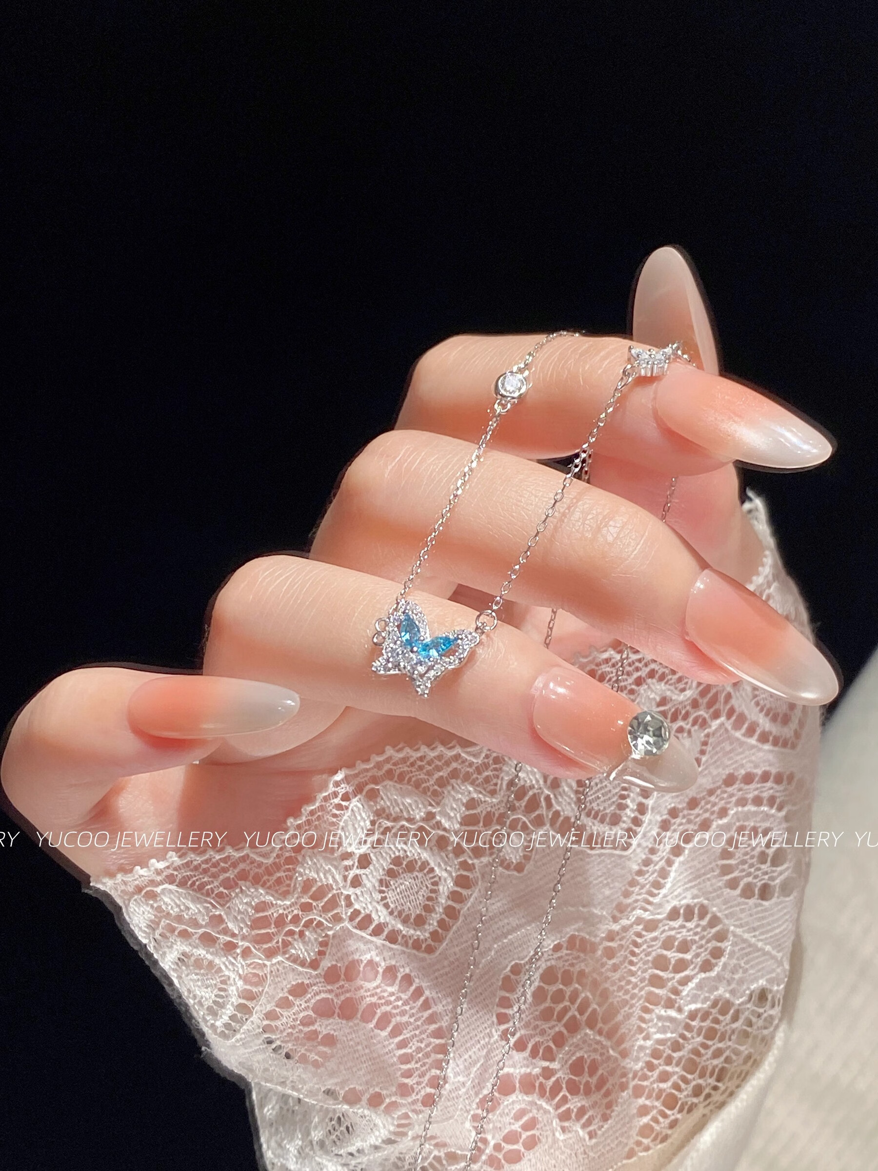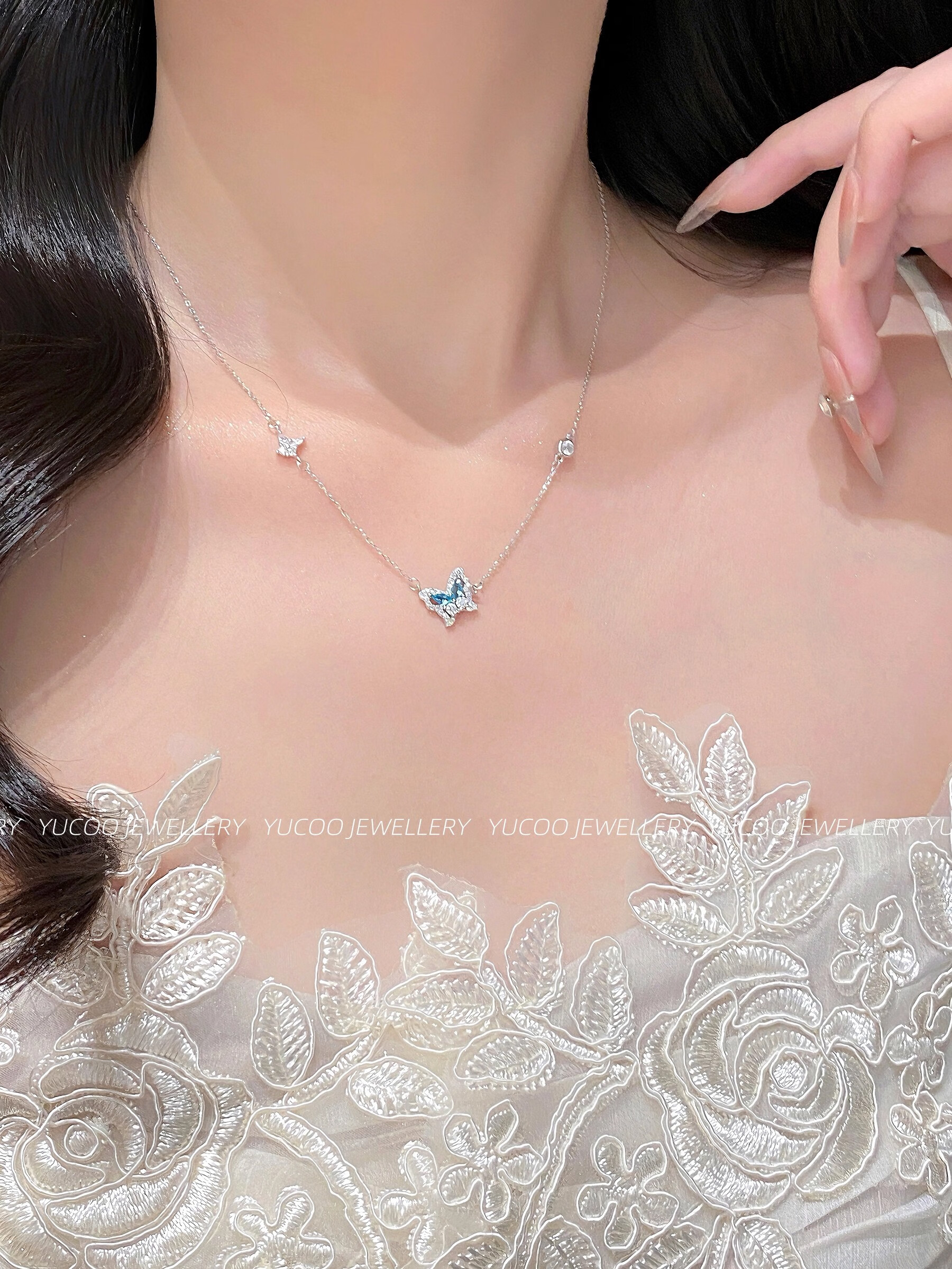 Butterfly Dream Glacier Girls Blue Diamond Butterfly Clavicle Chain Light Luxury Niche High-end Sterling Silver Platinum Plated pt950 Necklace Light Luxury Style- Butterfly Dream Glacier-Rose Gift Box