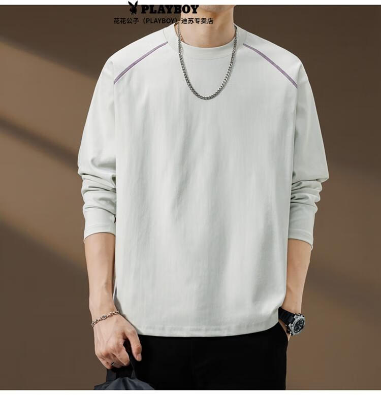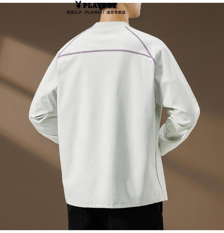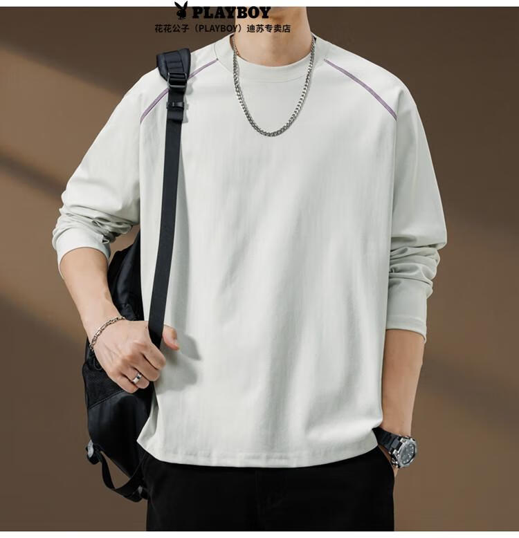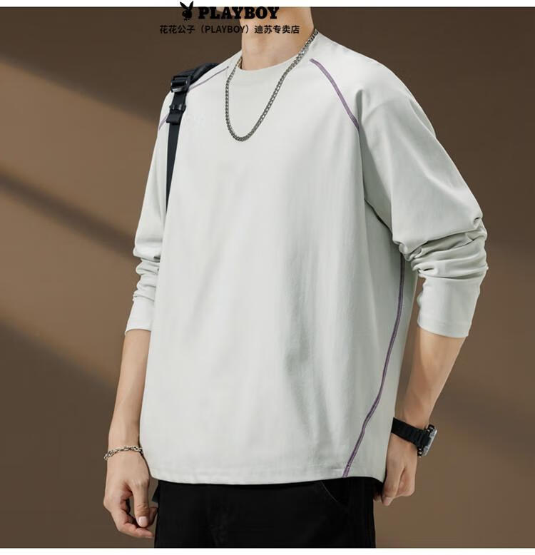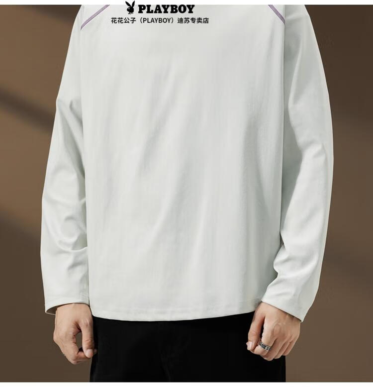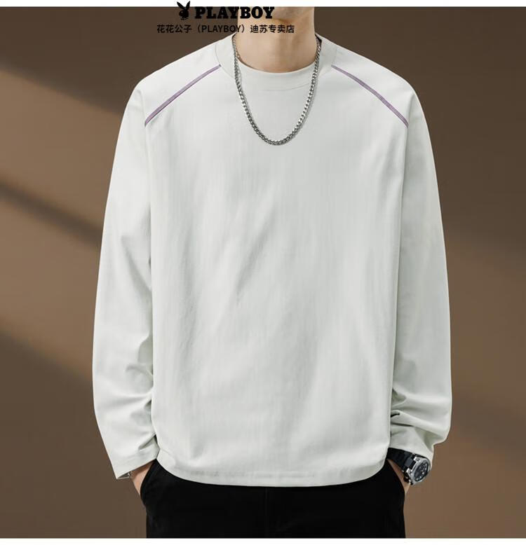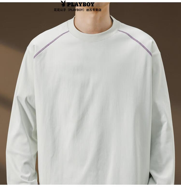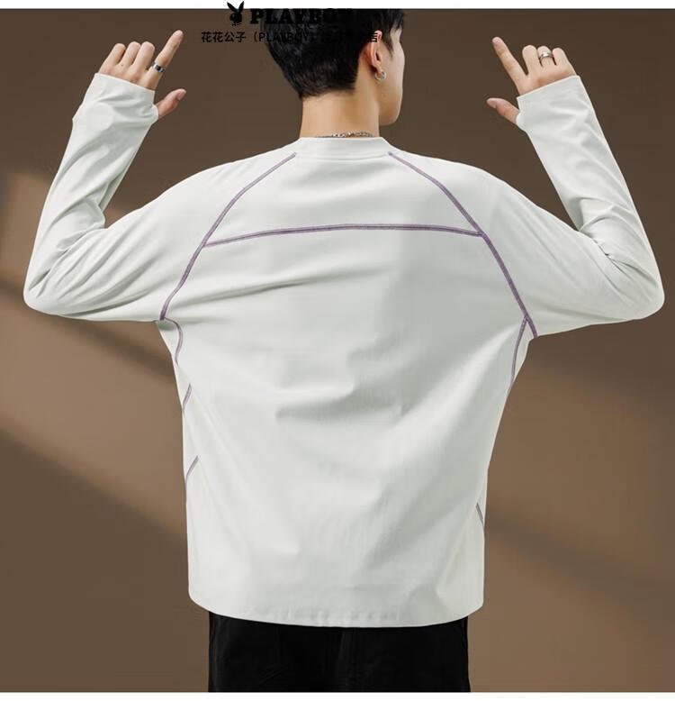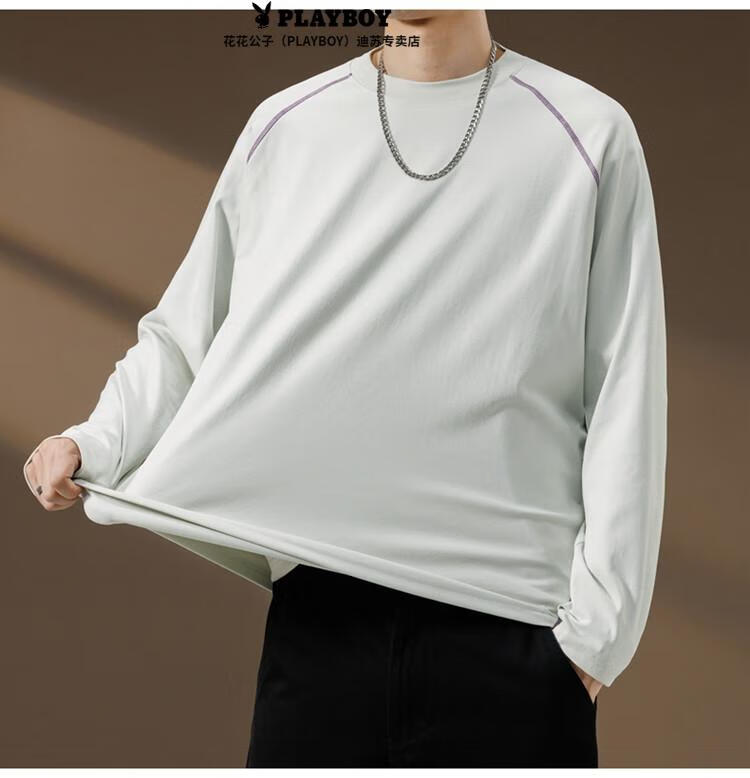 Playboy (PLAYBOY) Striped Long Sleeve T-Shirt Men's Autumn American Retro Trendy Brand Sports Bottoming Shirt Cycling Jersey Spring and Autumn Style Inner Sweatshirt Mountain Green (Purple Line) L
