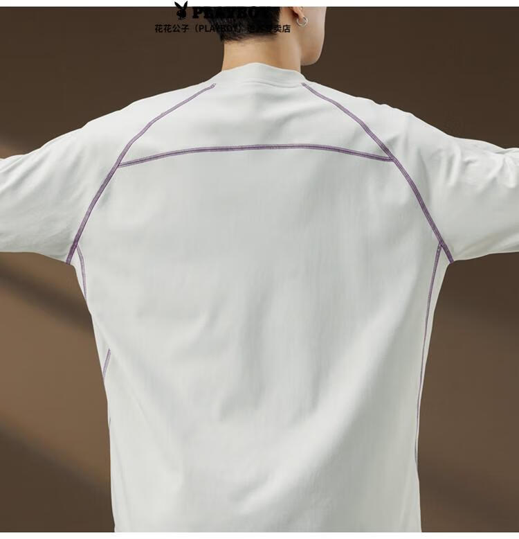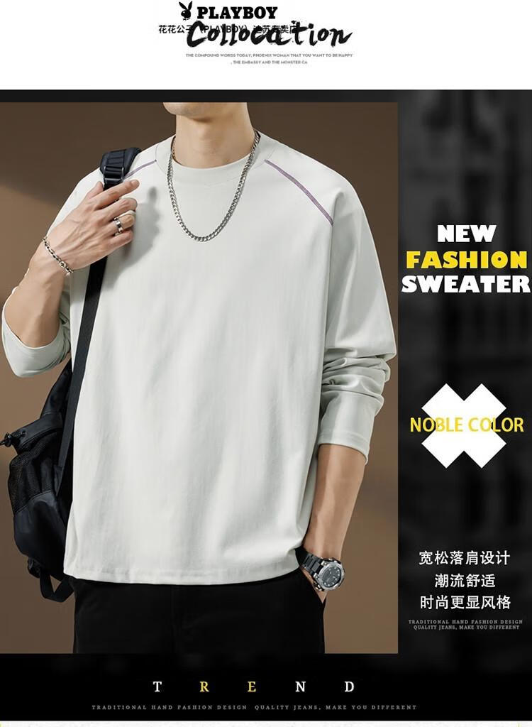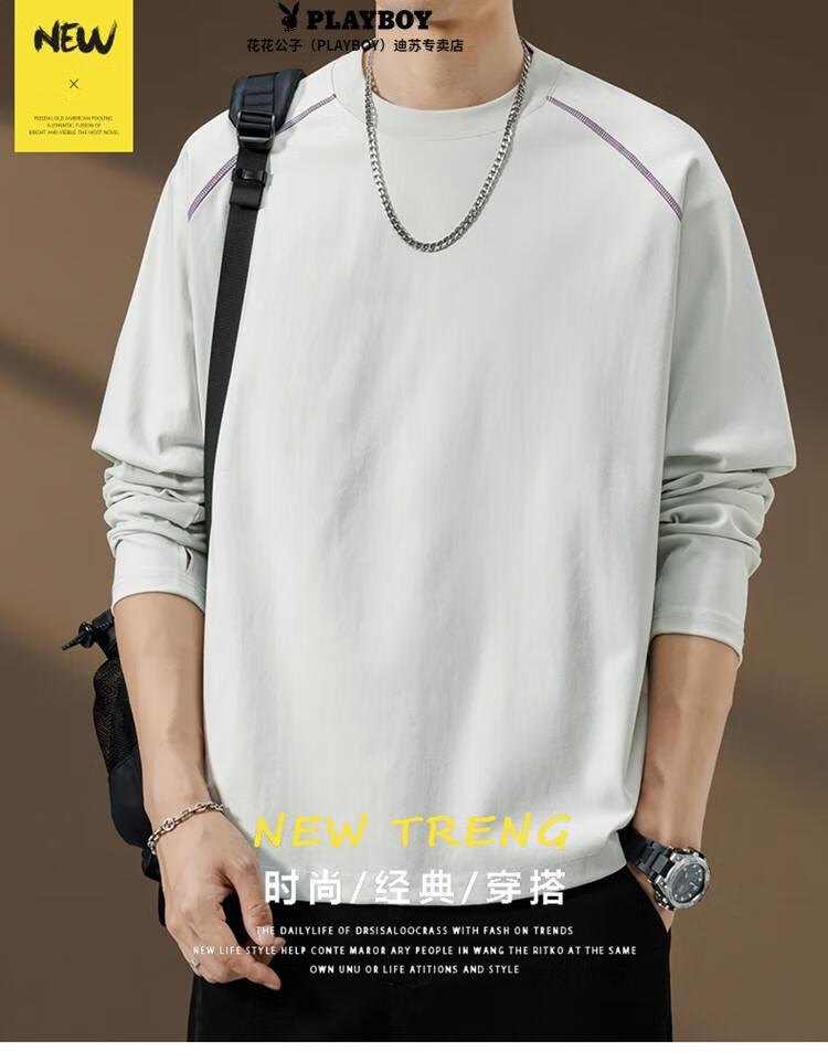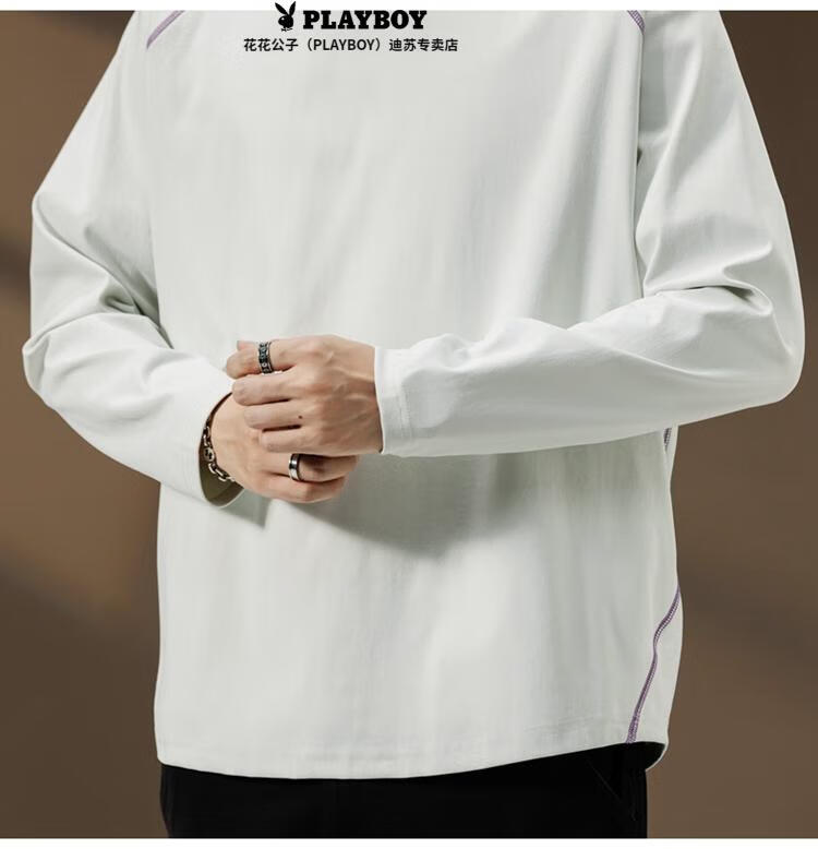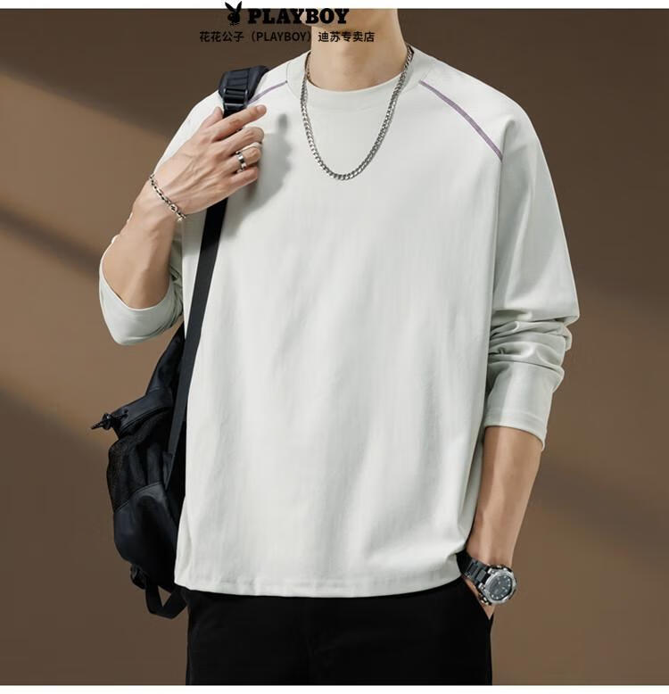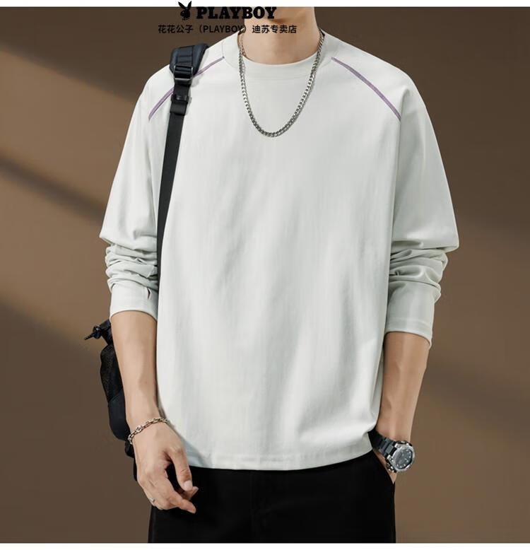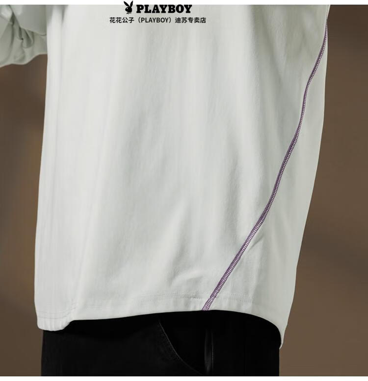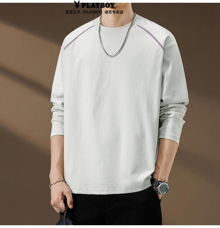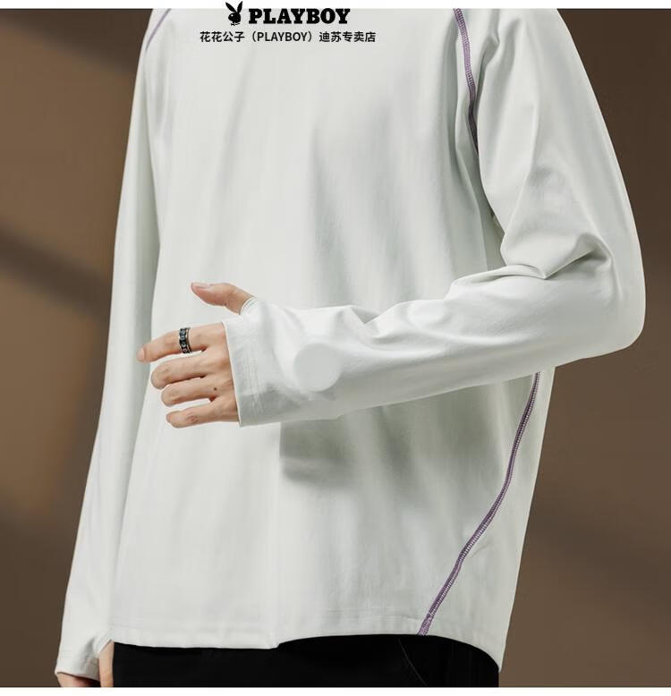 Playboy (PLAYBOY) Striped Long Sleeve T-Shirt Men's Autumn American Retro Trendy Brand Sports Bottoming Shirt Cycling Jersey Spring and Autumn Style Inner Sweatshirt Mountain Green (Purple Line) L