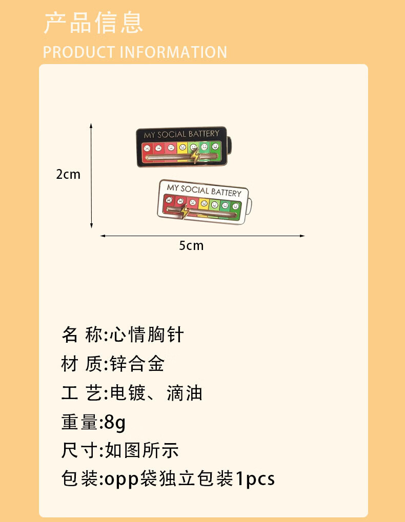 Mood Conversion Energy Brooch Sliding Personalized DIY Social Power Alloy Badge Expression Campus Pin Mood Energy-White