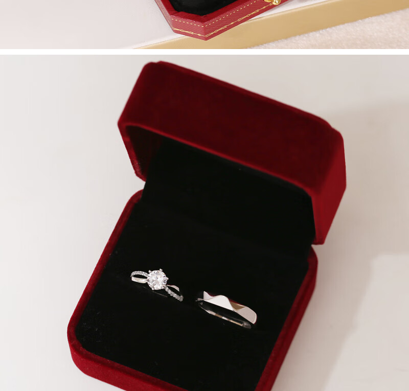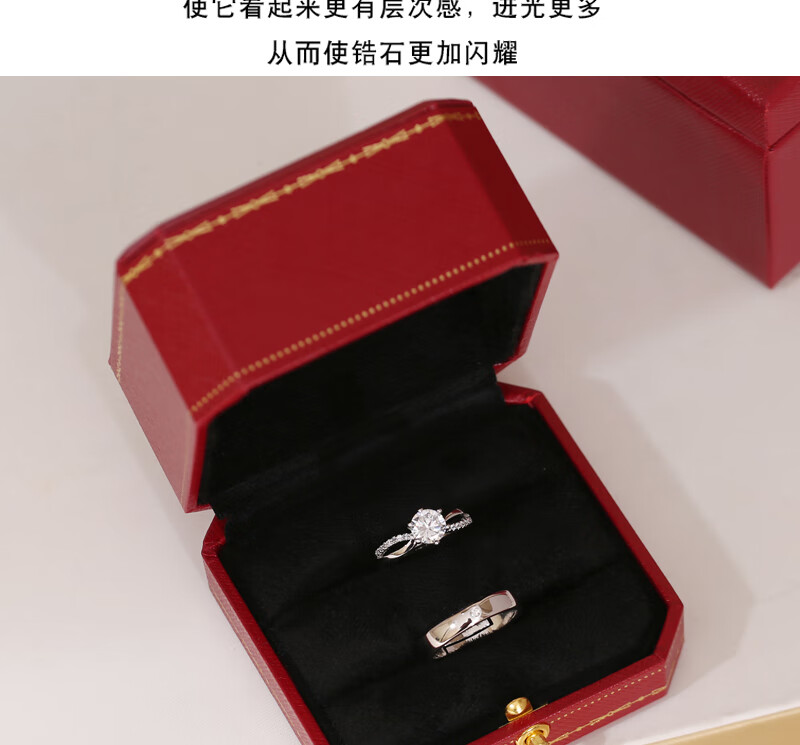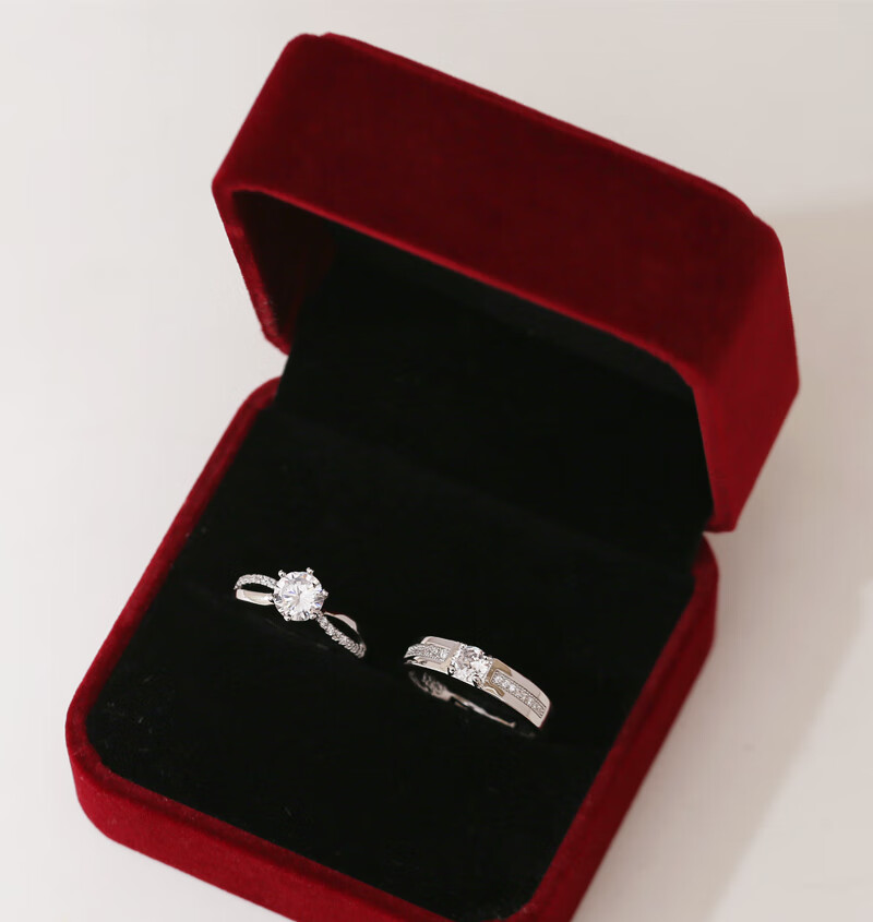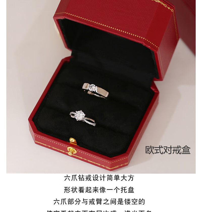 Simulated fake diamond ring wedding ring one carat six prongs live mouth Weiai adjustable ring wedding ceremony props Weiai women's ring + 10 points men's ring + European style ring box live mouth
