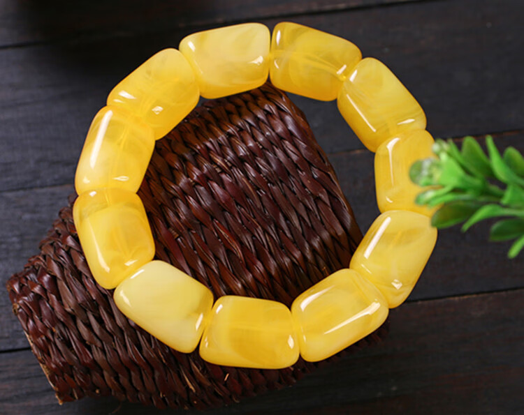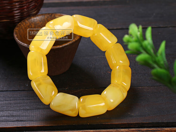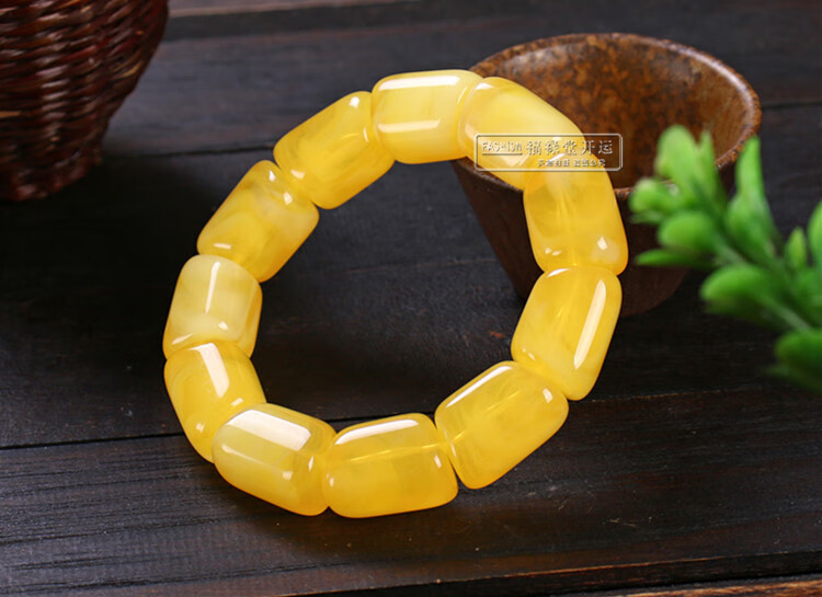 Yuze Baltic Chicken Oil Yellow Beeswax Bucket Beads Single Circle Bracelet Old Beeswax Amber Bucket Beads Special-shaped Bracelet for Boyfriend