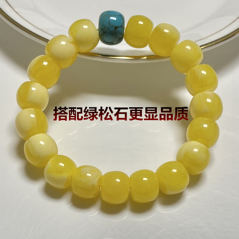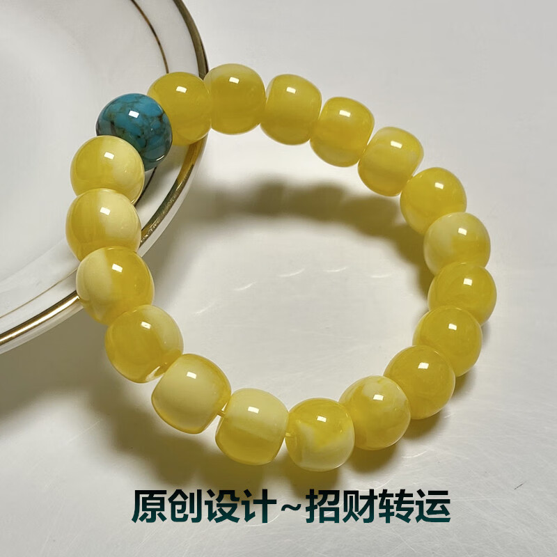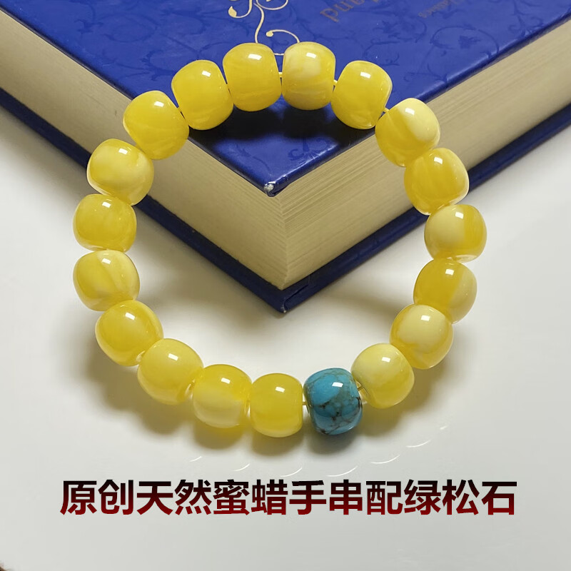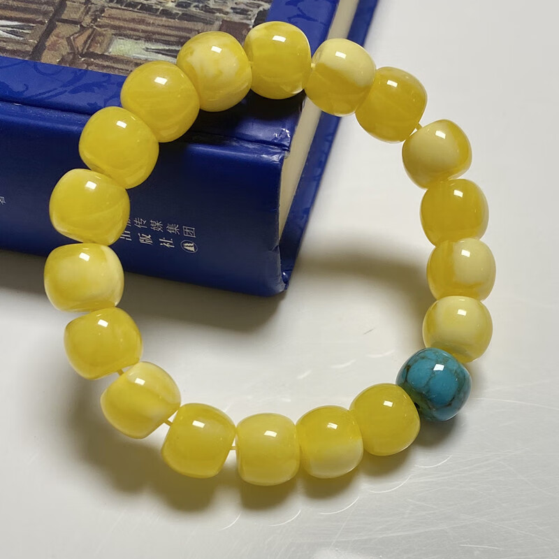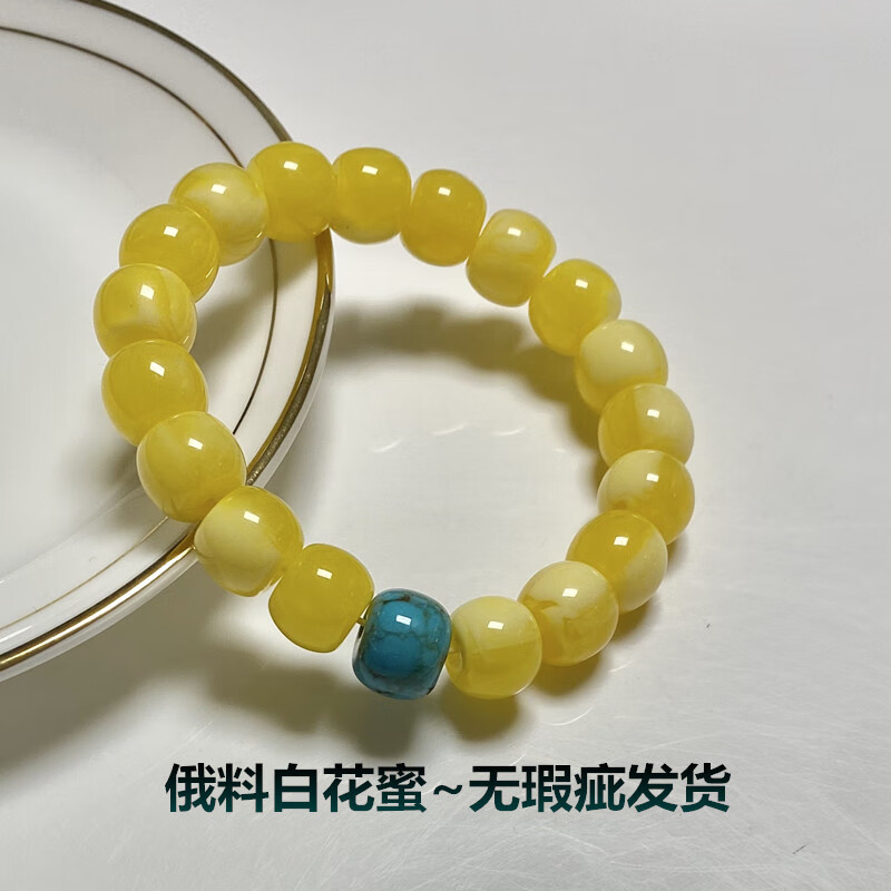 Yuze Original Natural Beeswax Bracelet for Men and Women with Turquoise Russian White Flower Old-Shaped Beads Lucky Bracelet Authenticity with Certificate White Flower Old-Shaped Beads 12*10MM Women's Special Thin Wrist 17 Pieces (With Certificate)