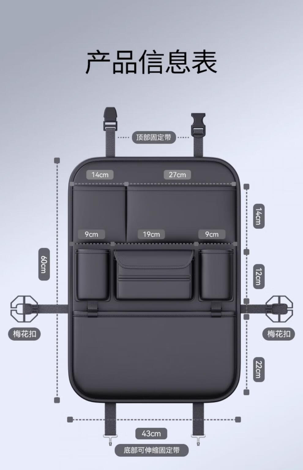 Zhan Zhitianhua Car Seat Back Storage Bag Hanging Bag Car Storage Box Buick Weilang Pro Century Regal LaCrosse GL8 Envision Gray - Multifunctional Back Seat Storage Bag - Short Single Pack Buick Excelle