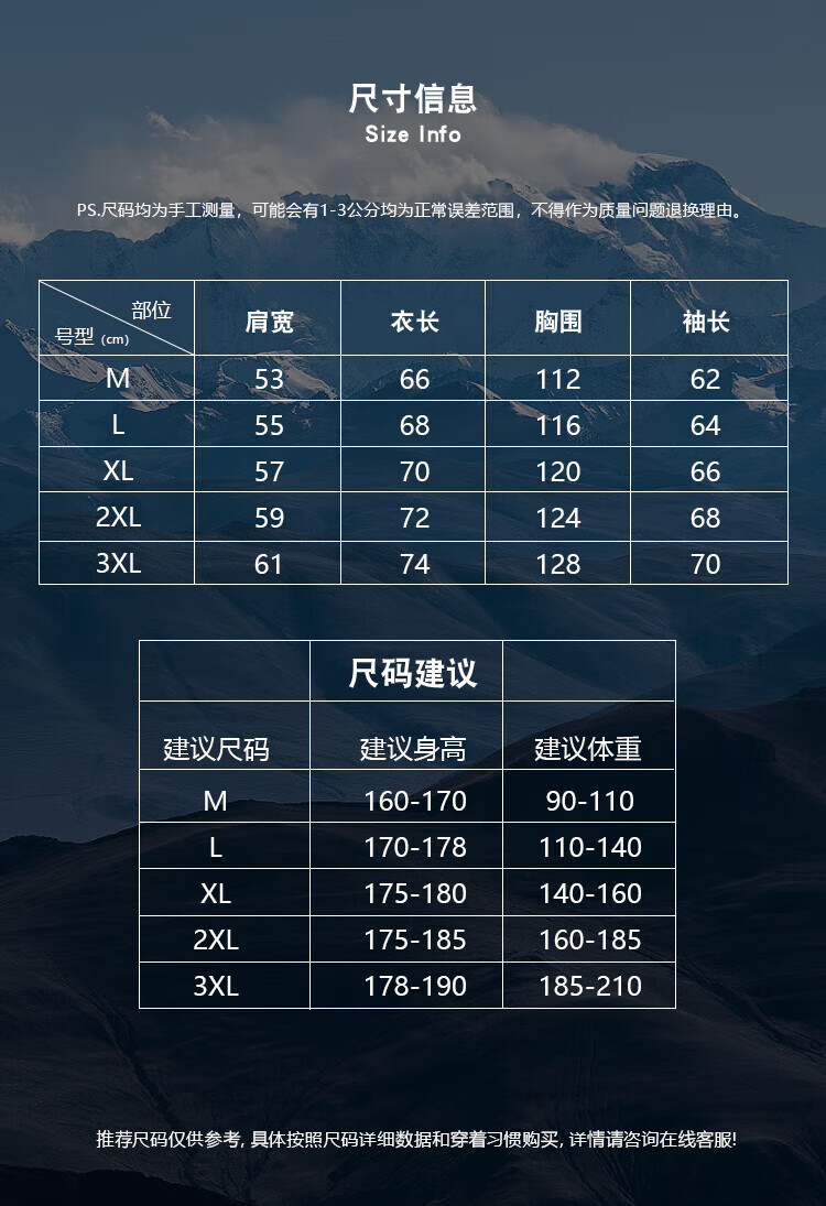China (cm) 165 / 88-90 170 / 96-98 175 / 108-110 180 / 118-122 185 / 126-130