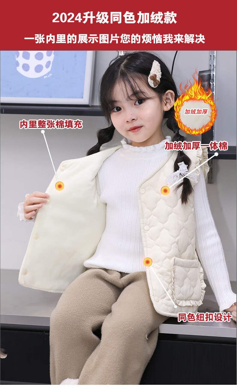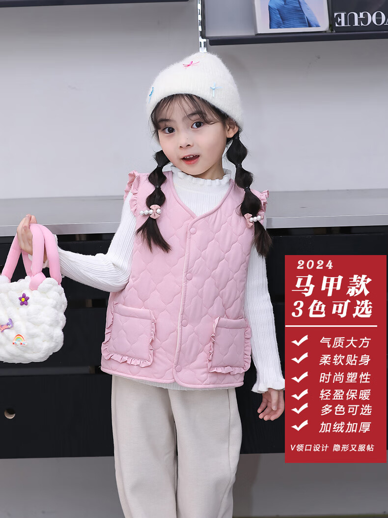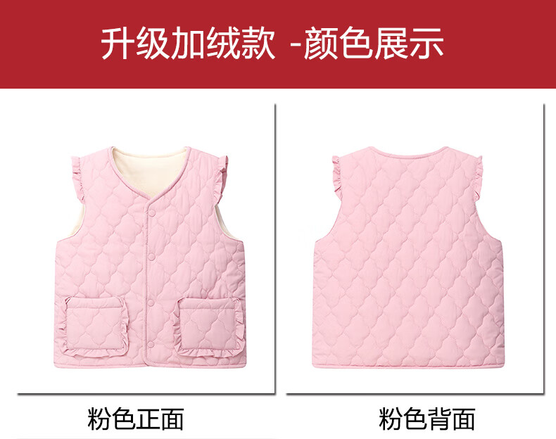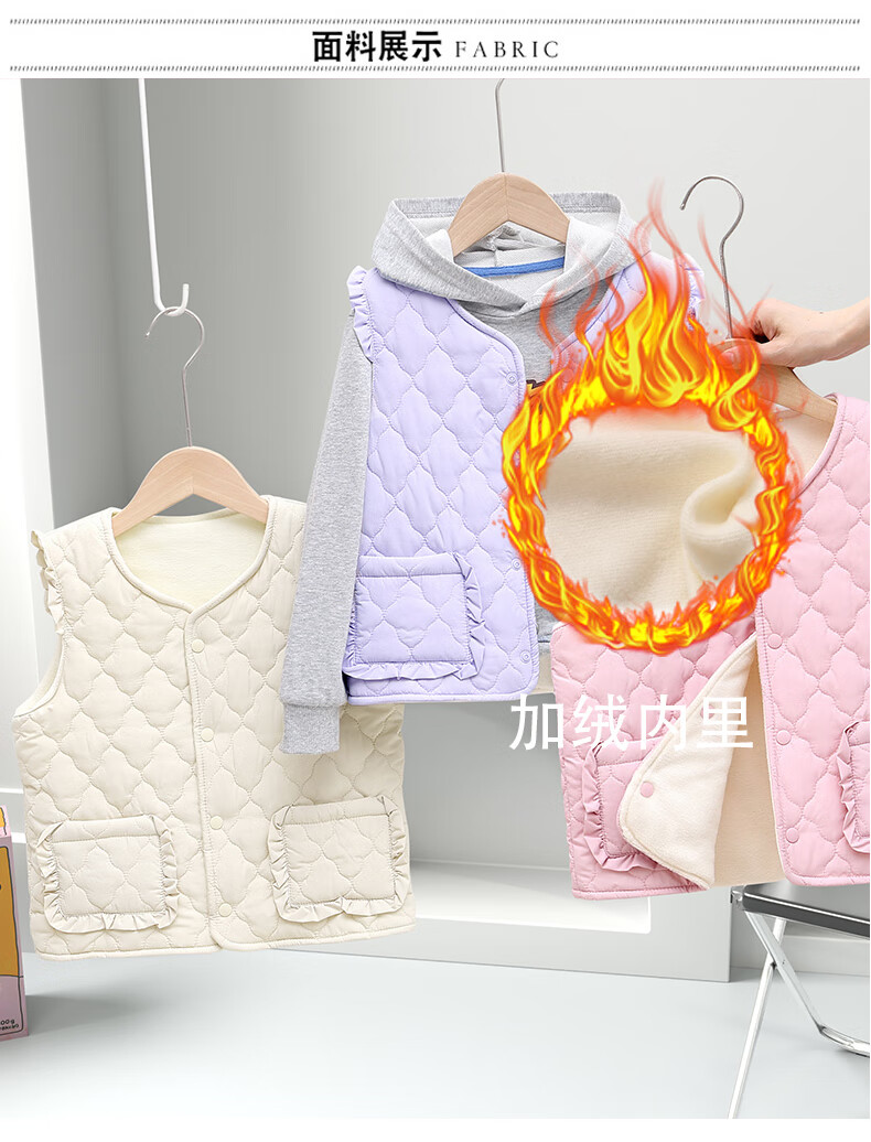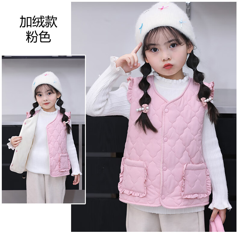 G.DUCKKIDS2025 Girls' vest for autumn and winter with velvet vest for girls and babies, thickened inner warm vest, cherry blossom pink_girls' velvet style 110 cm_100-110CM
