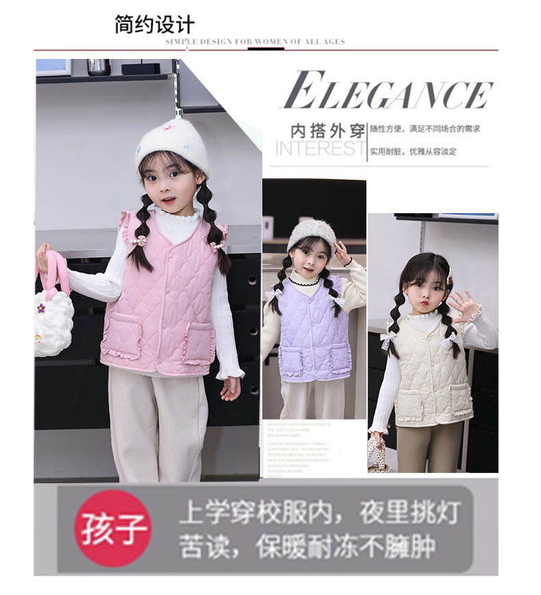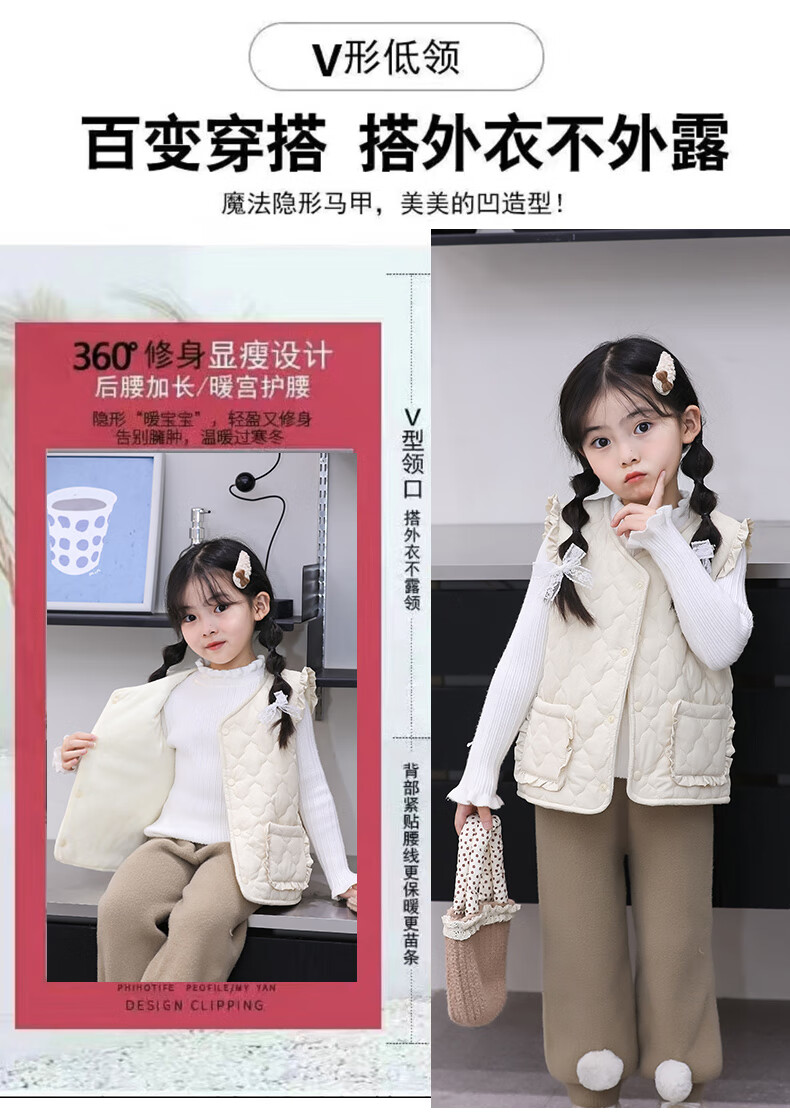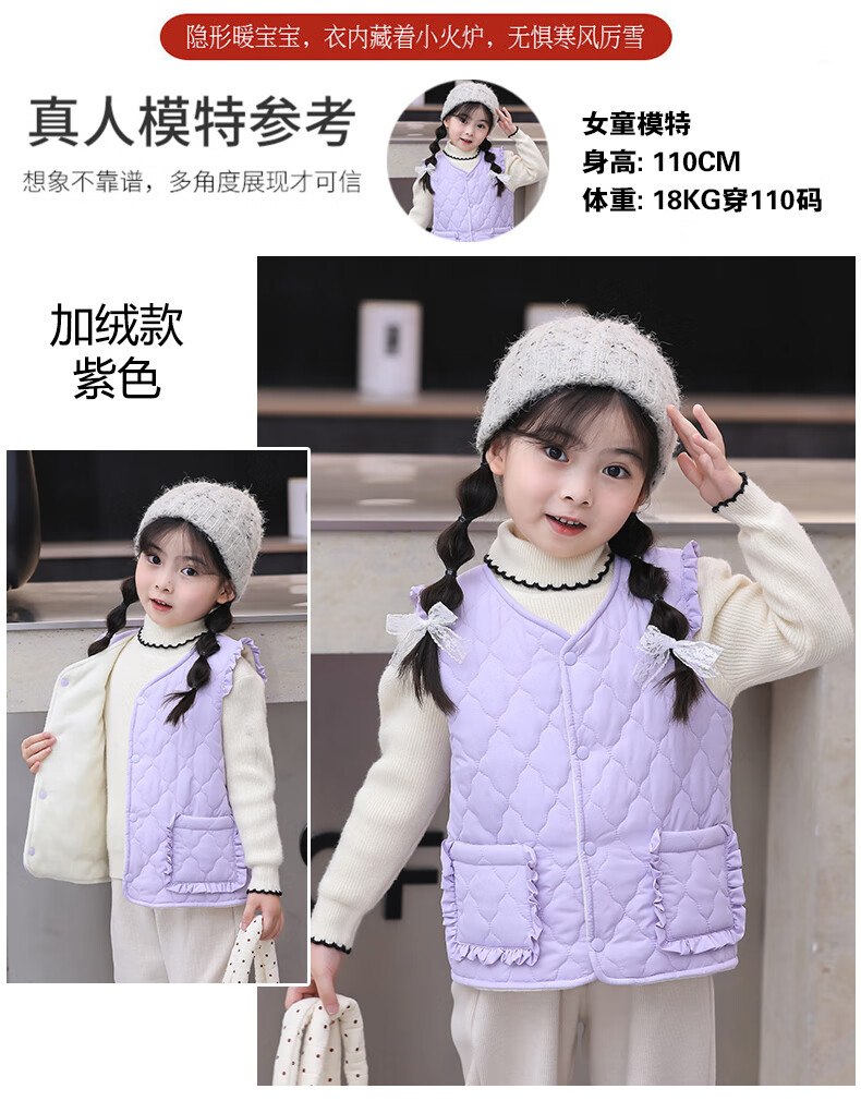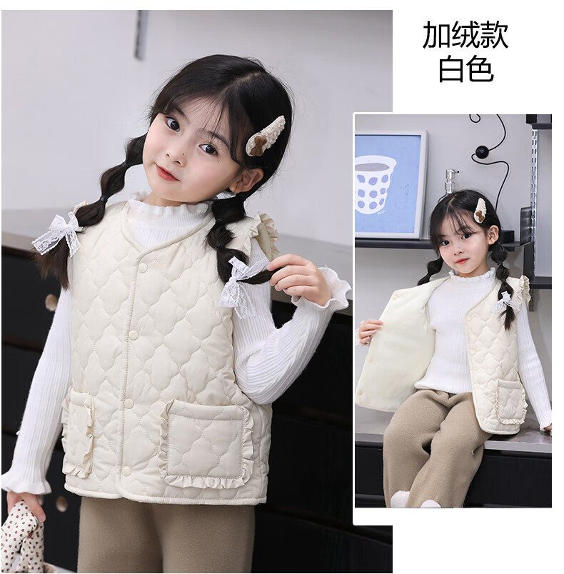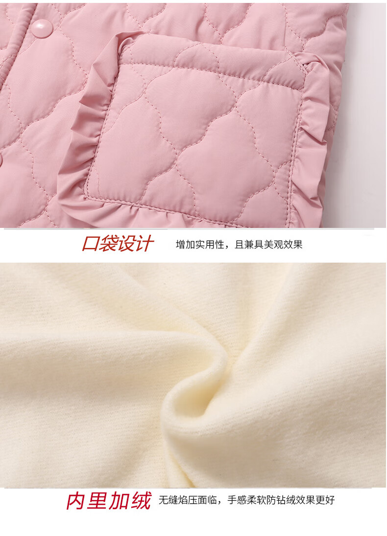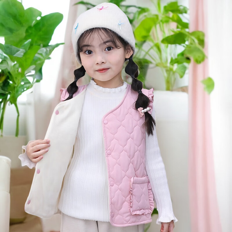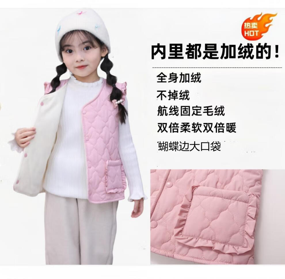 G.DUCKKIDS2025 Girls' vest for autumn and winter with velvet vest for girls and babies, thickened inner warm vest, cherry blossom pink_girls' velvet style 110 cm_100-110CM