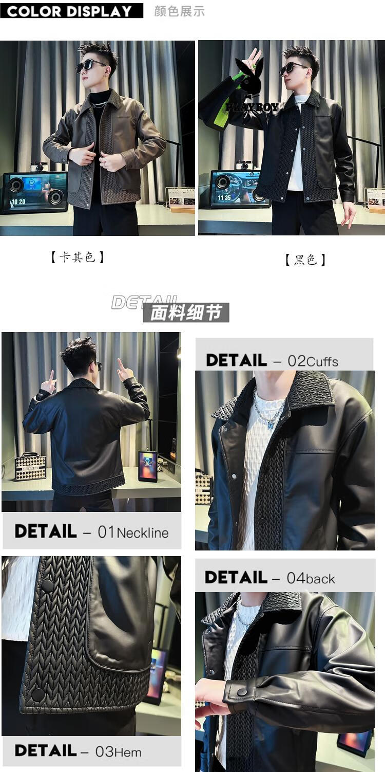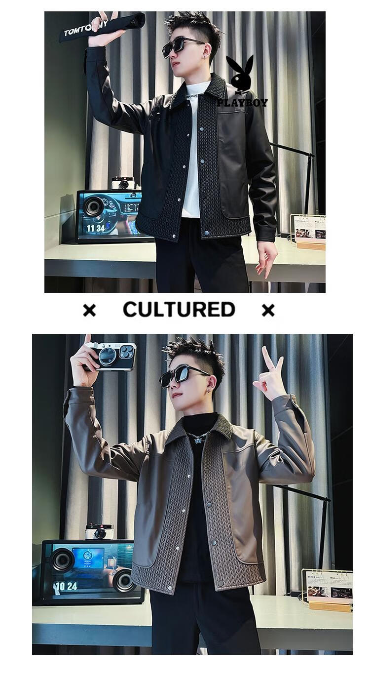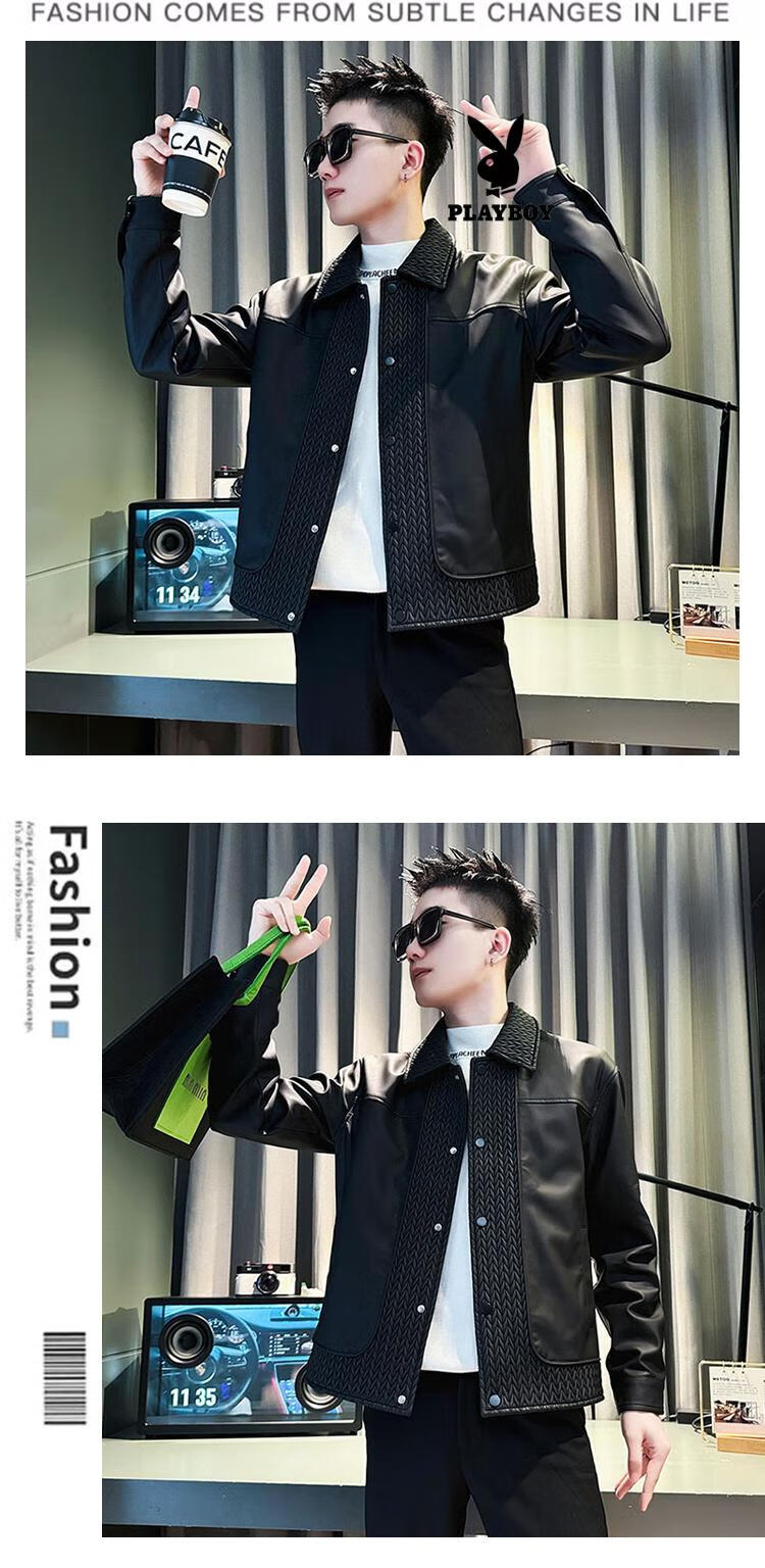 Playboy men's popular popular pu leather jacket trendy brand casual handsome motorcycle suit autumn and winter 2025 new leather jacket black M recommended 120Jin Jin equal to within 0.5 kg