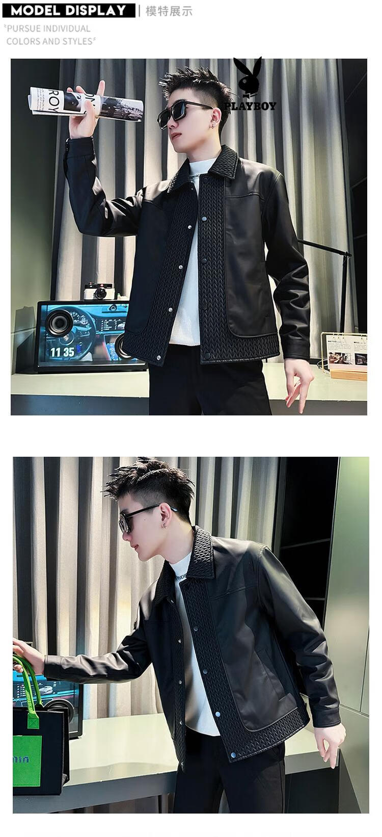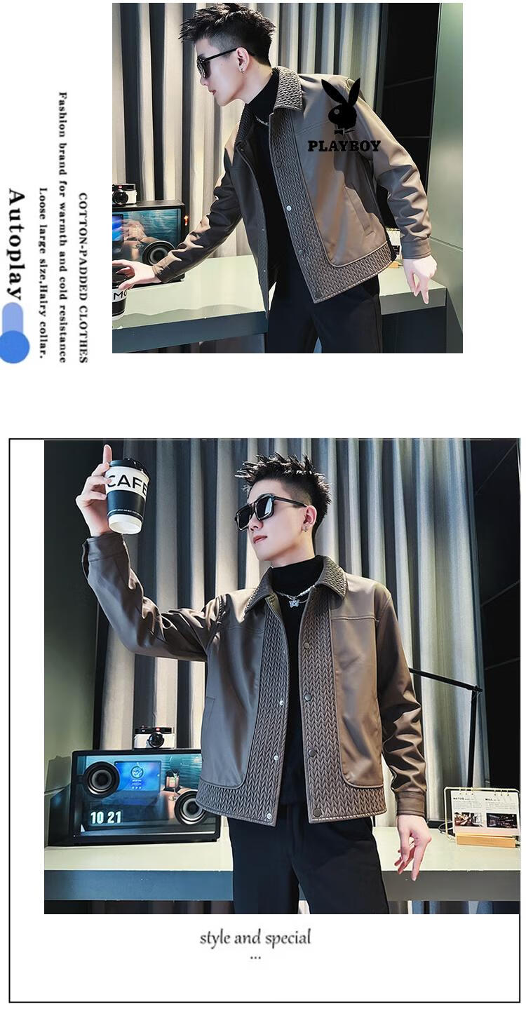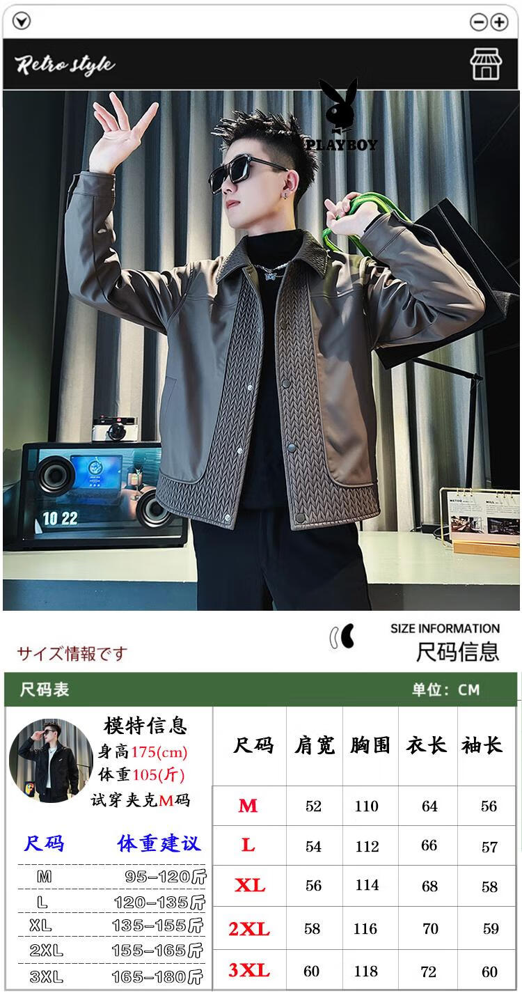 Playboy men's popular popular pu leather jacket trendy brand casual handsome motorcycle suit autumn and winter 2025 new leather jacket black M recommended 120Jin Jin equal to within 0.5 kg