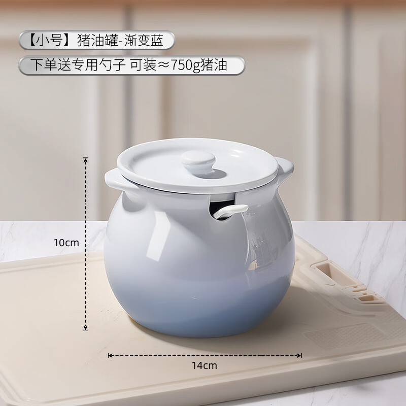 Newair Newair lard jar household ceramic high temperature resistant food grade oil jar meat oil chili red oil jar kitchen with lid European style double ears-cream white-700ml spoon