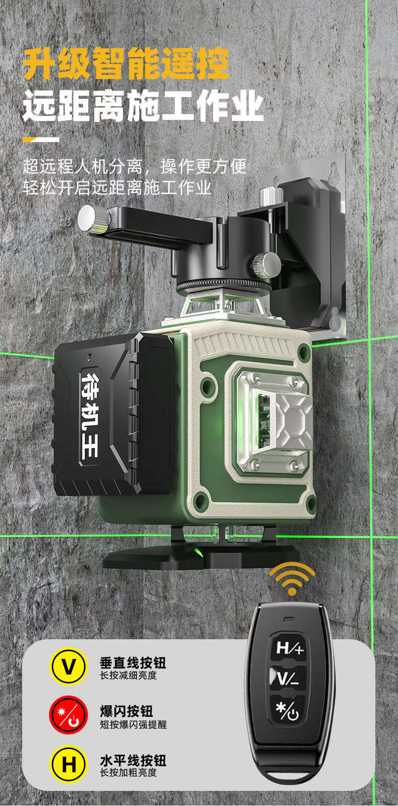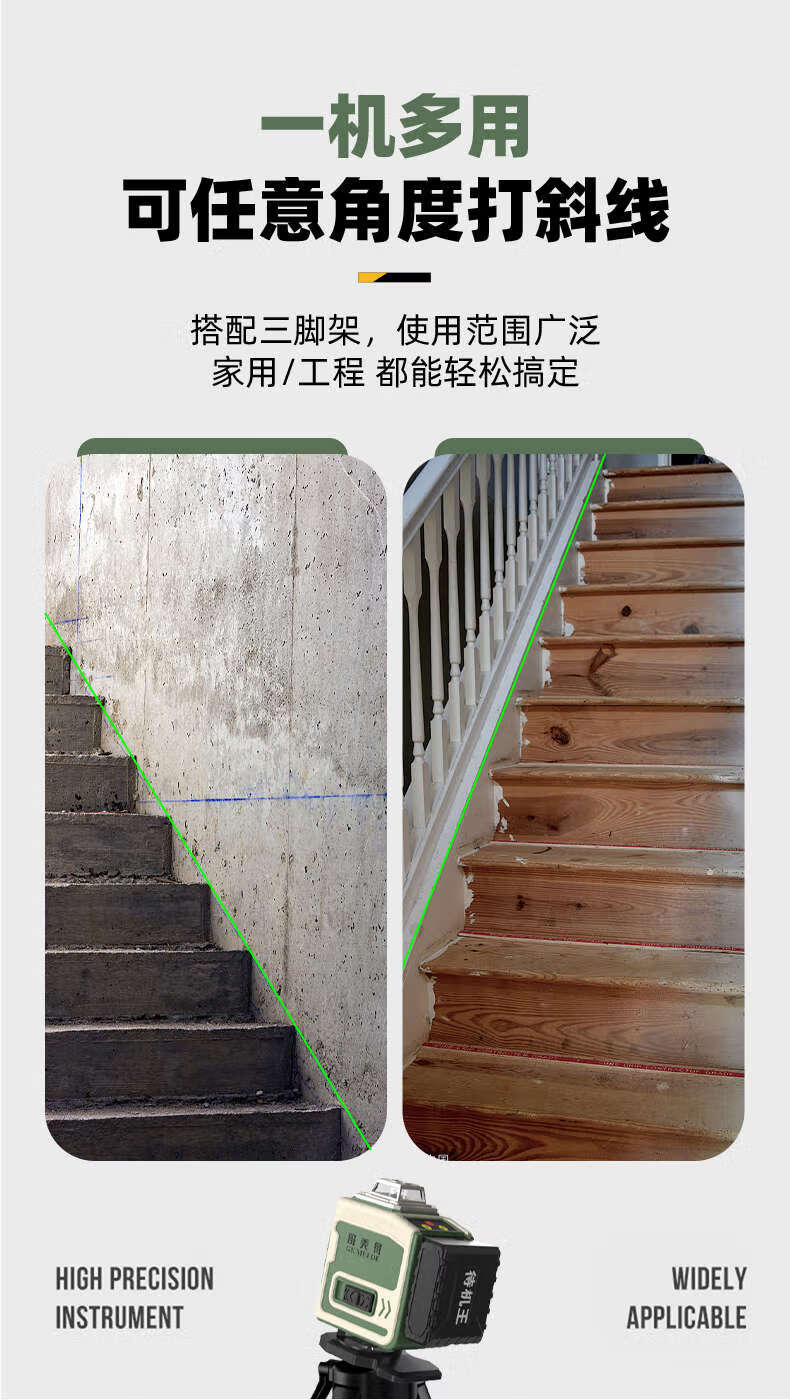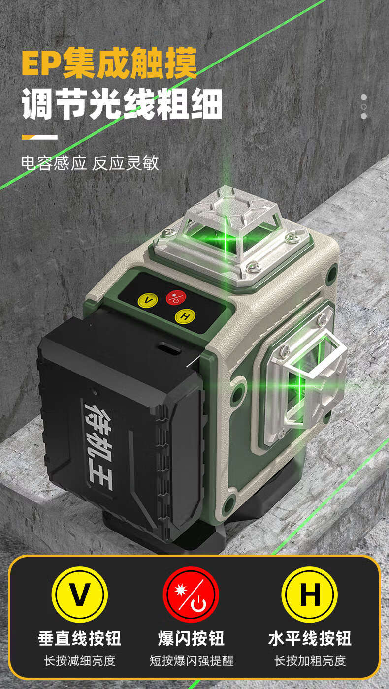 XMSJ laser level high-precision strong light thin line outdoor green light automatic leveling leveling device light 8 lines only host without any accessories