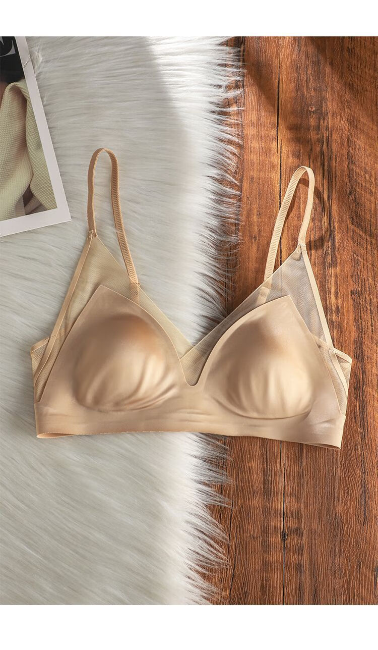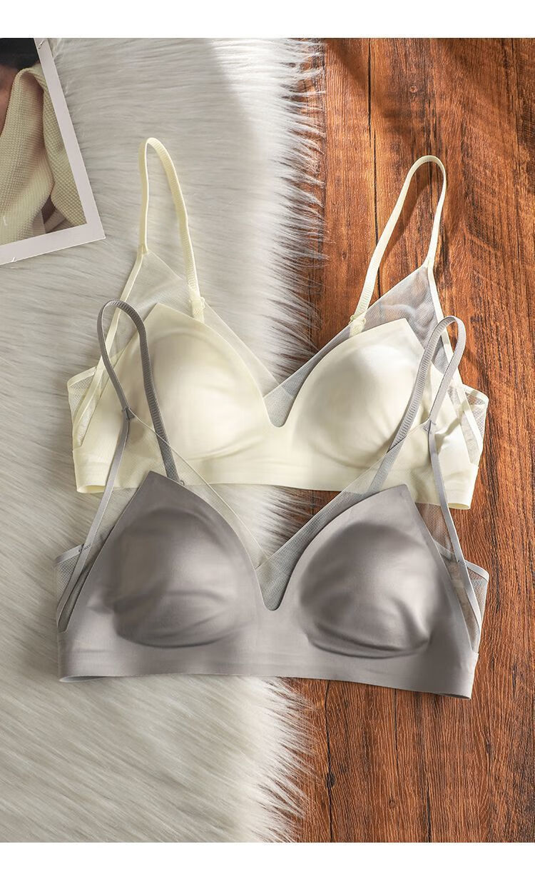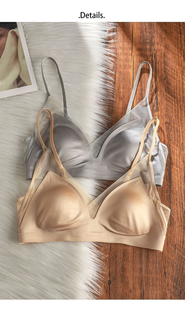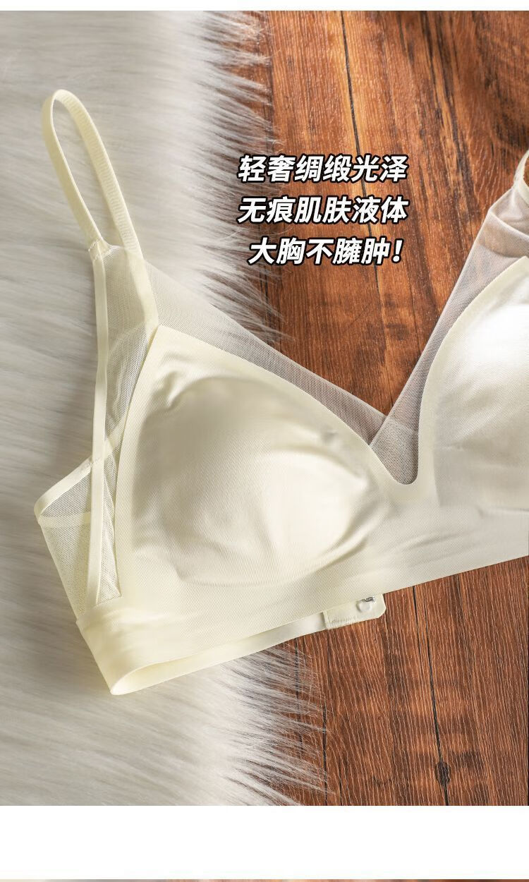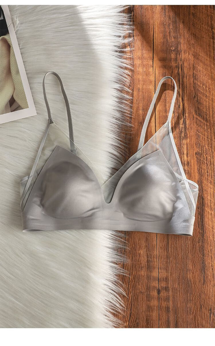 French satin liquid foundation invisible underwear for women with rabbit ear cups, large breasts, small breasts, secondary breasts, anti-sagging, seamless bra, high-end gray M 34/75BC