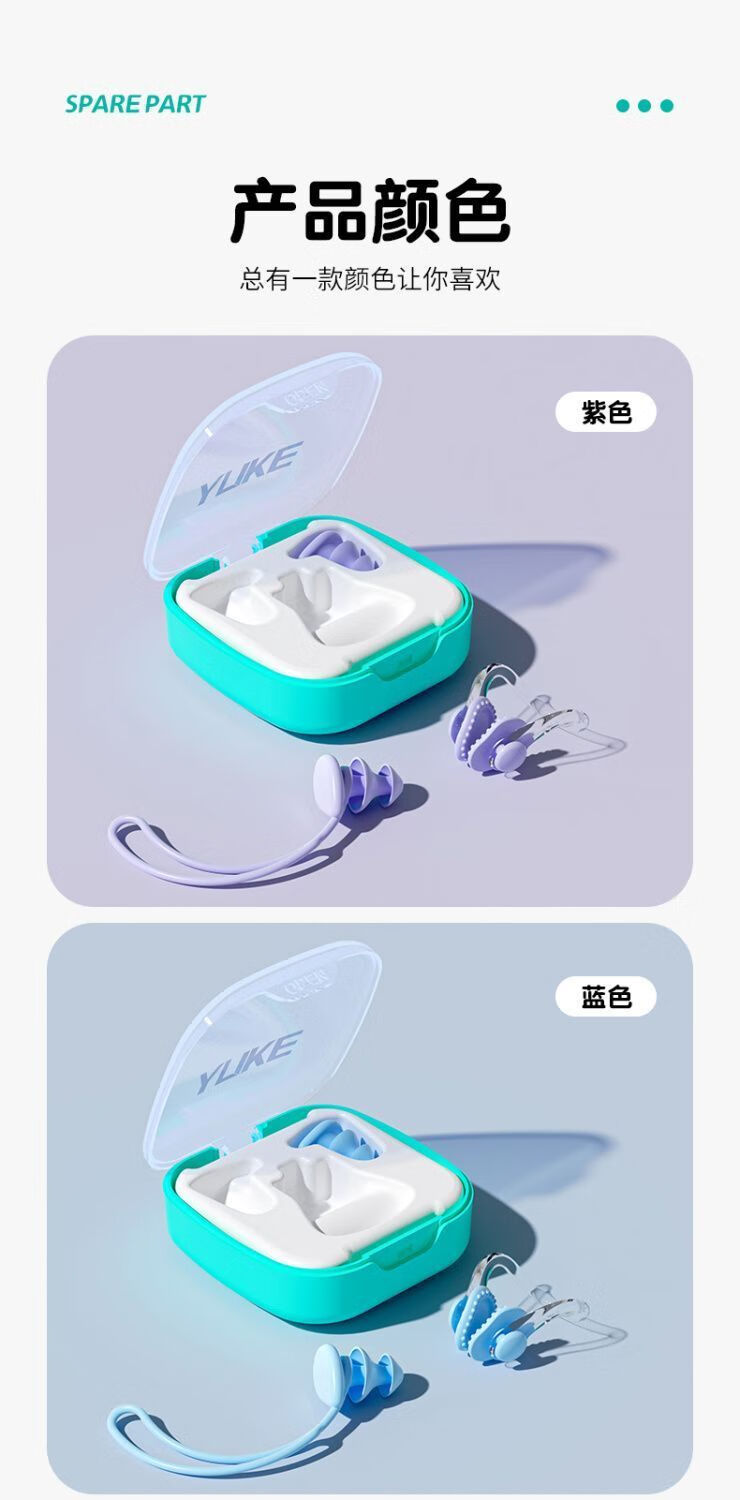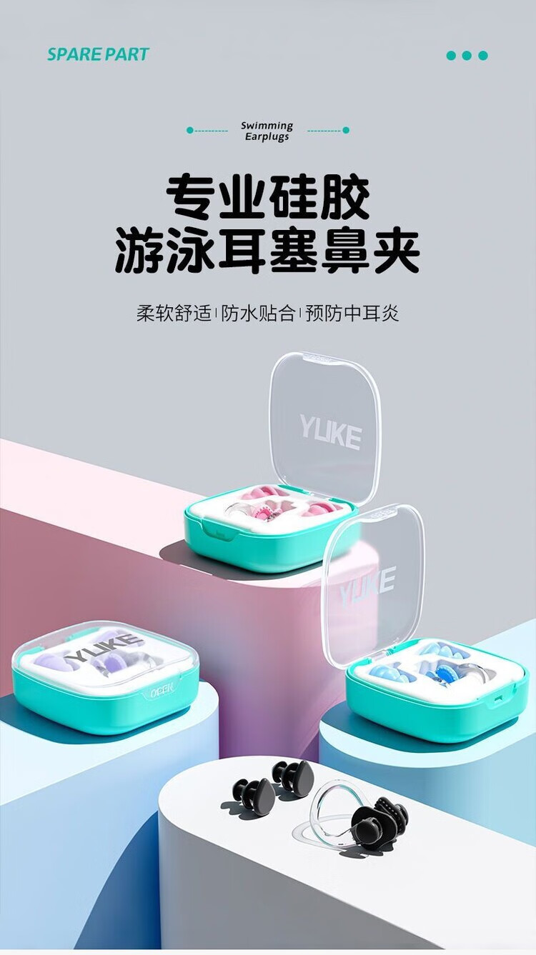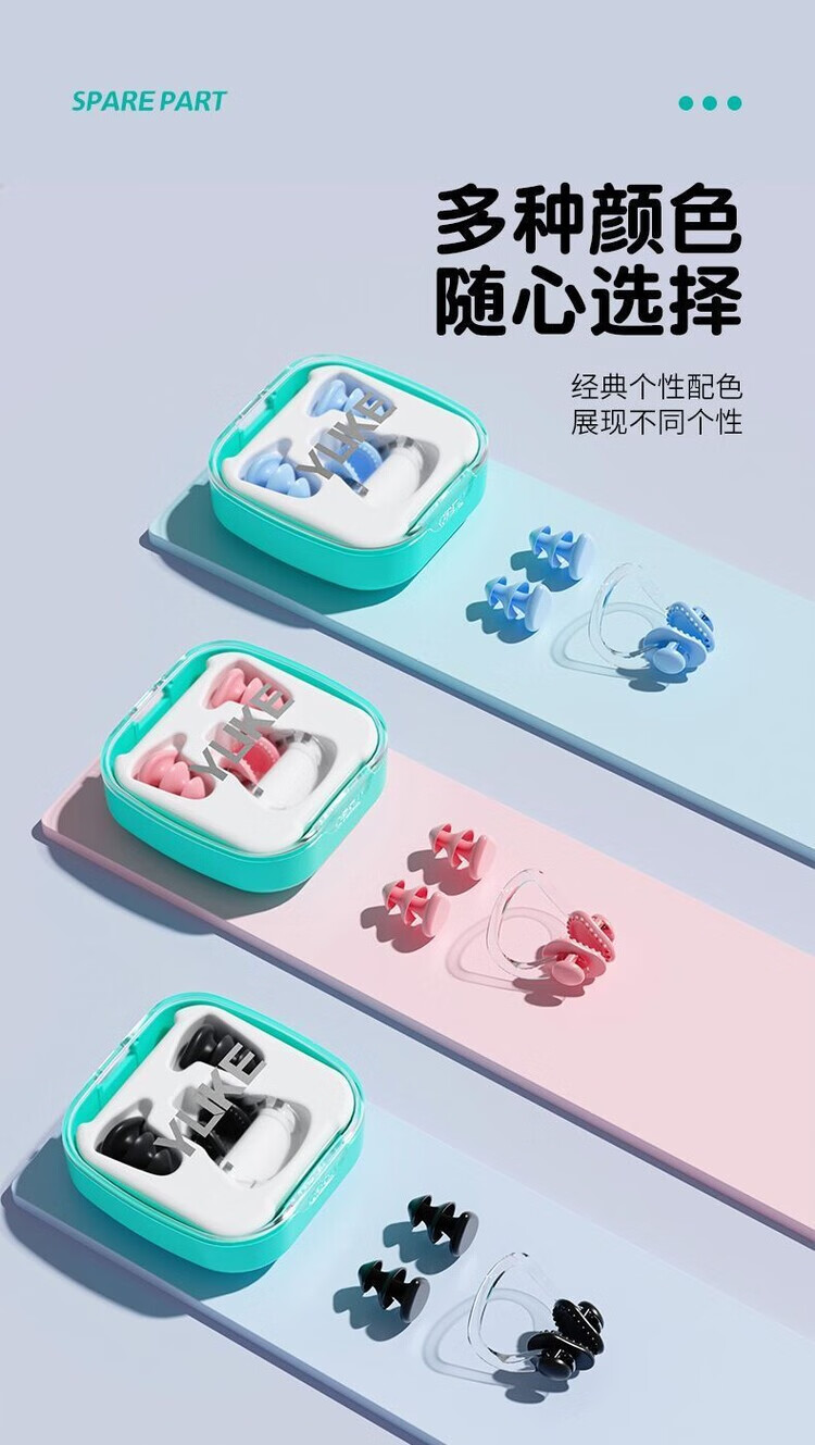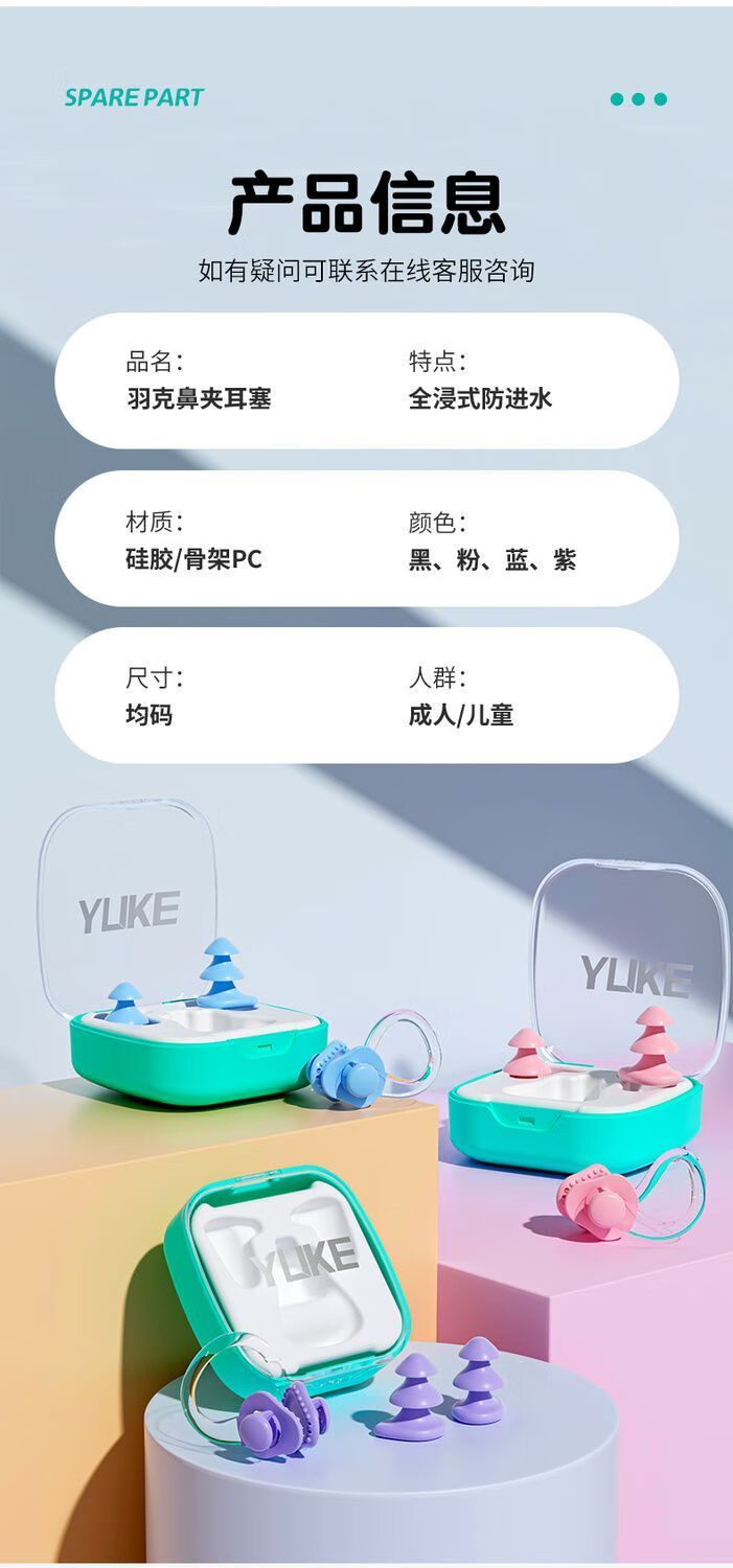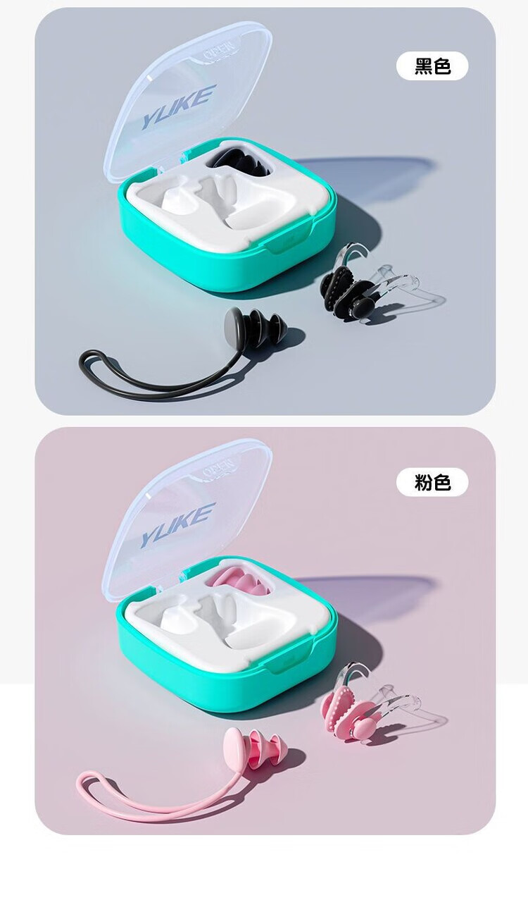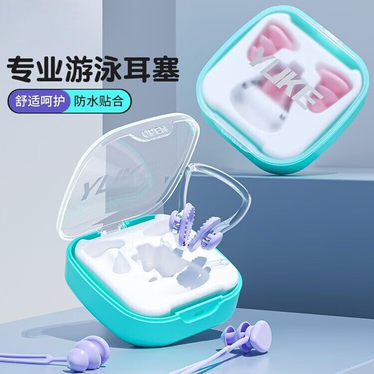 Baby earplugs, swimming earplugs, waterproof, professional adult bathing, children's nose clip, hair washing, water in ears, cherry blossom pink + quiet blue, two-pack special offer, detachable lanyard earplugs, no ear swelling after long-term wear