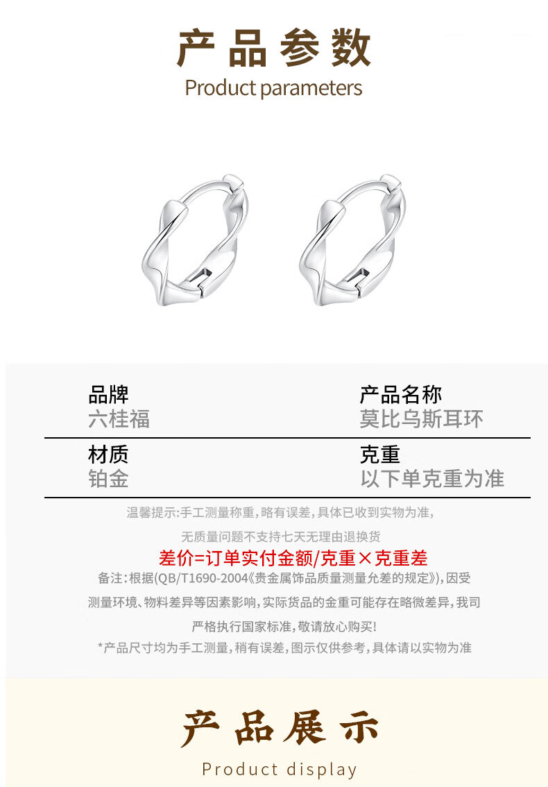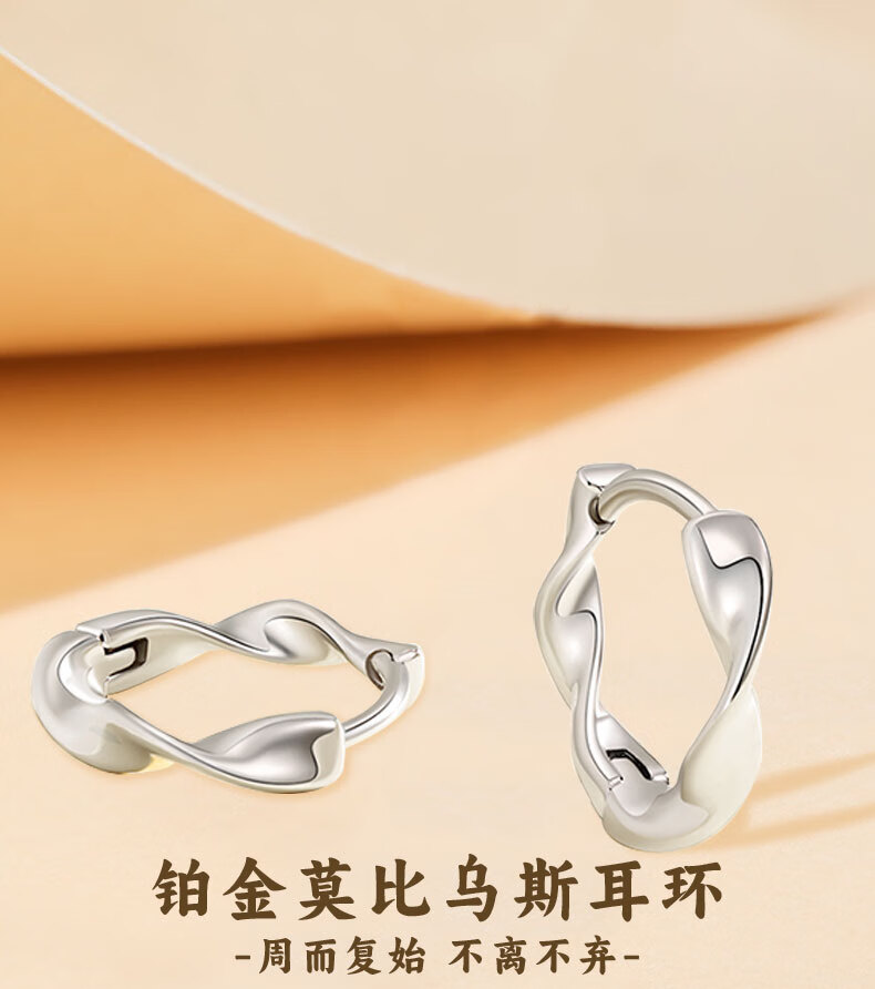LIU GUI FU JEWELRY Platinum Möbius Earrings for Women 2025 New Simple and Versatile Earrings Birthday Gifts for Girls 4.01g Platinum Möbius Earrings