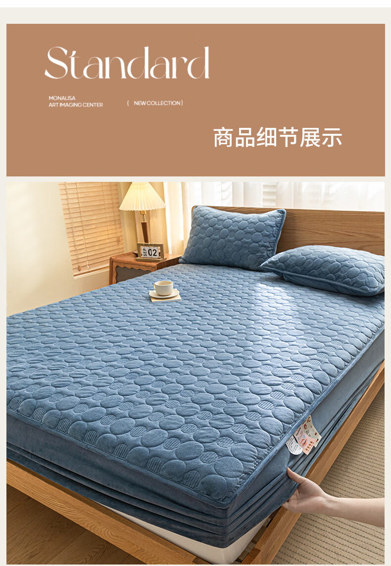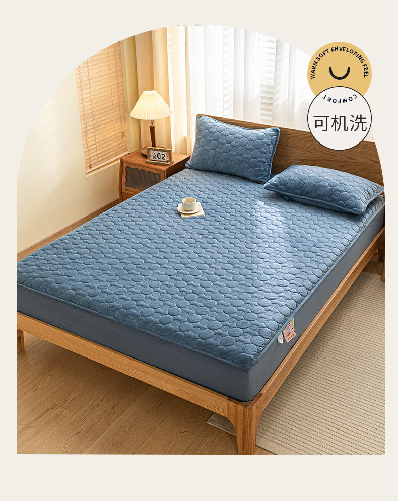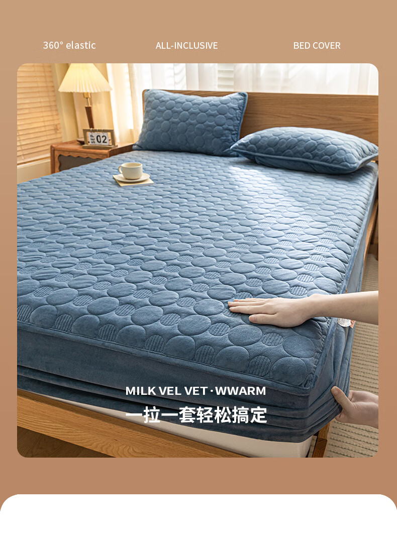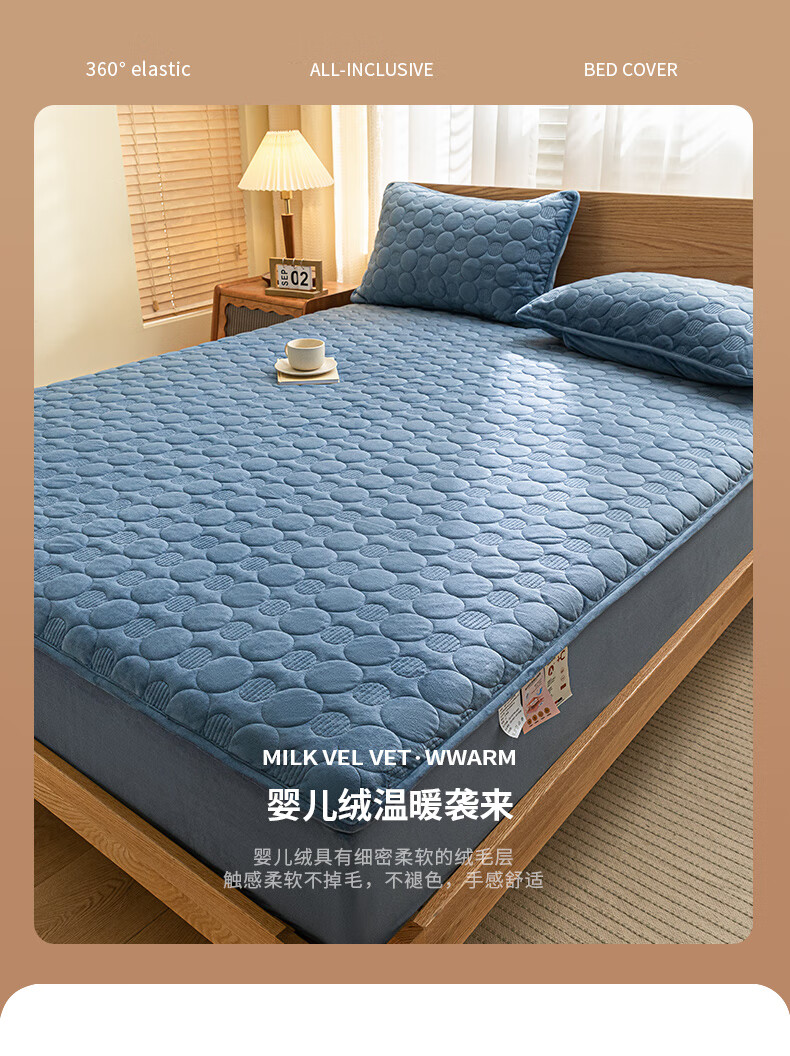 Mercury Series Home Textiles 2025 New Baby Velvet Quilted Sheet Single Piece A+ Bentley Blue Fitted Sheet 180cm*200cm