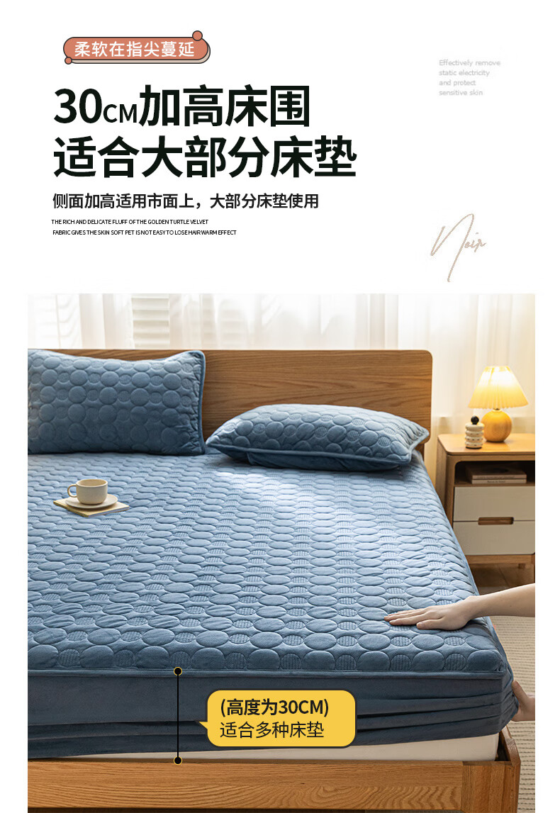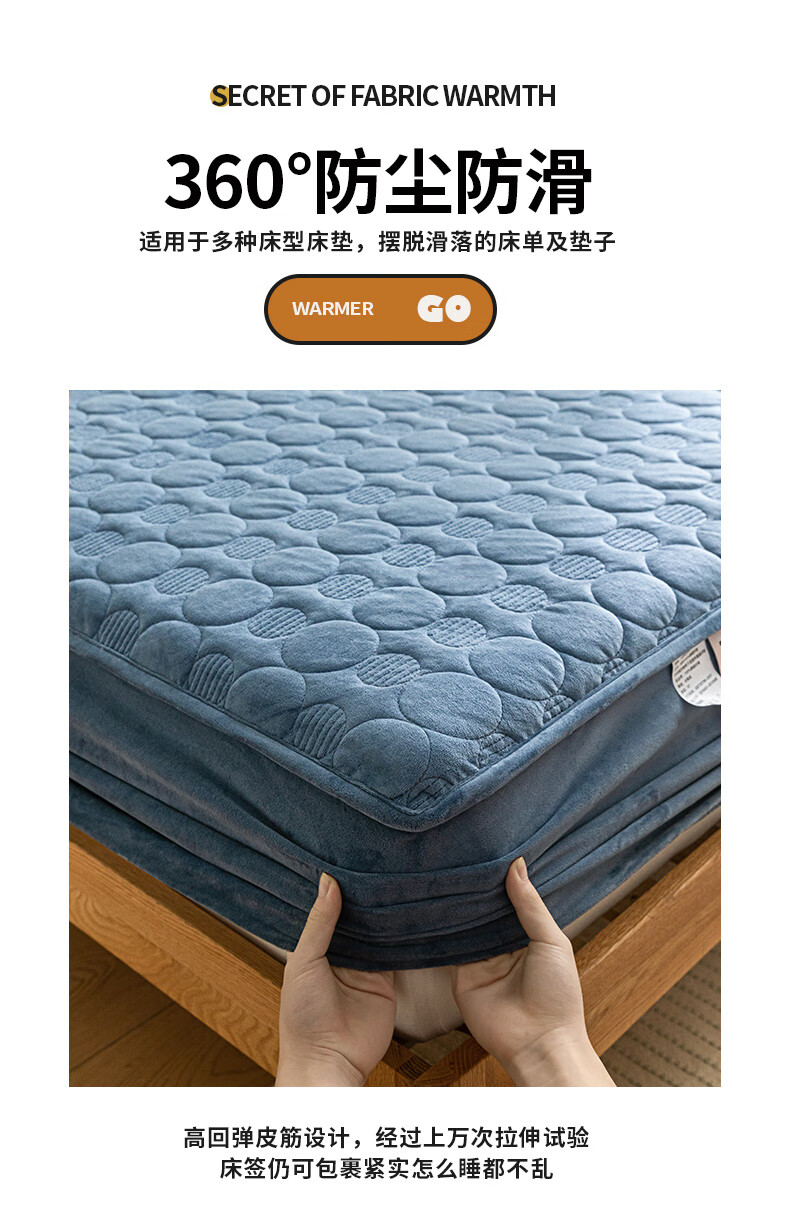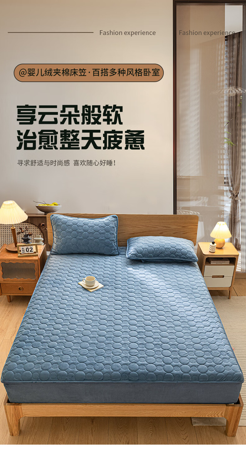 Mercury Series Home Textiles 2025 New Baby Velvet Quilted Sheet Single Piece A+ Bentley Blue Fitted Sheet 180cm*200cm