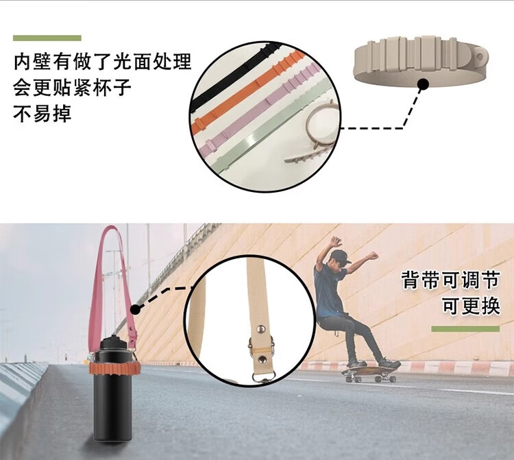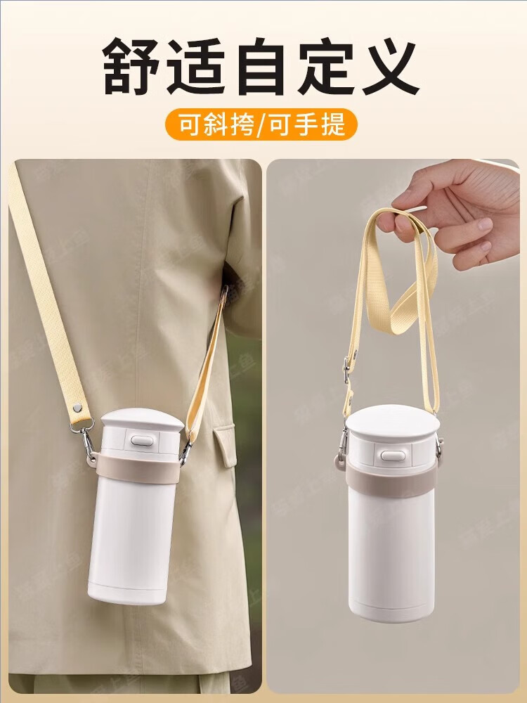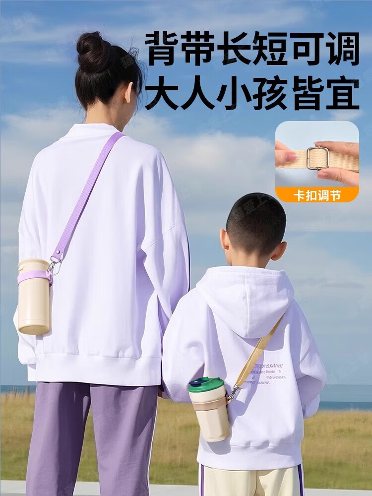 Jingxianju water cup lanyard kettle strap water cup with lanyard strap crossbody strap children's cup bag rope cup cover shoulder strap khaki with yellow rope cup cover length 40.5cm/shoulder strap length 73.3cm