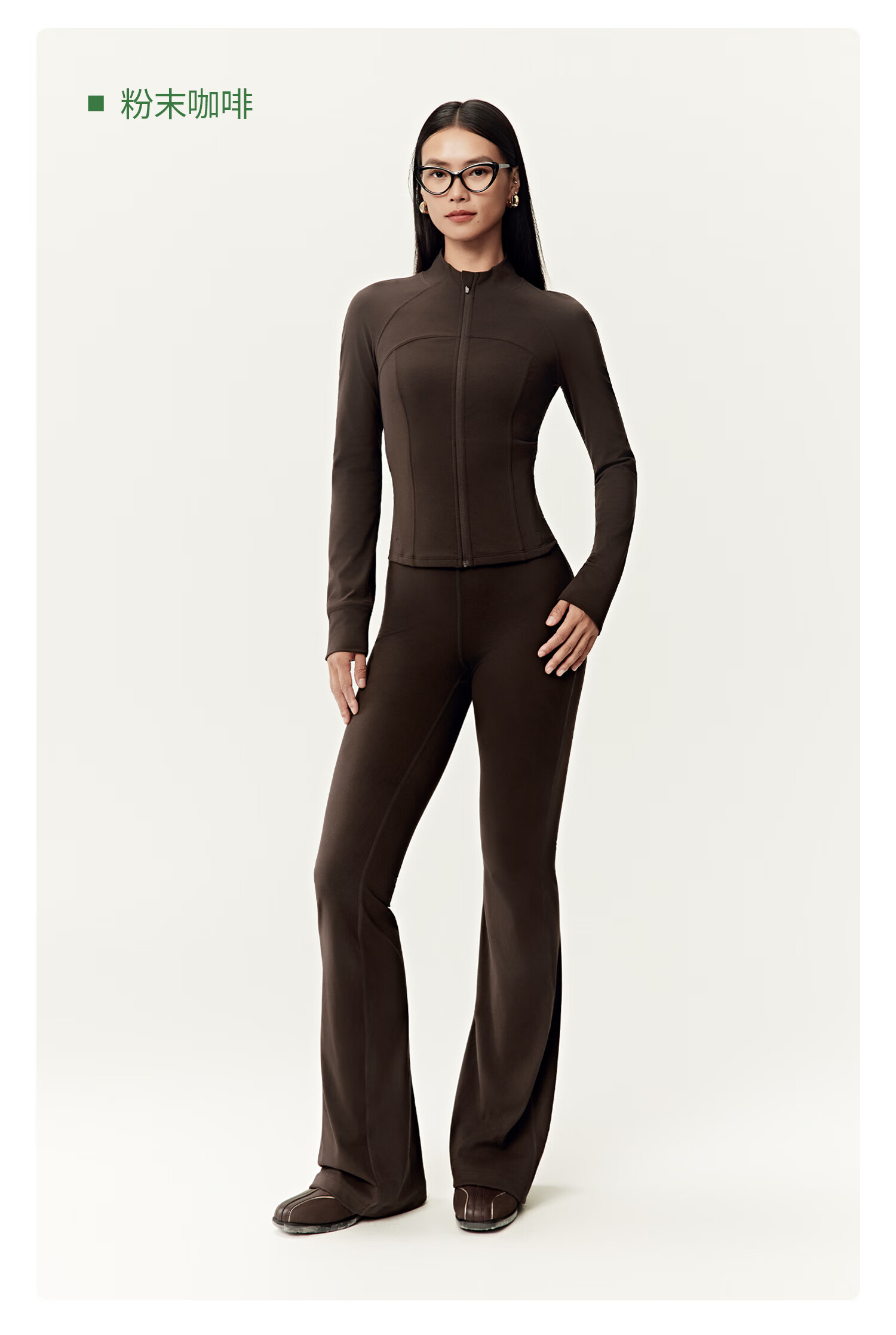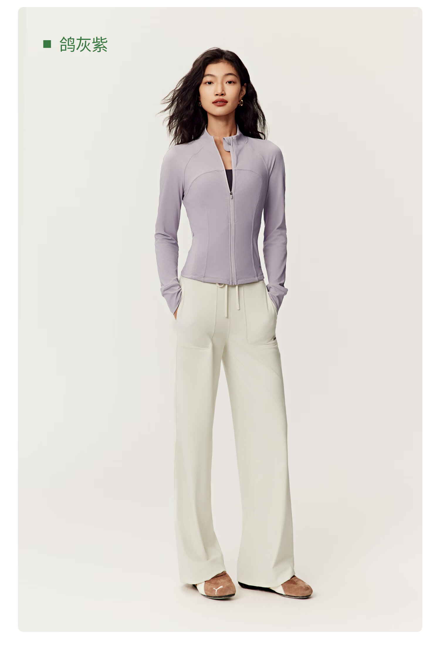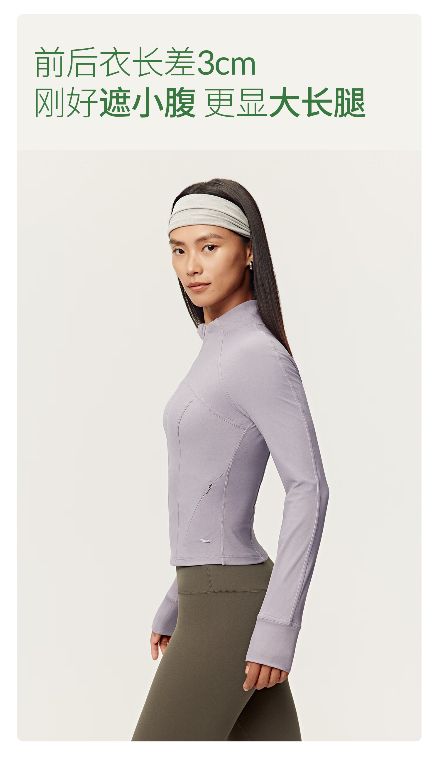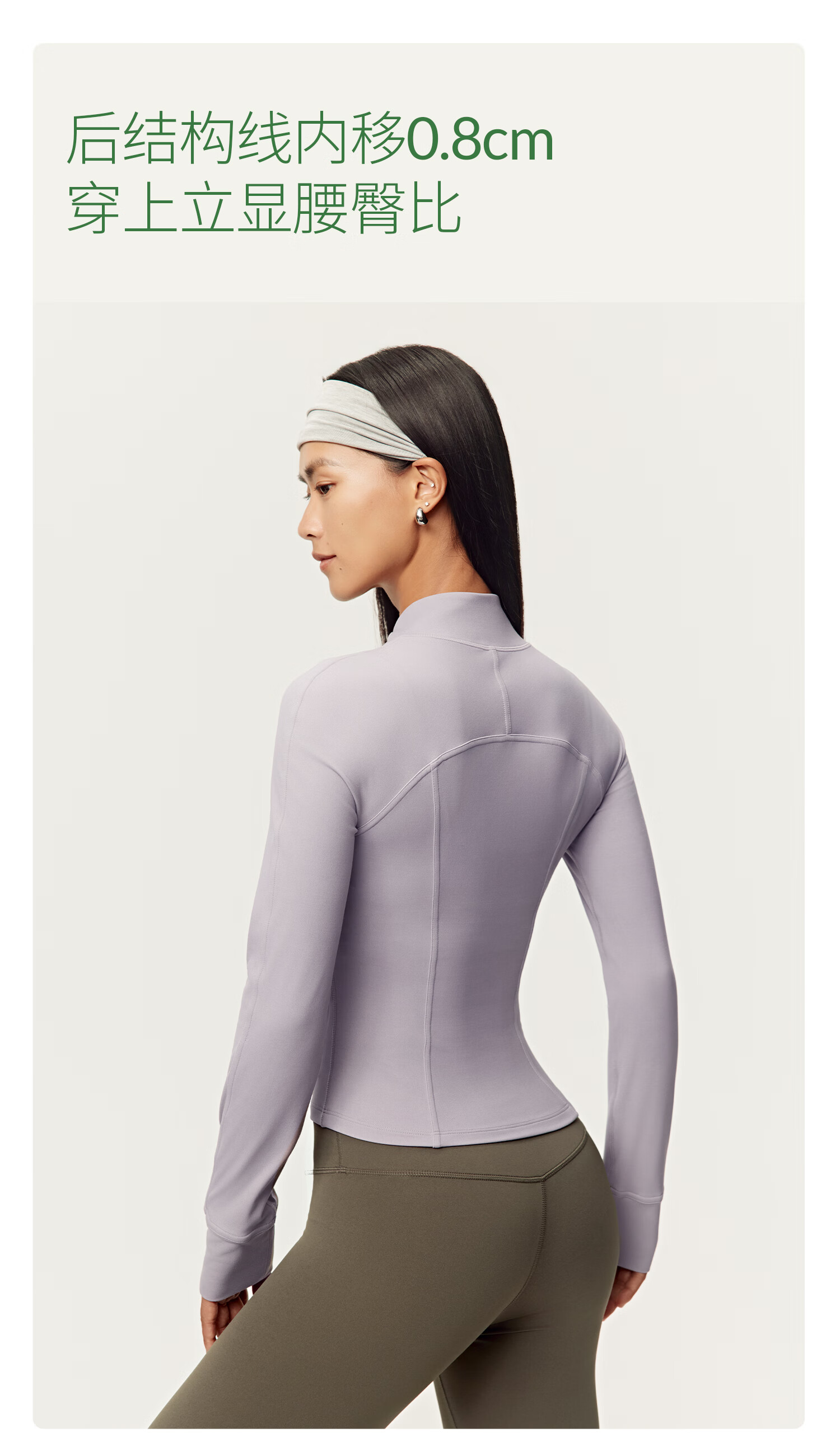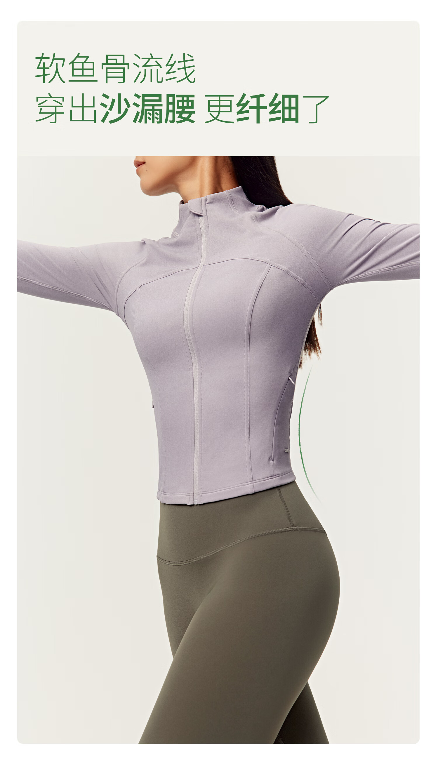Yottoy waist leather yoga jacket women's stand-up collar Pilates training fitness clothing sports cycling top autumn silver gravel S