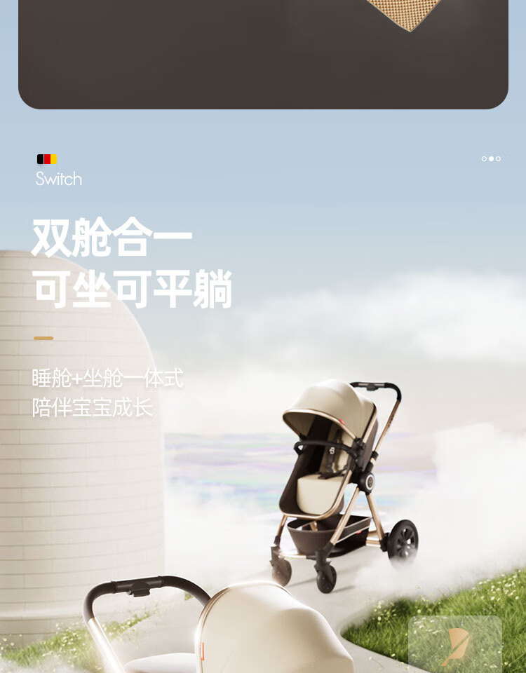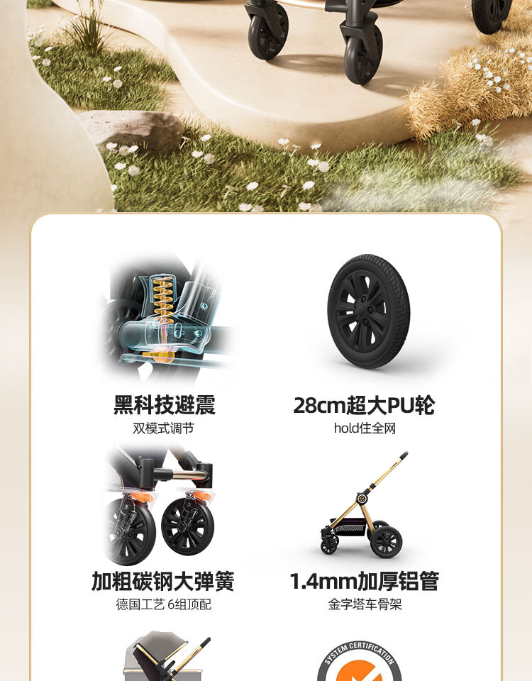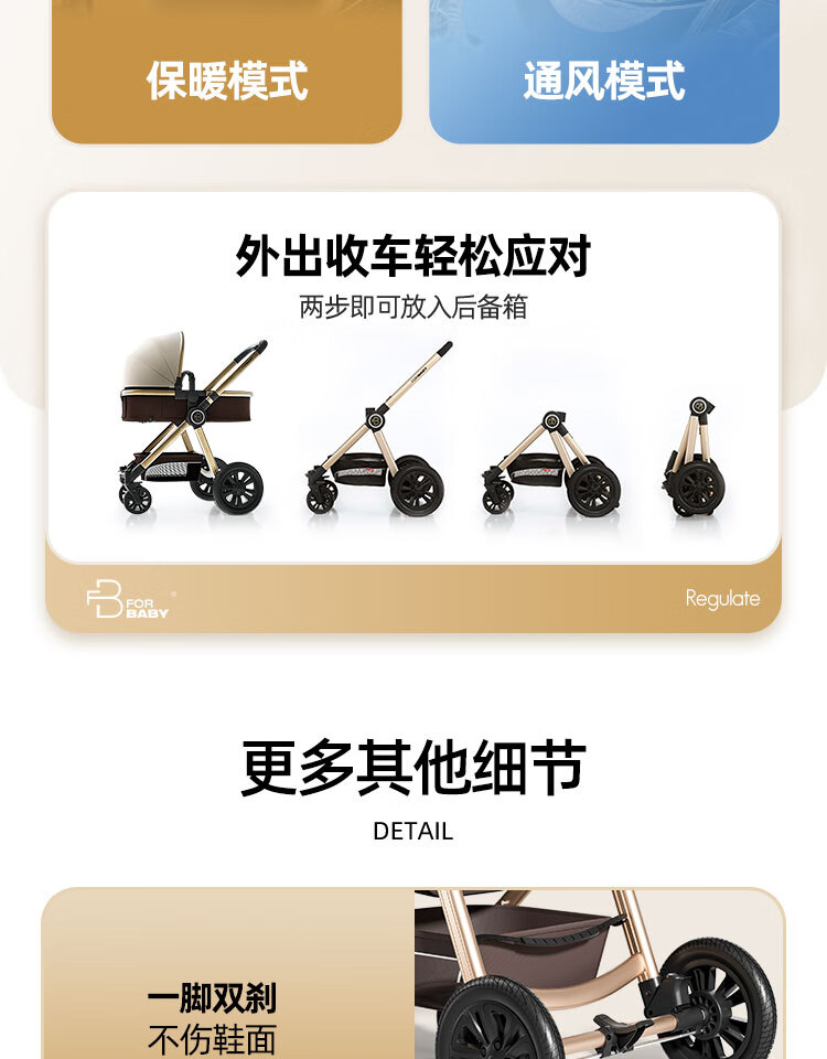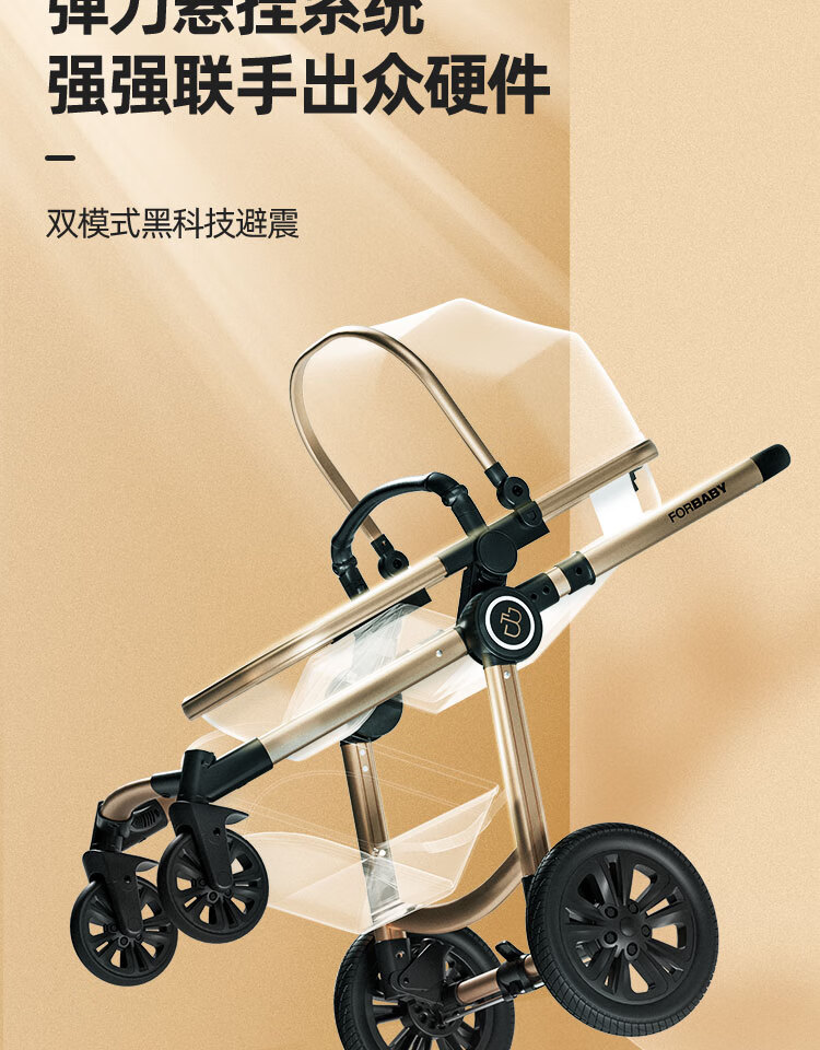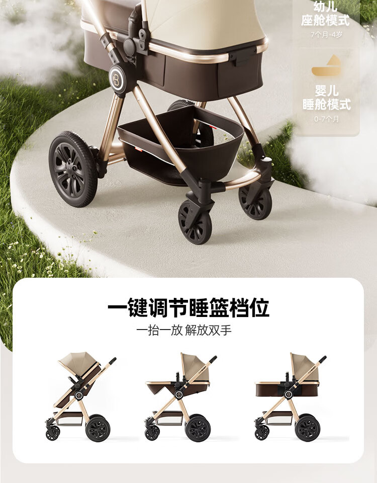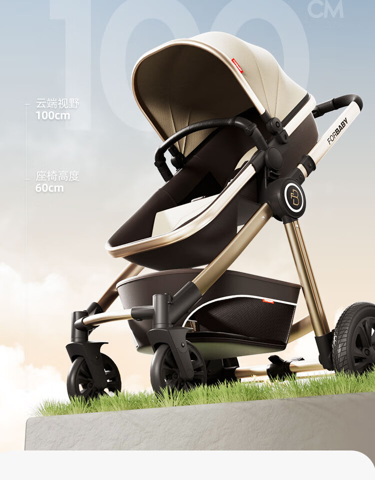 For Baby German High View Stroller Can Sit/Lie Two-way Folding Shock Absorbing Newborn Baby Plus Upgraded Version-California Sunshine Basket Version