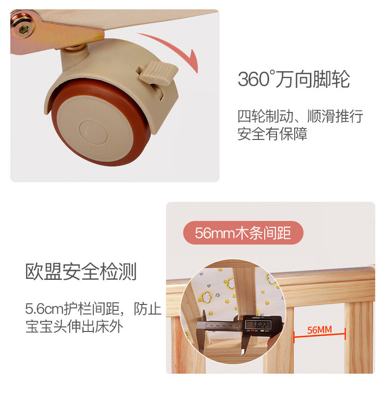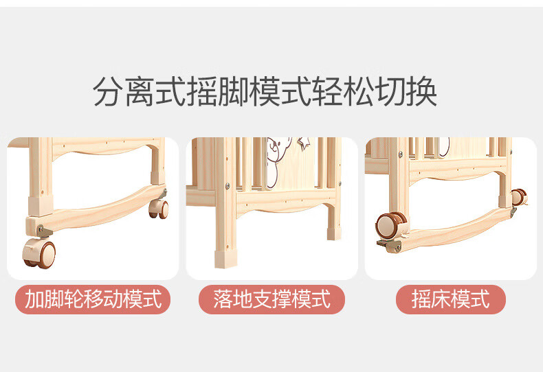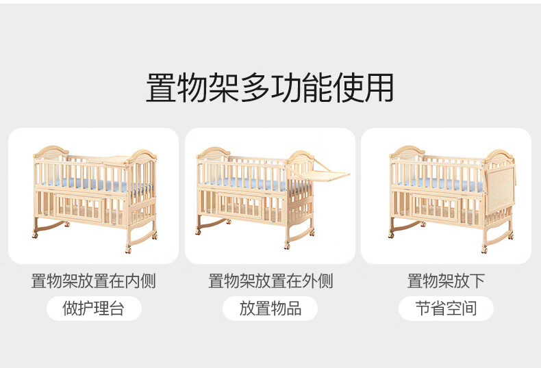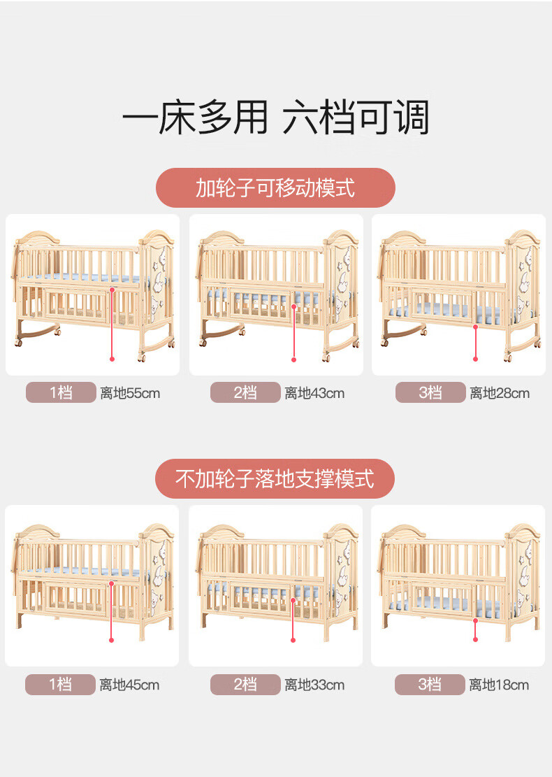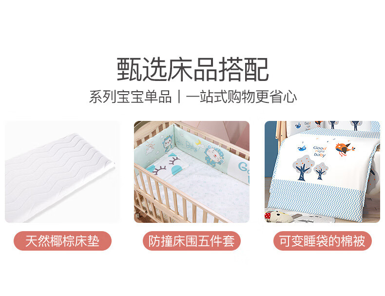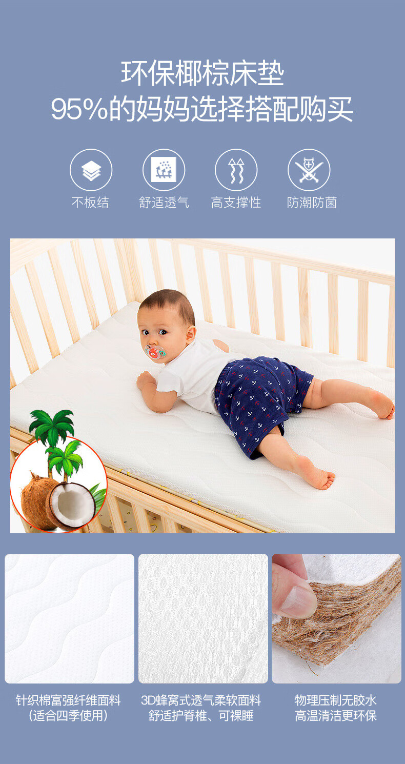 Crib solid wood unpainted multifunctional newborn baby cradle bed children's removable and splicable baby bed 598 log bed + mosquito net + brown mat large bed 120*65*98cm (changeable children's bed)