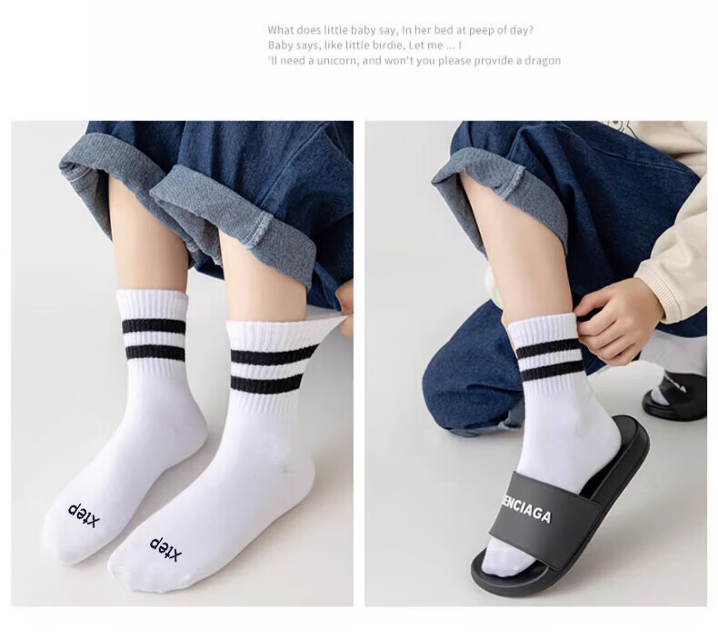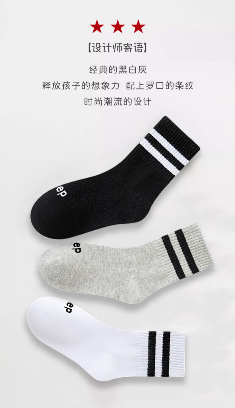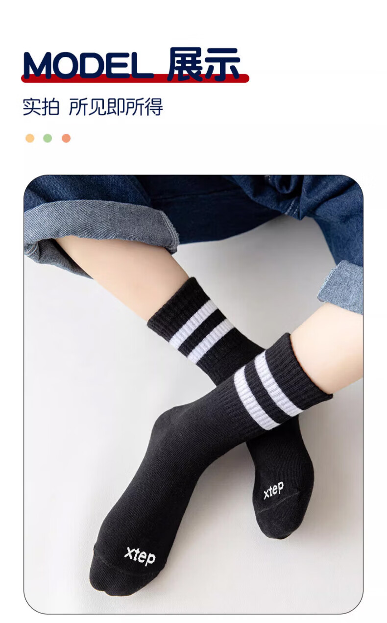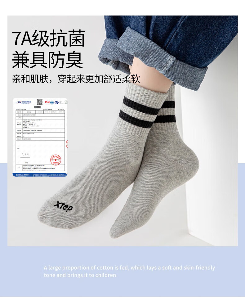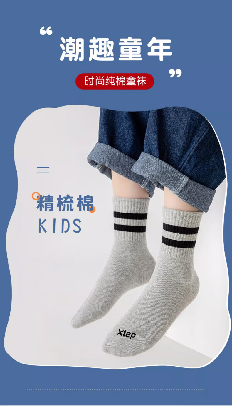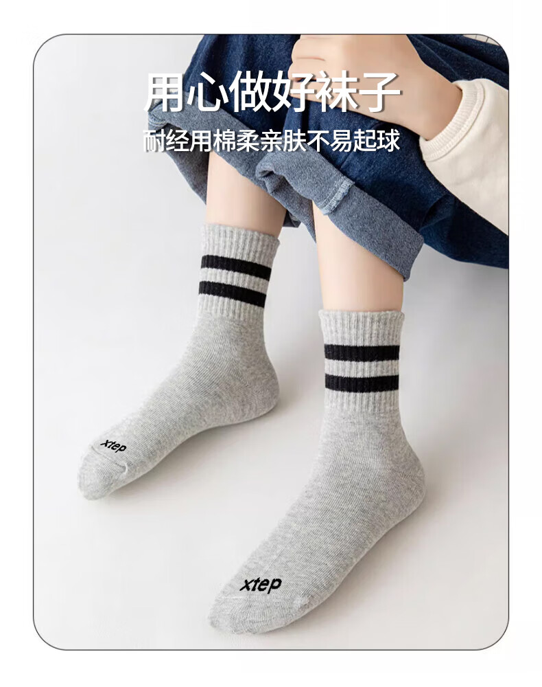 Xtep autumn and winter children's socks 7A antibacterial pure cotton sports deodorant mid-calf socks sweat-absorbent and breathable middle-aged and older children's campus socks black and white gray antibacterial and deodorant 3 pairs M 33-37 size