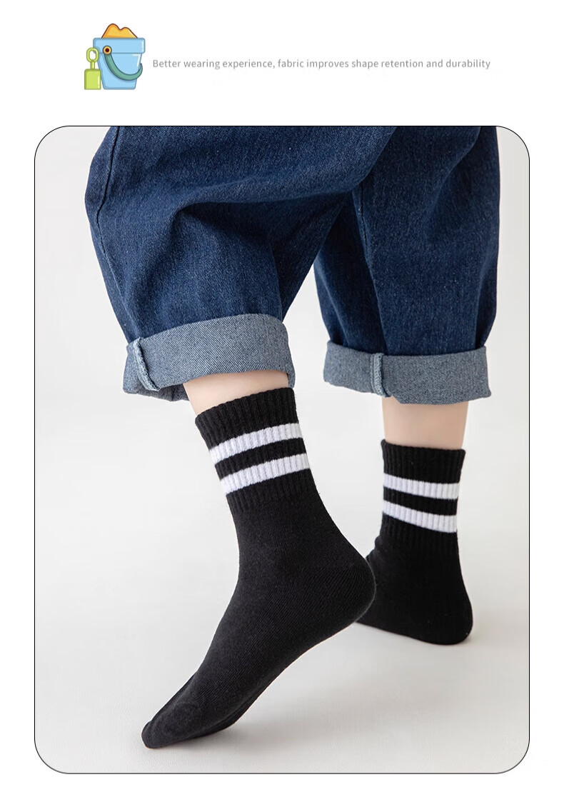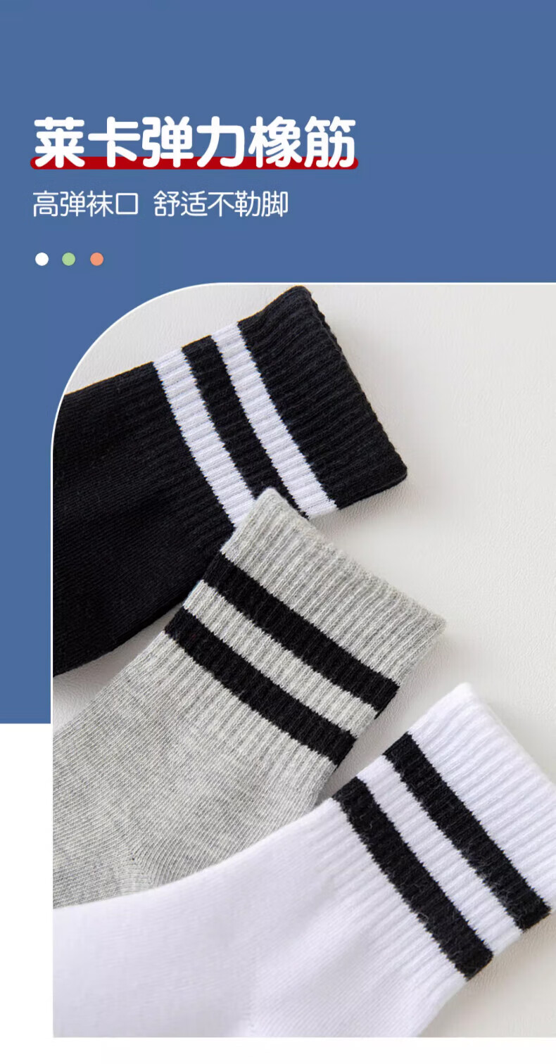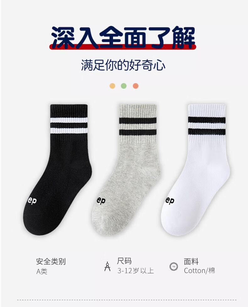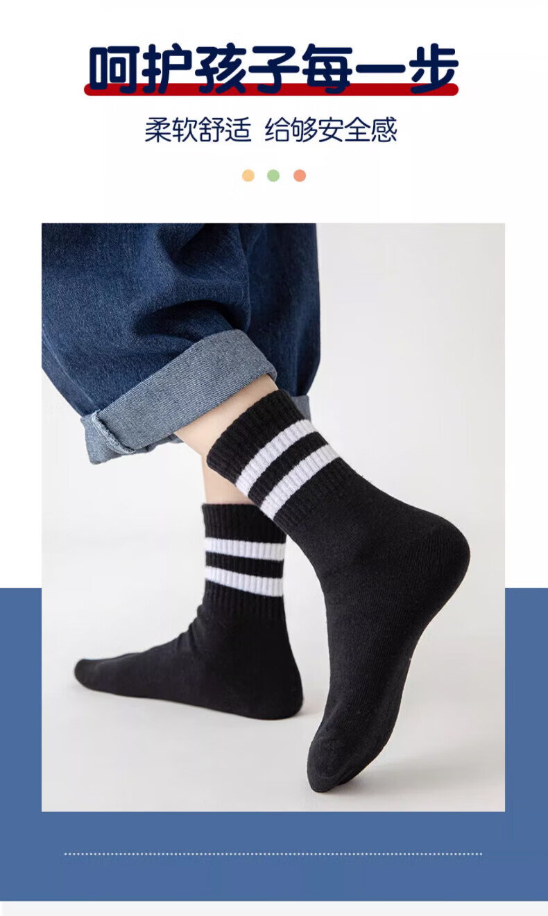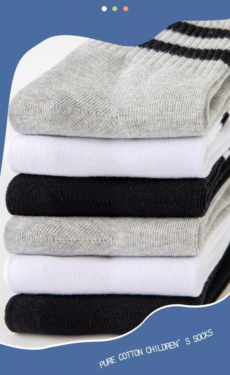 Xtep autumn and winter children's socks 7A antibacterial pure cotton sports deodorant mid-calf socks sweat-absorbent and breathable middle-aged and older children's campus socks black and white gray antibacterial and deodorant 3 pairs M 33-37 size