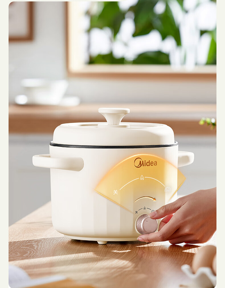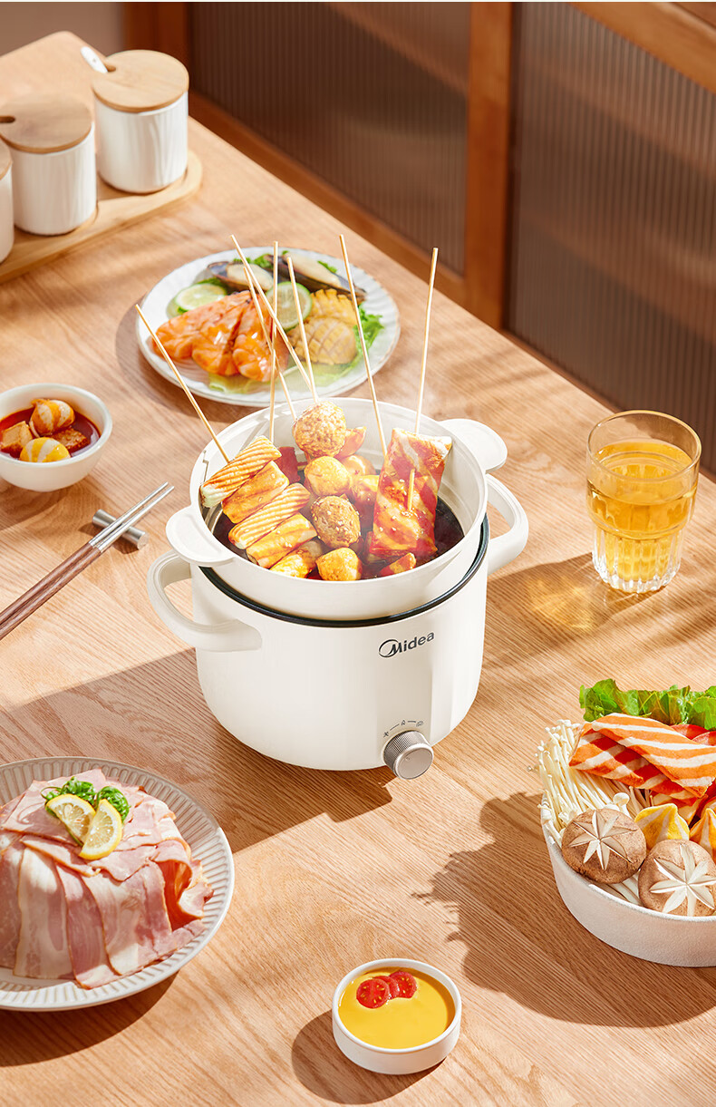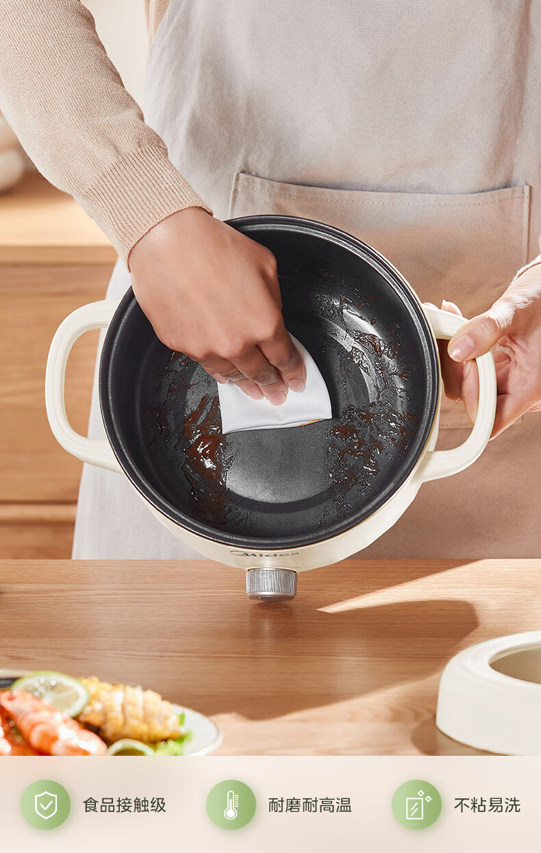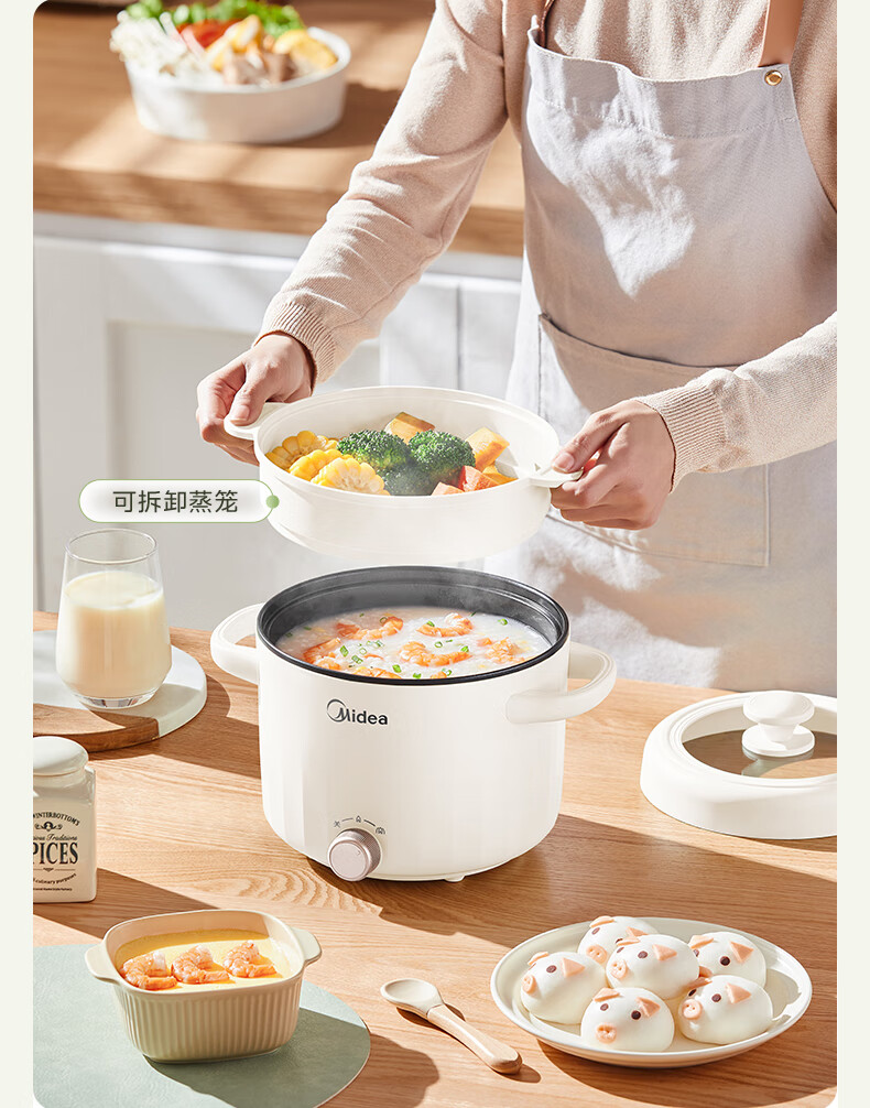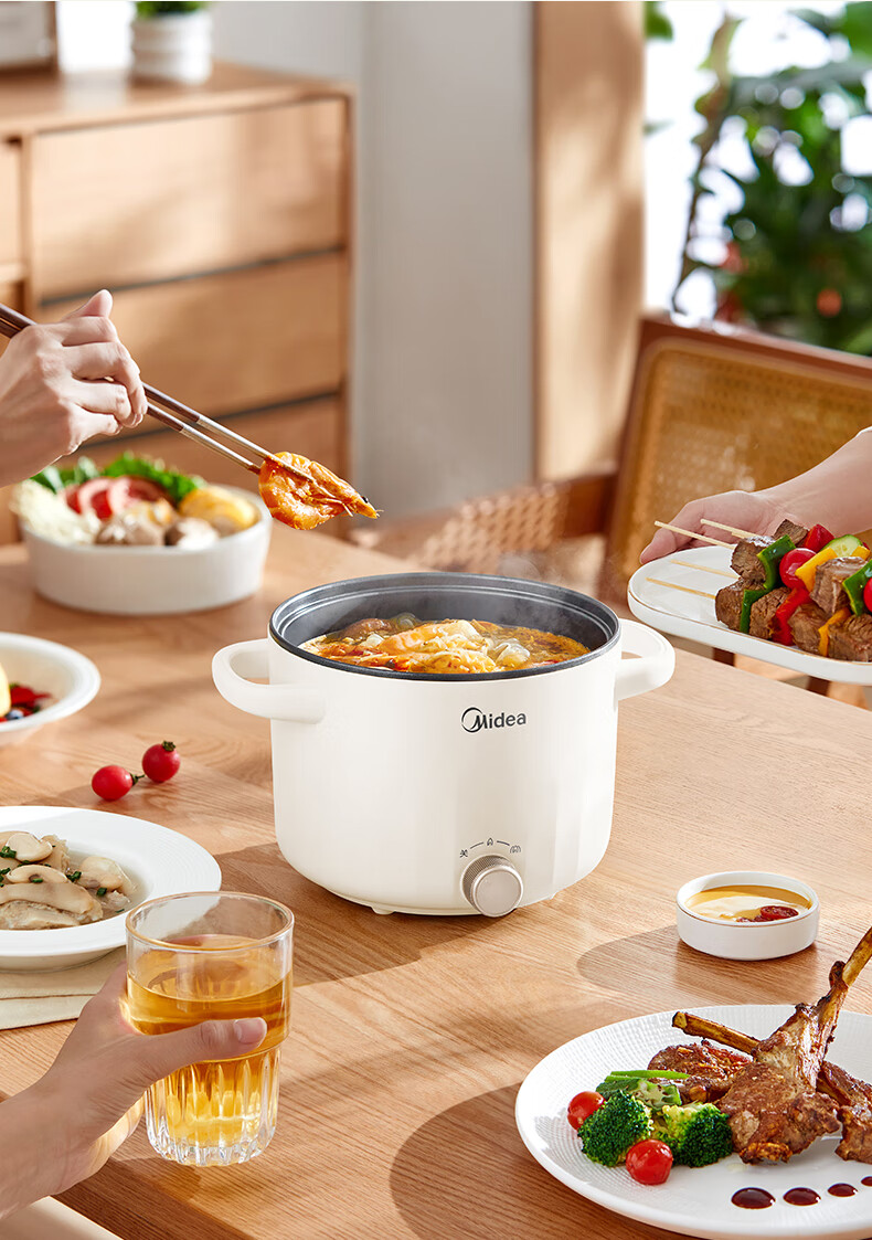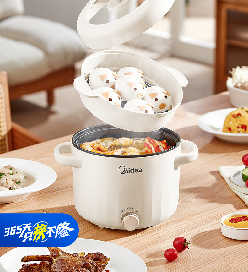 Midea electric cooker, household multi-functional small cooker, dormitory student pot, smart electric pot, low-power electric hot pot, hot pot, instant noodle pot, steaming and cooking integrated non-stick pot 1.7L non-stick inner pot XZE1612