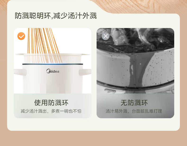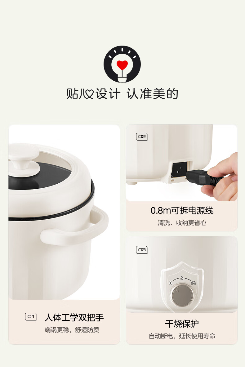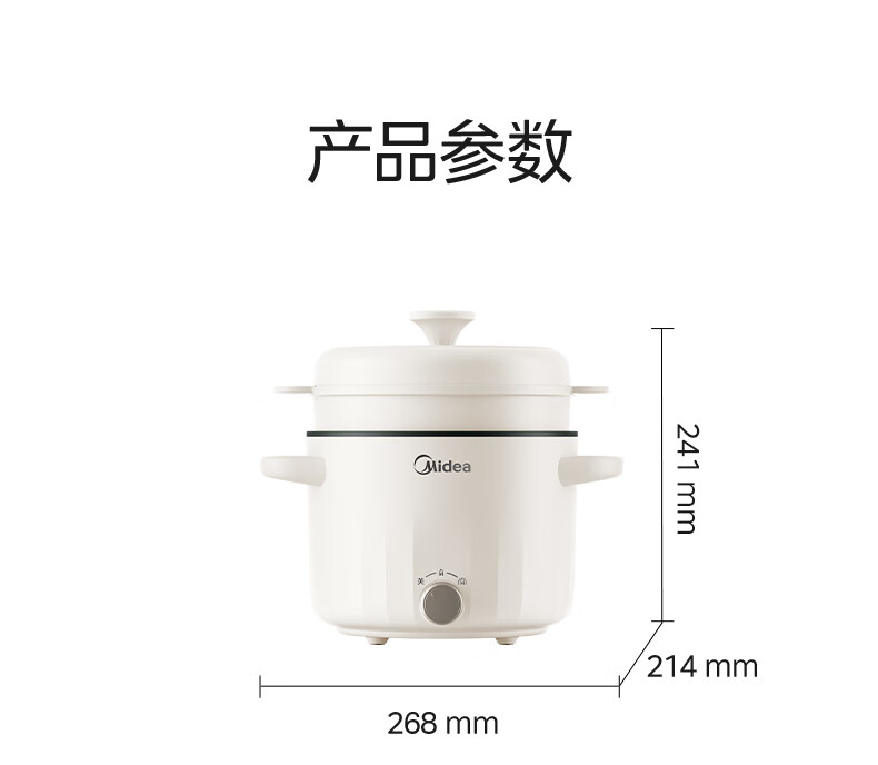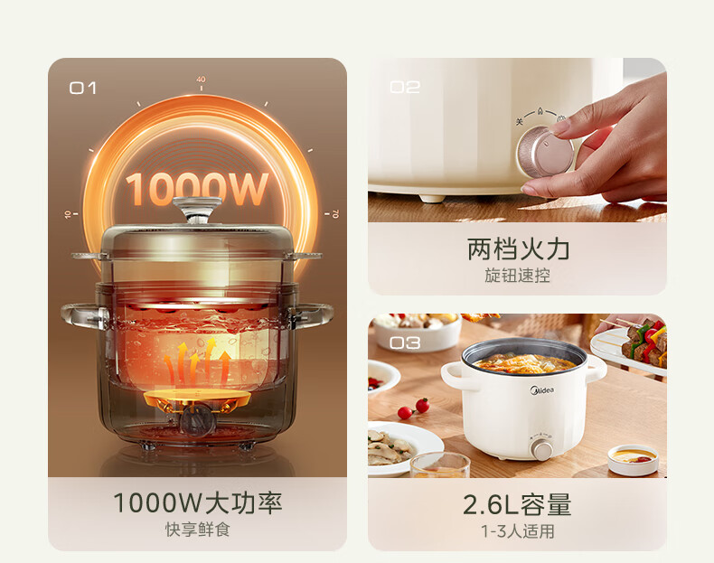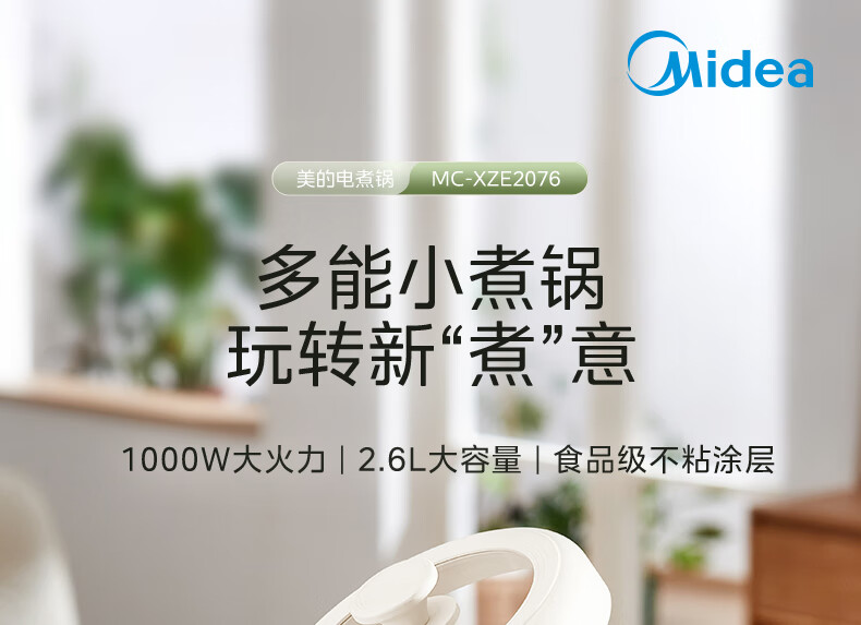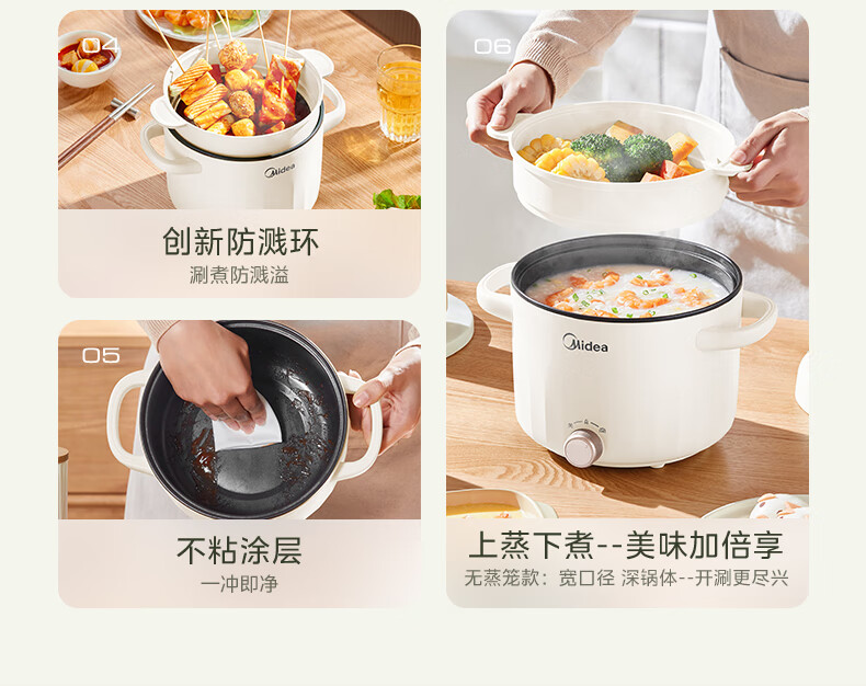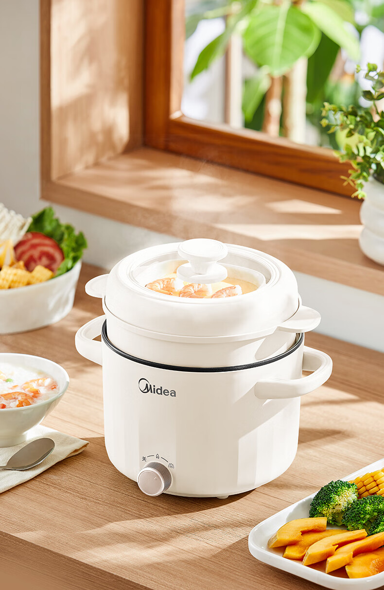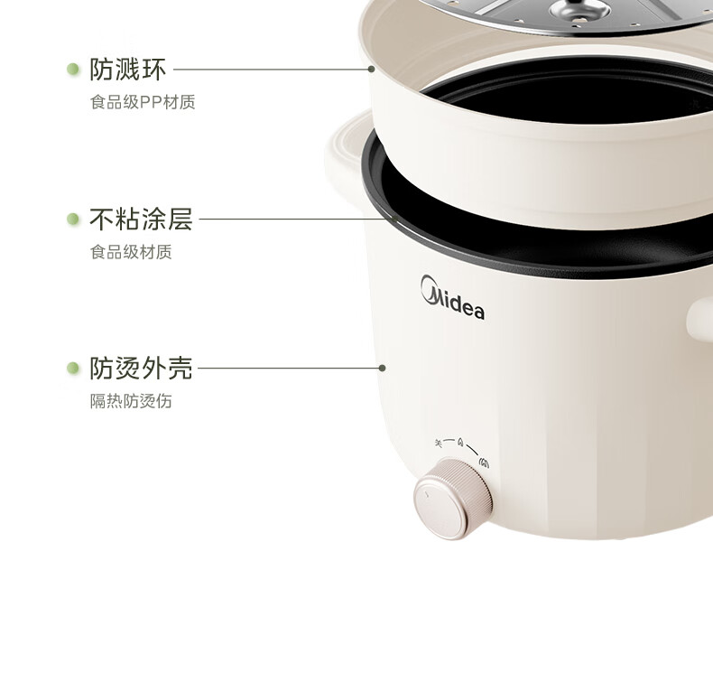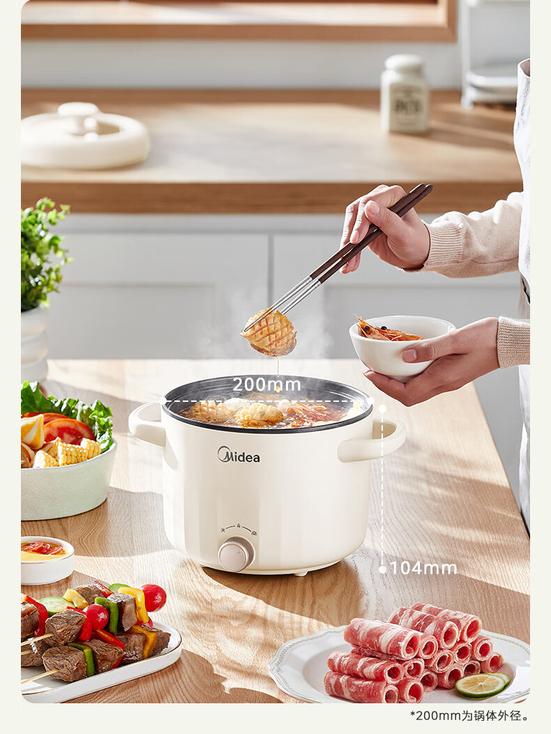 Midea electric cooker, household multi-functional small cooker, dormitory student pot, smart electric pot, low-power electric hot pot, hot pot, instant noodle pot, steaming and cooking integrated non-stick pot 1.7L non-stick inner pot XZE1612