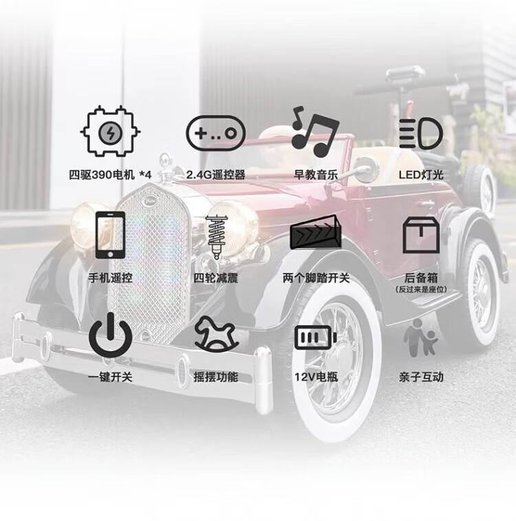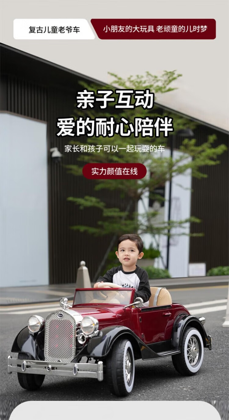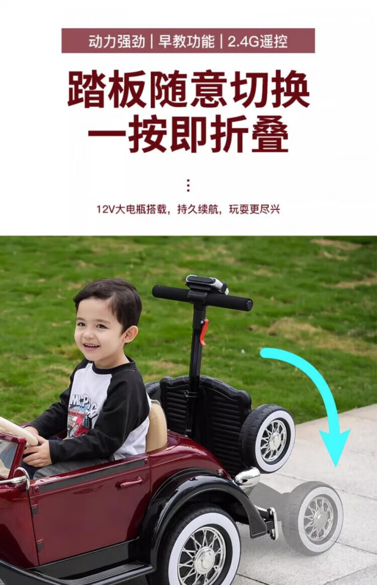 Cool Paichi children's electric car can sit in a classic car for adults, a parent-child car, a four-wheeled car for men and women, children, remote control toy stroller, painted powder, adult back seat + standing pedal + remote control, 550 motor four-wheel drive + 12A Chaowei Graphene (all configurations)