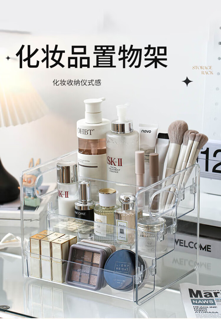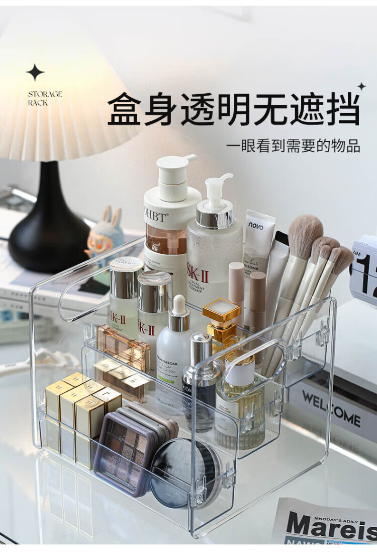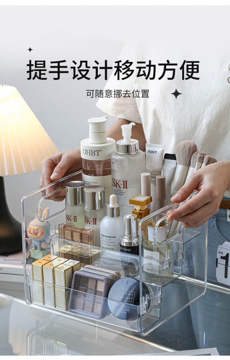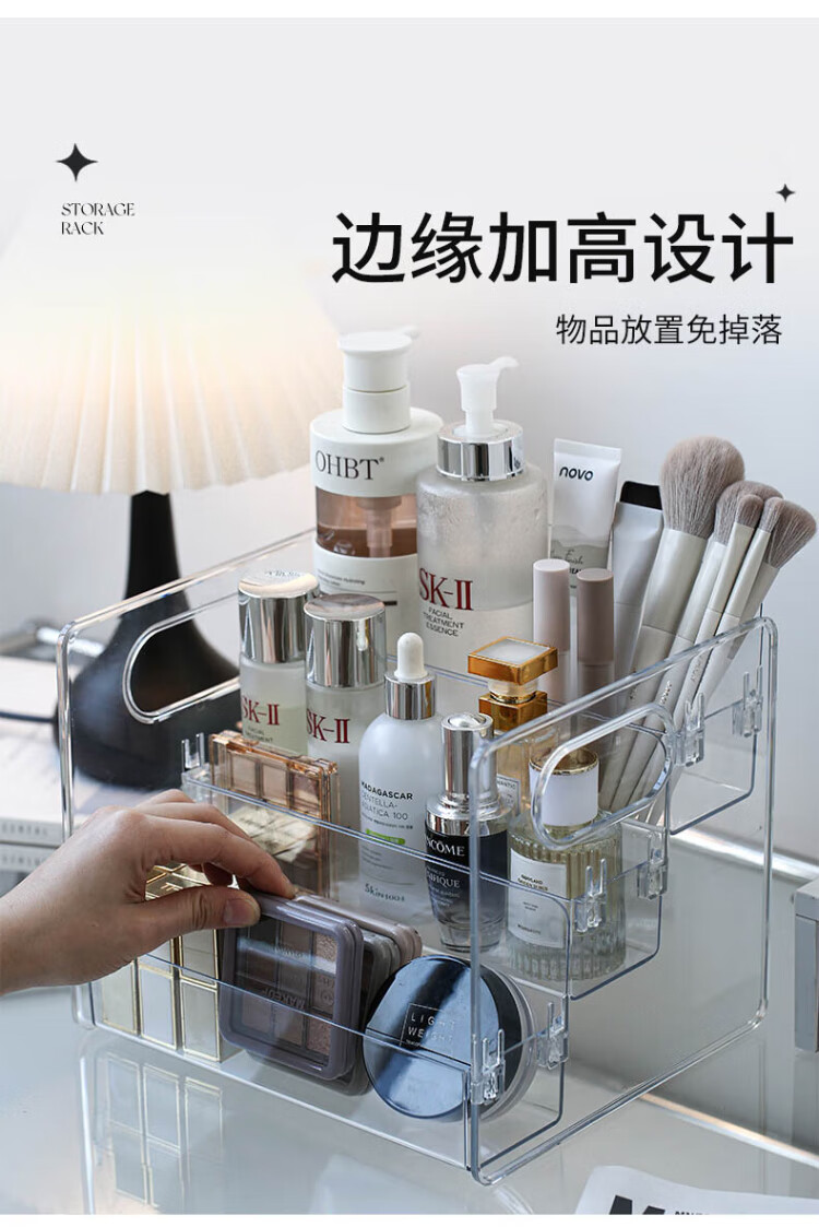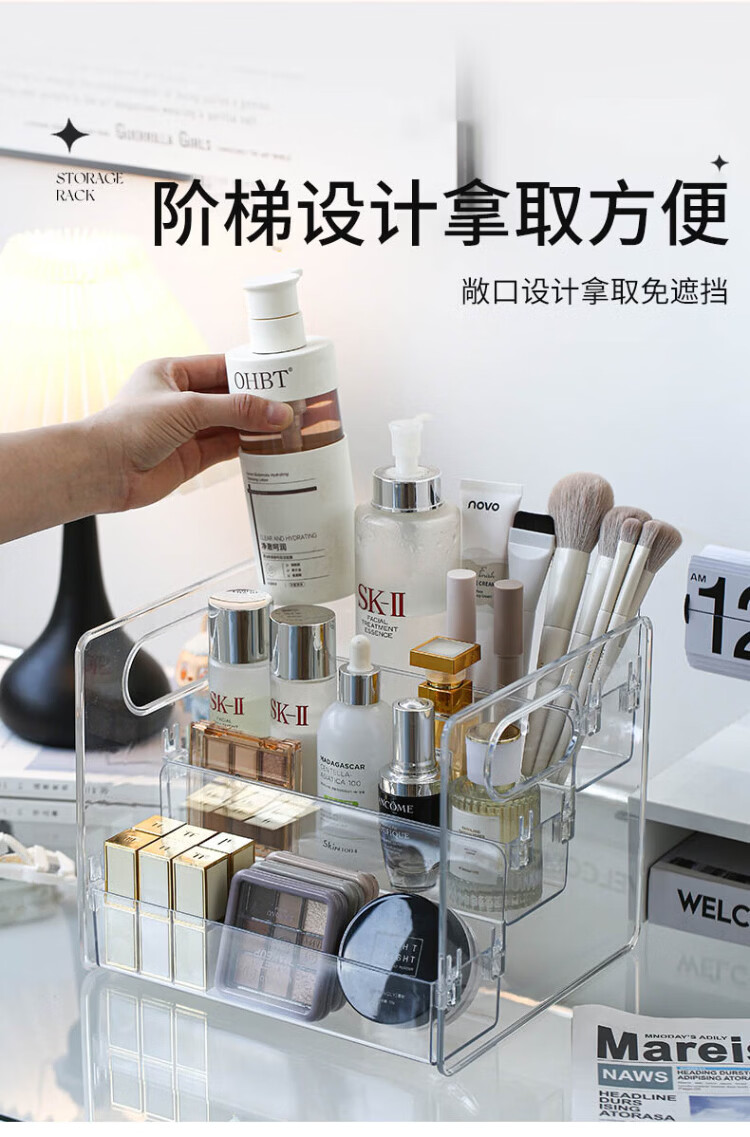 Tian丂 Stepped cosmetics storage box Desktop dressing and washbasin skin care products lipstick cabinet organizer box storage shelf Stepped cosmetics storage box three-layer storage - transparent and visible