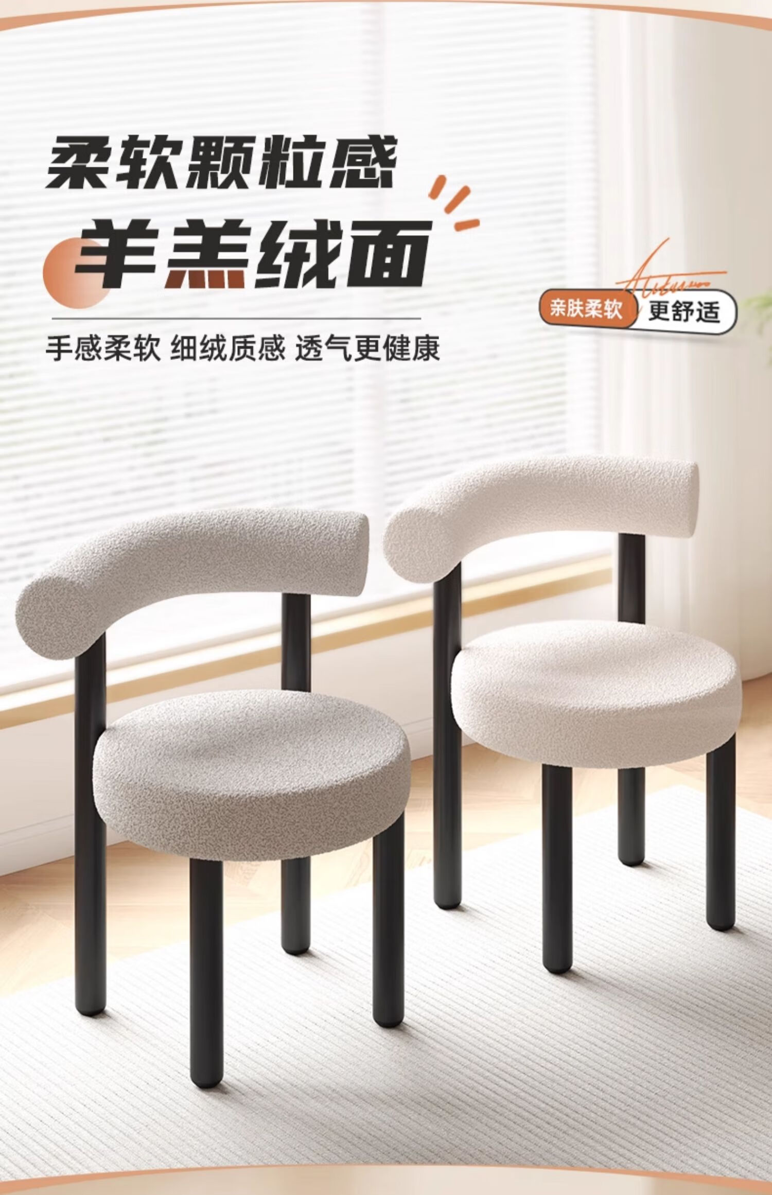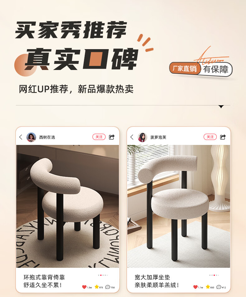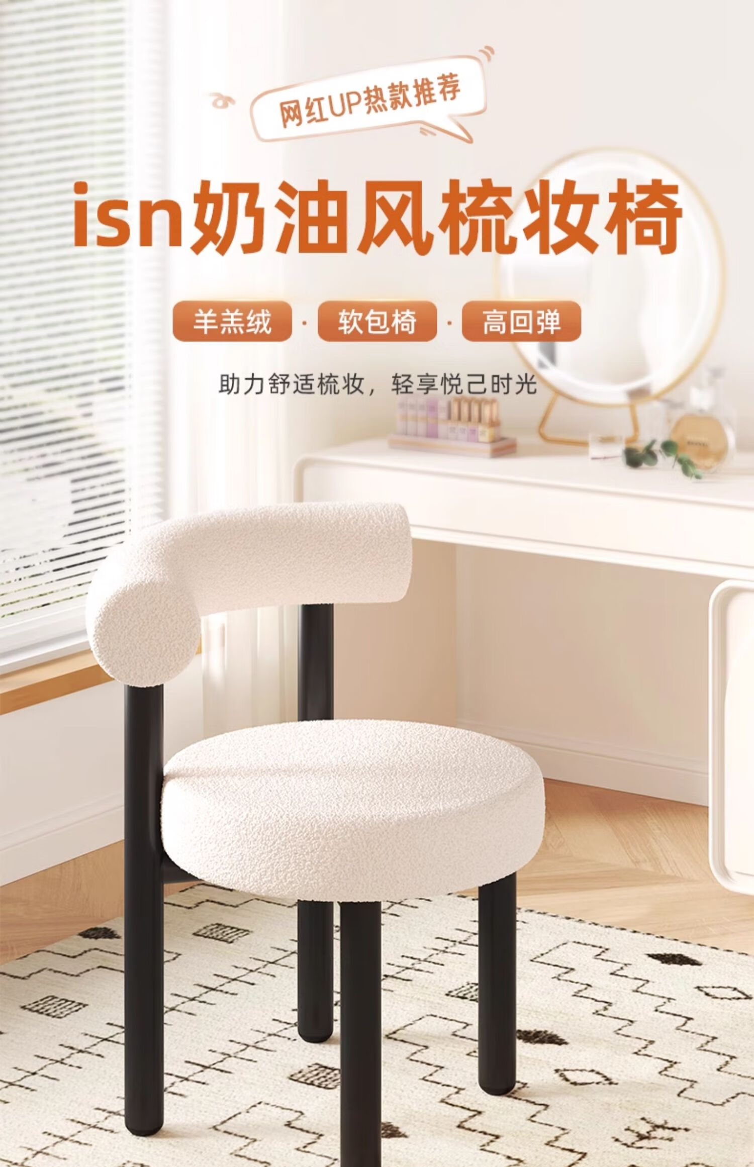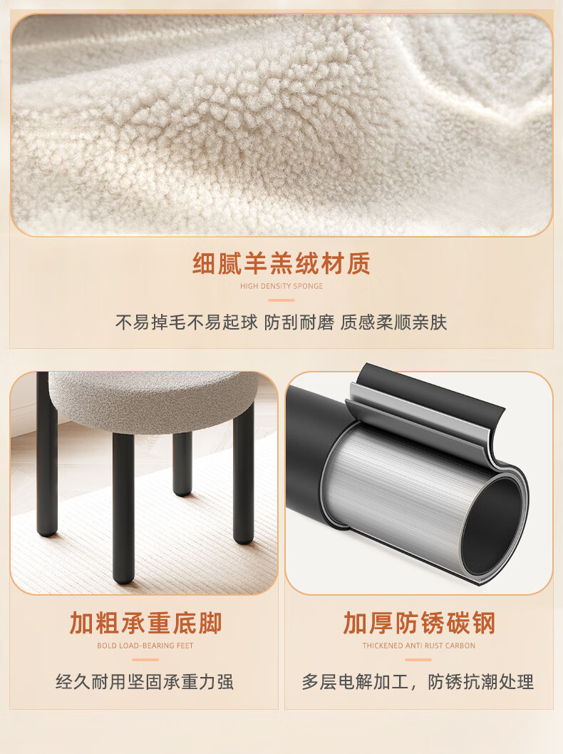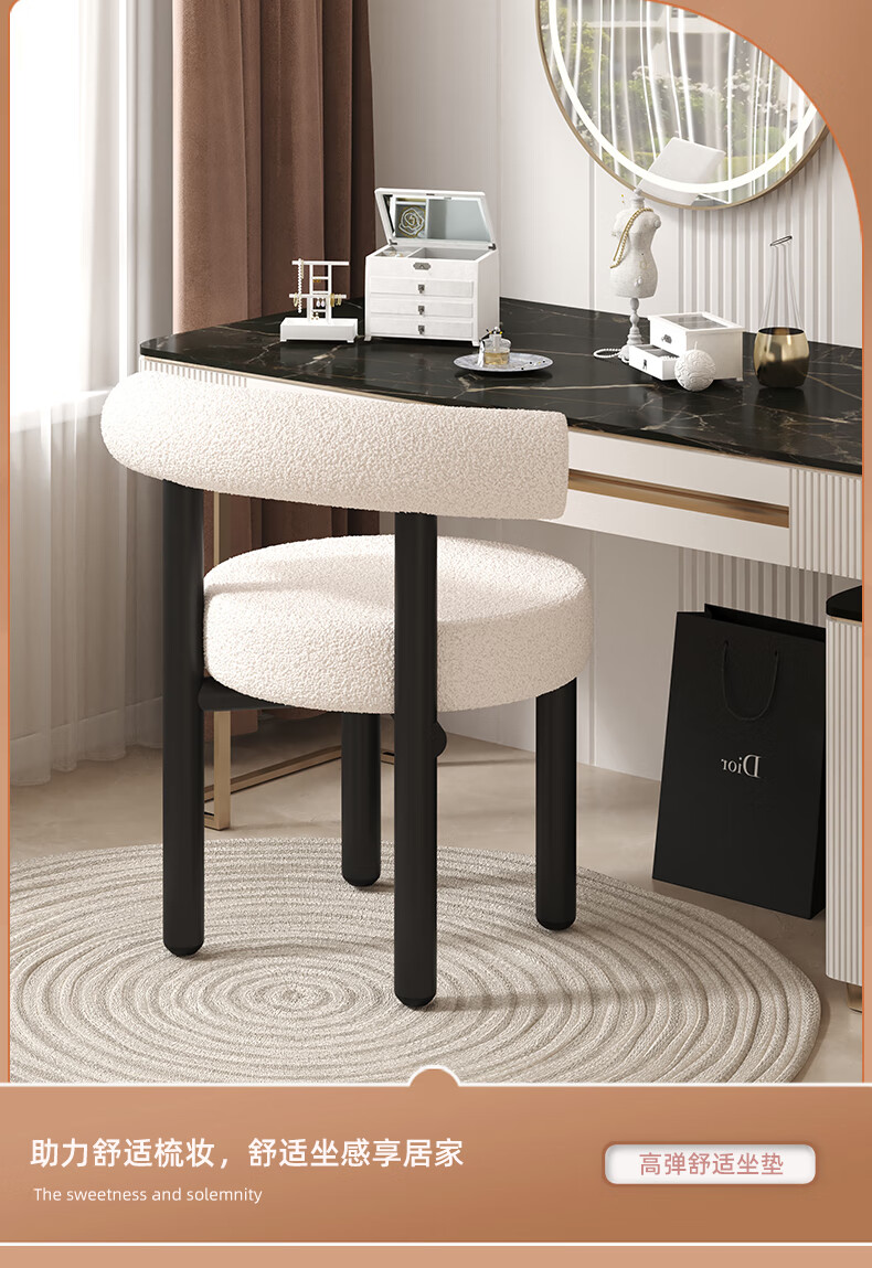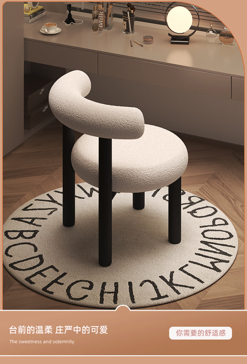 Jingpei Logistics Internet celebrity makeup stool bedroom sherpa dressing stool chair dressing table cloakroom makeup chair high resilience sponge white black legs-skin-friendly sherpa