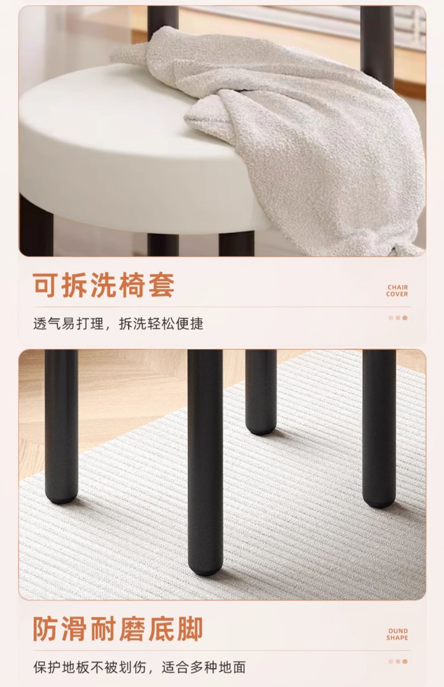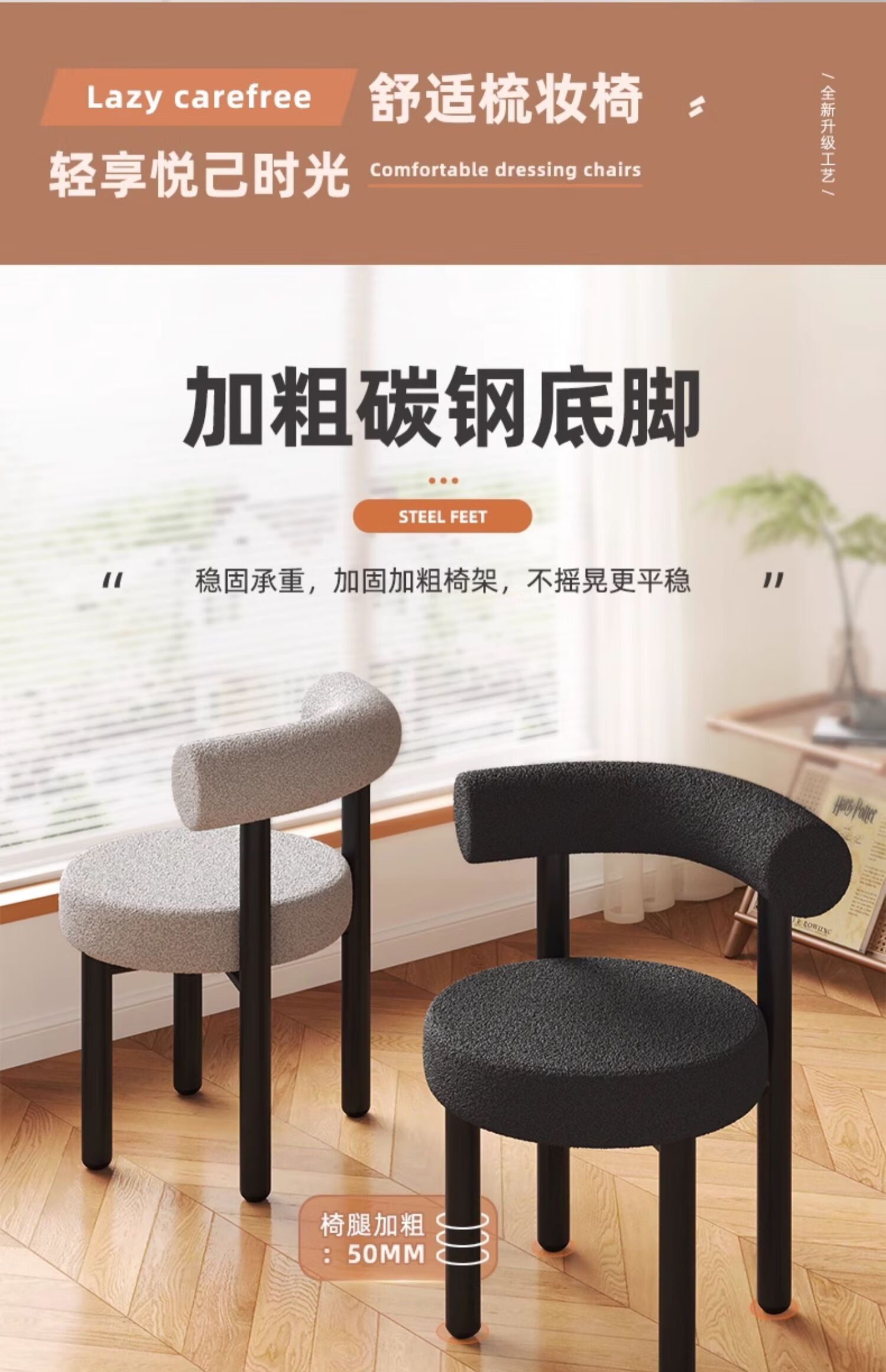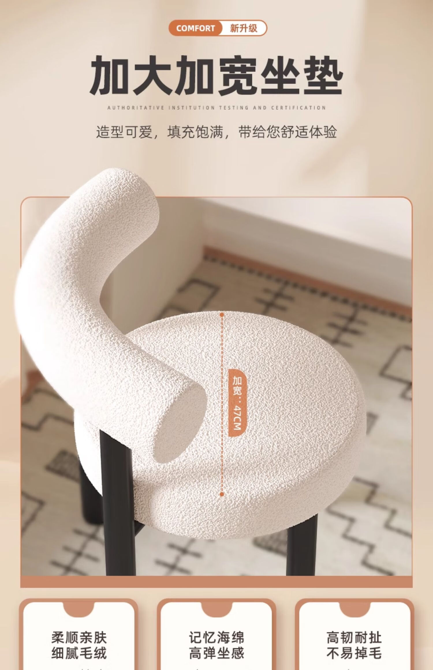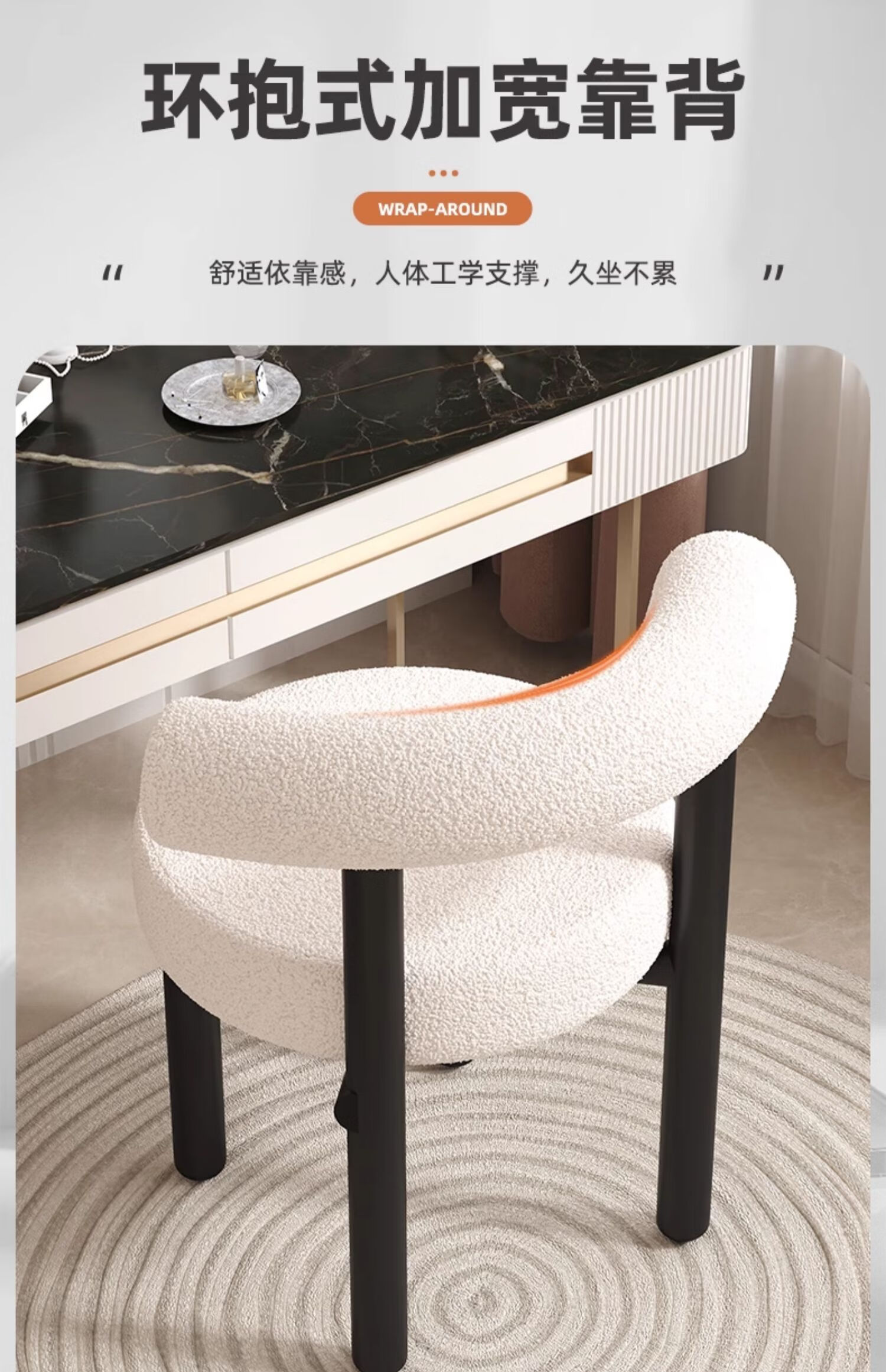 Jingpei Logistics Internet celebrity makeup stool bedroom sherpa dressing stool chair dressing table cloakroom makeup chair high resilience sponge white black legs-skin-friendly sherpa