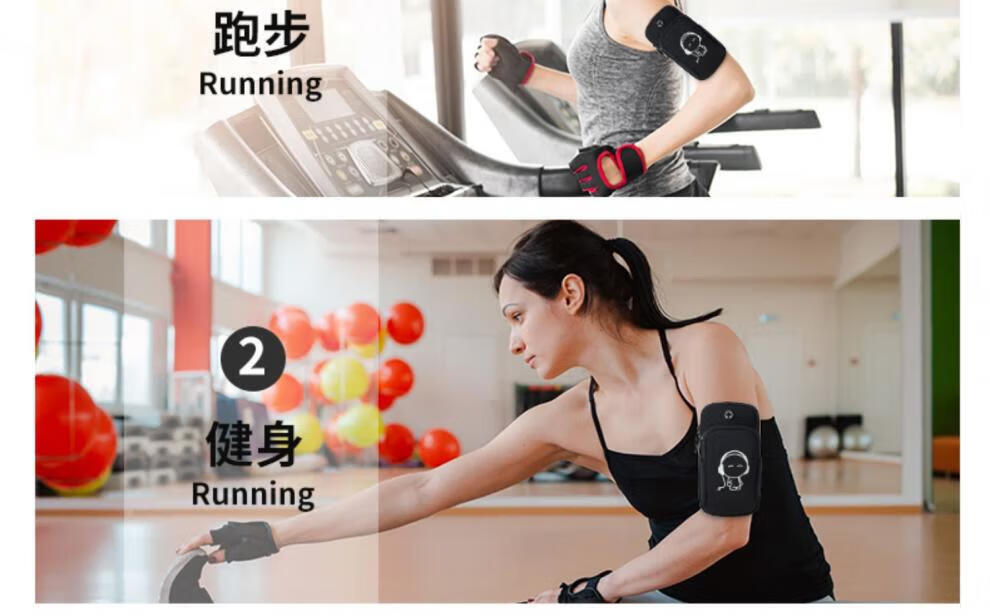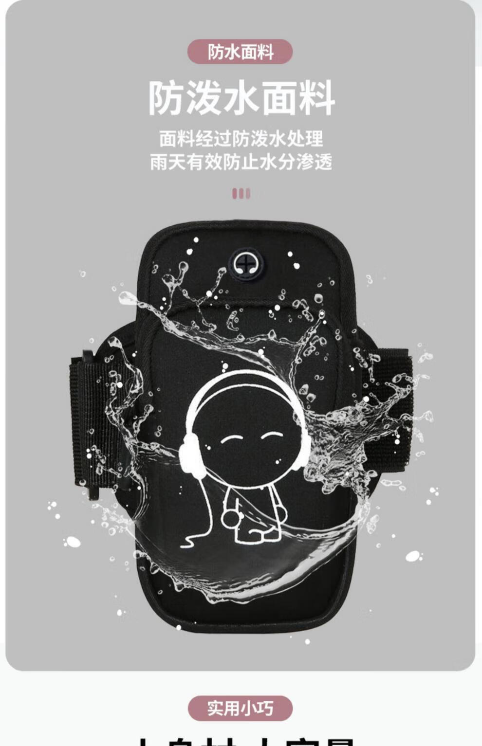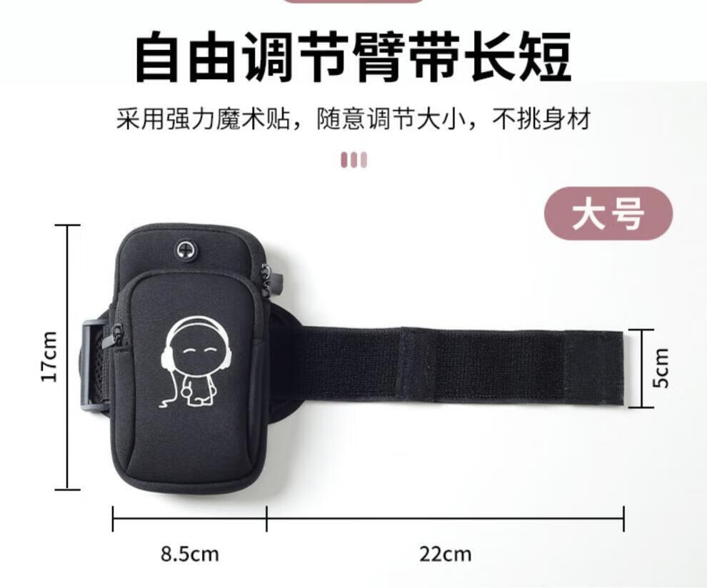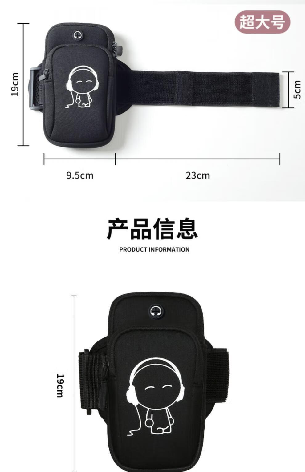Running mobile phone bag arm bag arm wrist men's equipment mobile phone bag fitness sports mobile phone arm cover a large black (luminous music expert)