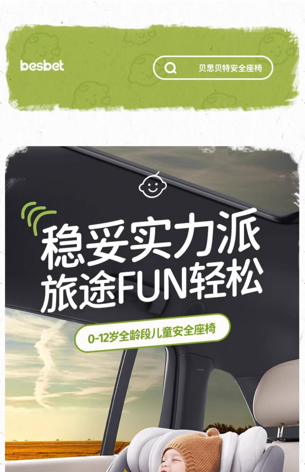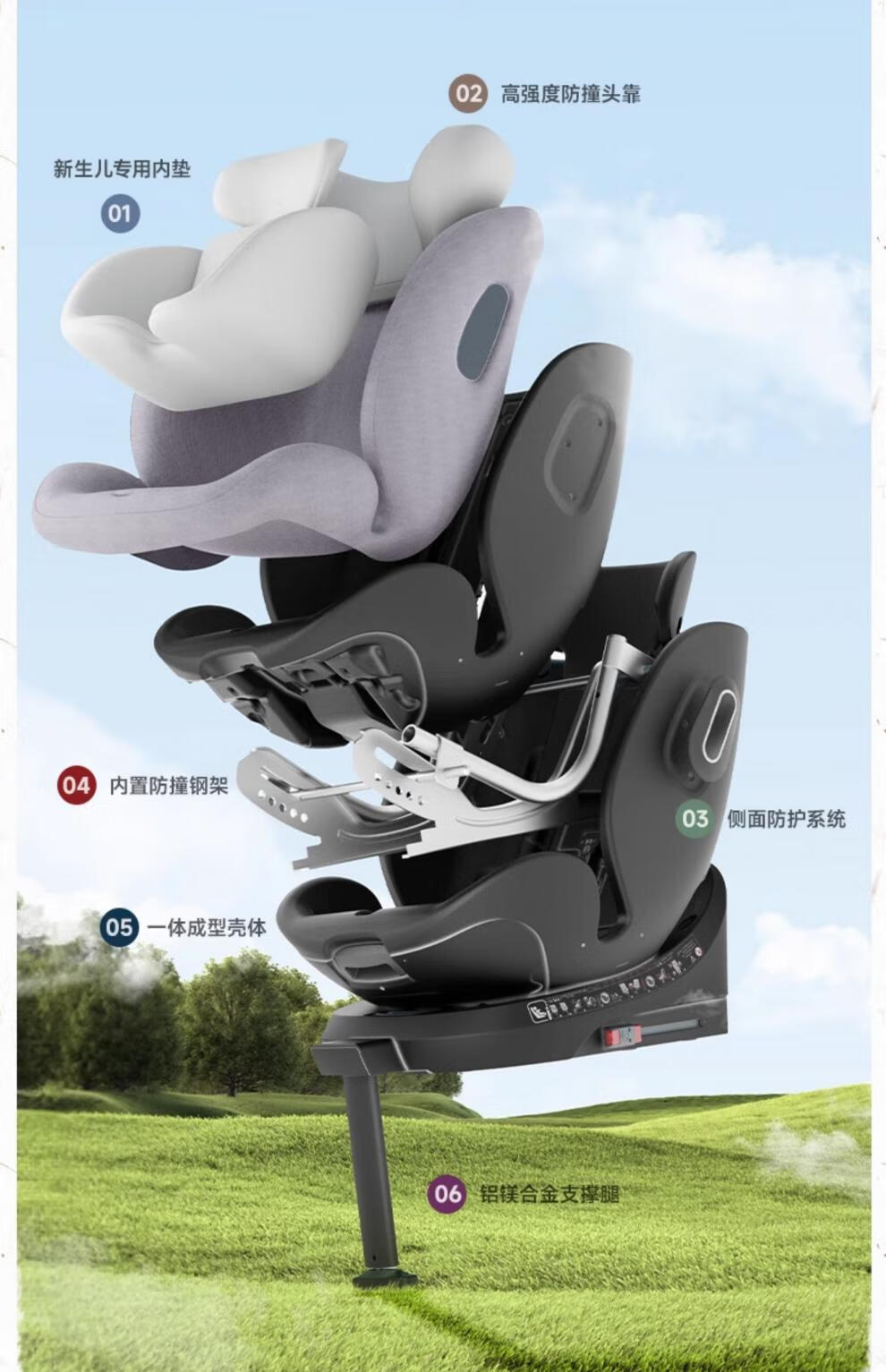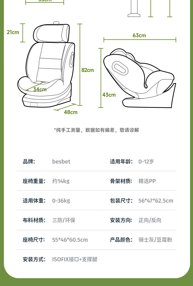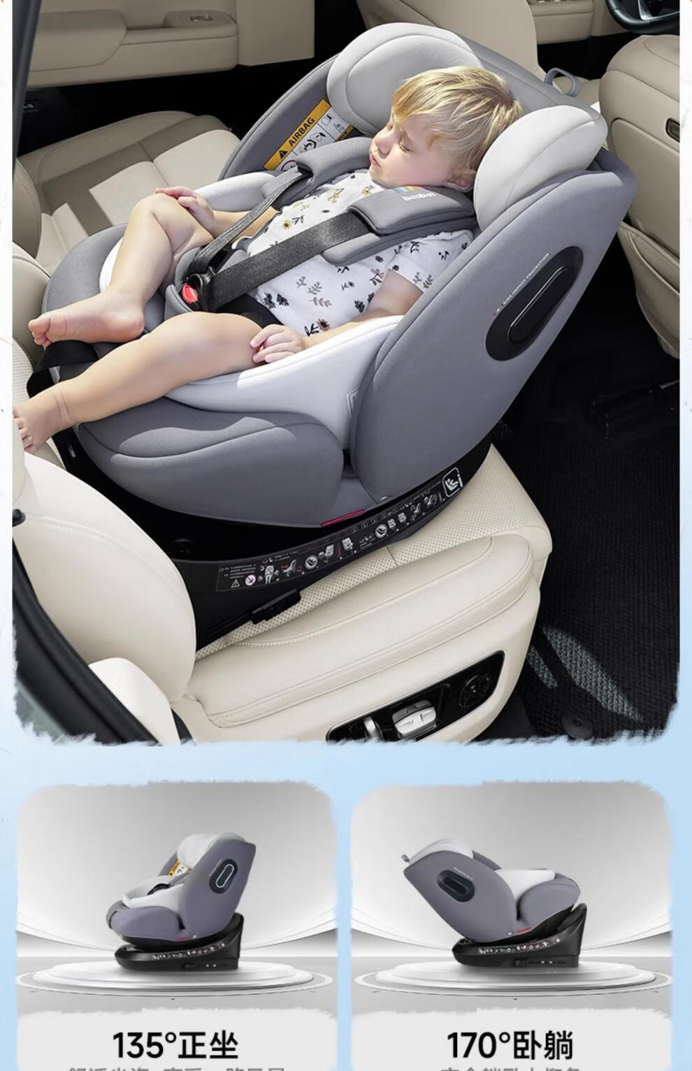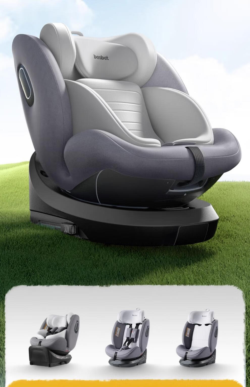 Besbet (besbet) children's isofix interface car seat for babies 0-12 years old, infant car 360-degree joy number - Xiaobailong (Platinum Edition)