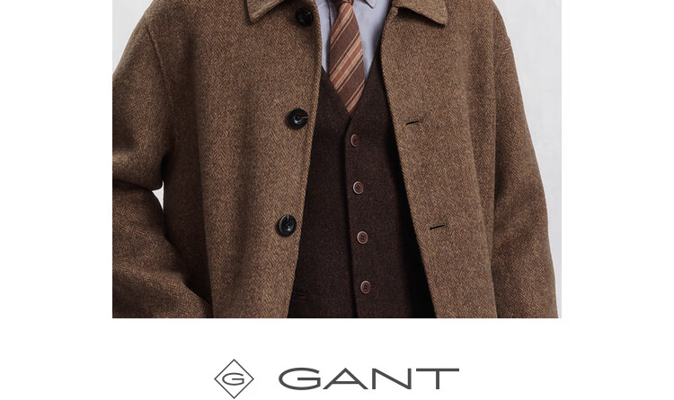 GANT/GANT 25 autumn and winter new men's mid-length lapel woolen coat jacket 210-Coffee XL