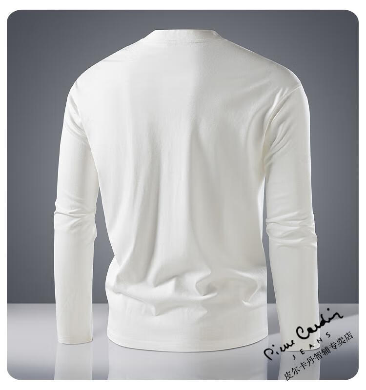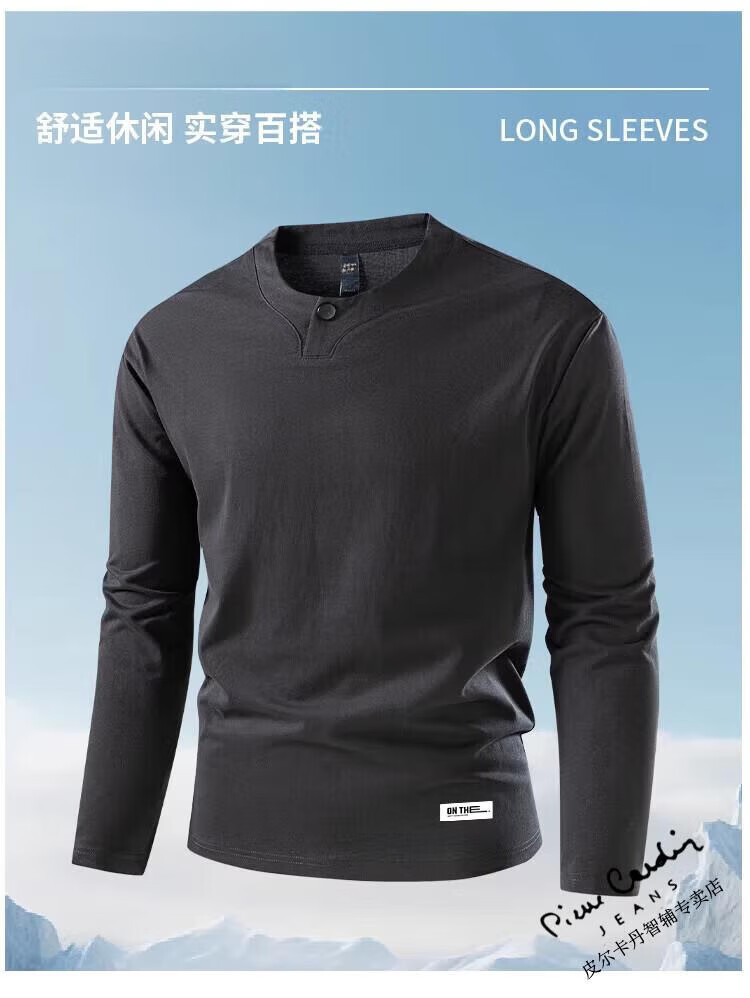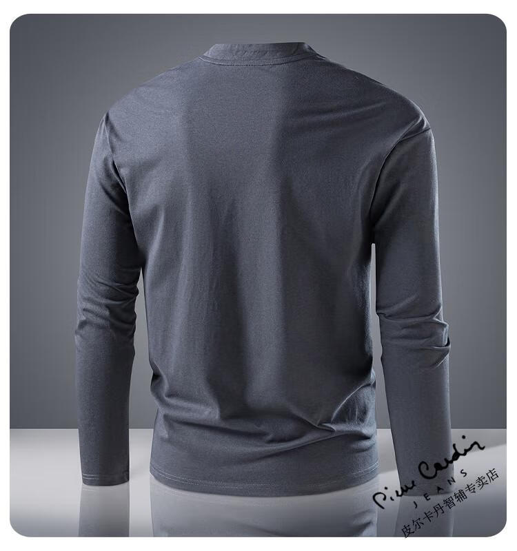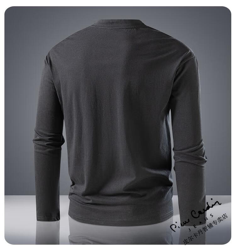 Pierre Cardin heavyweight Milan color spring and autumn new four-button Henry collar men's long-sleeved T-shirt business top bottoming shirt knitted dark gray L 175/92A