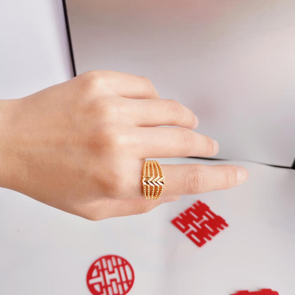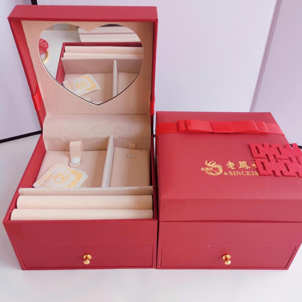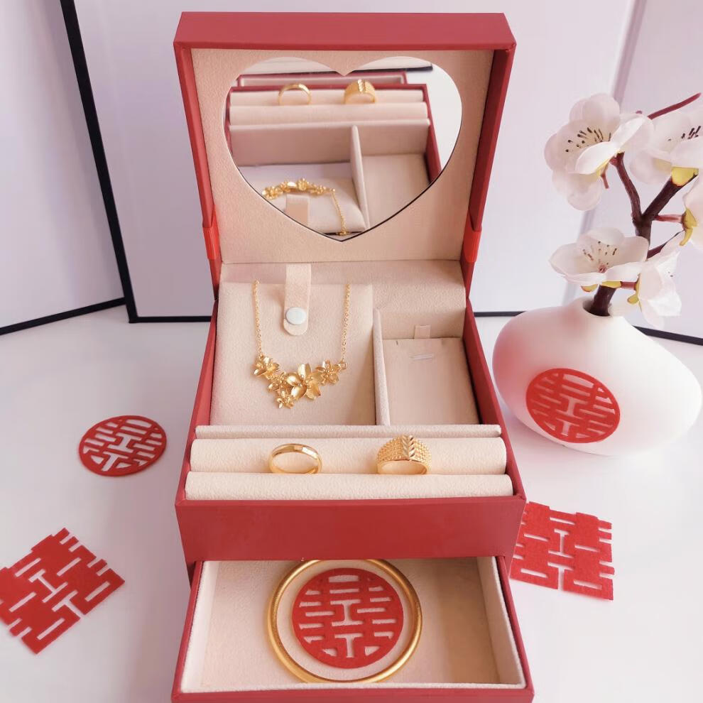 Engagement fake three-gold three-gold jewelry set, engagement simulation hardware set, wedding stage props, realistic three-shenghua hardware set + single-layer gift box + happy words