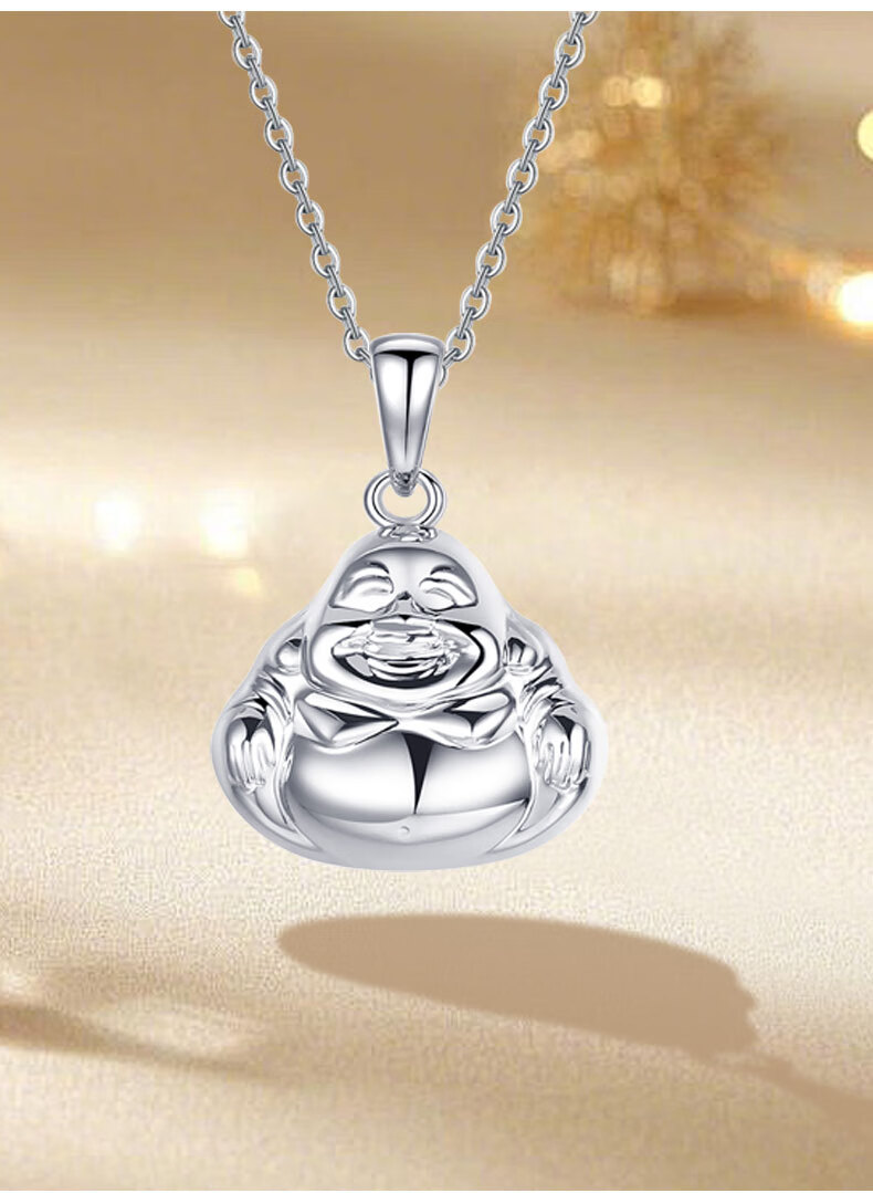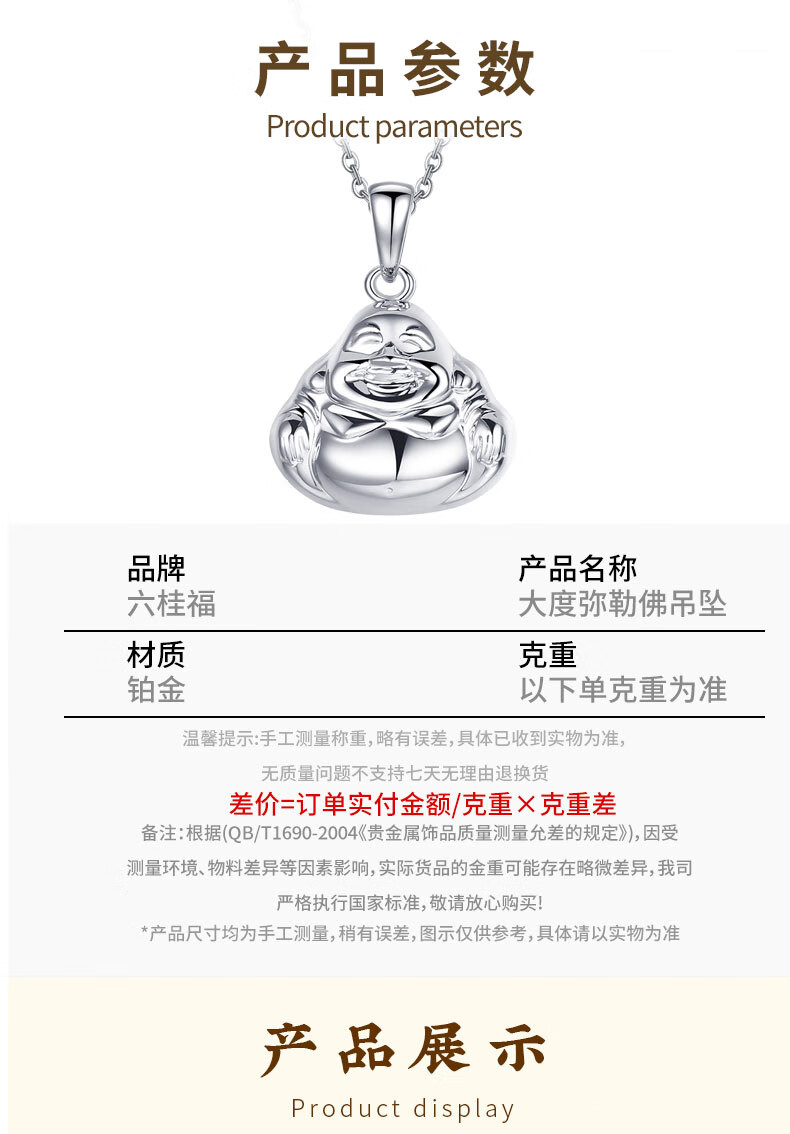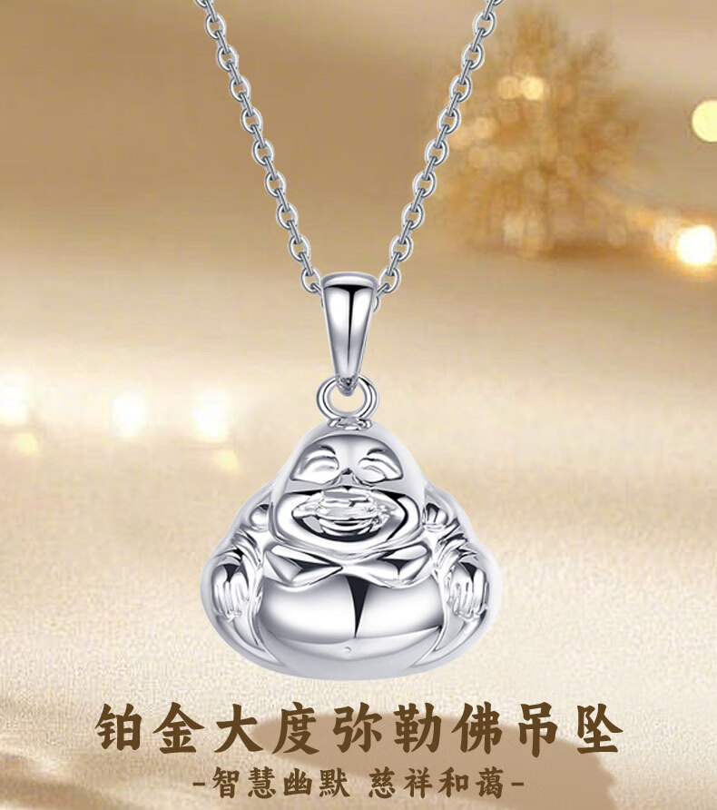 LIU GUI FU JEWELRY platinum Maitreya Buddha pendant necklace for girls 2025 new light luxury niche jewelry birthday gift for girlfriend 3.15g platinum Maitreya Buddha pendant