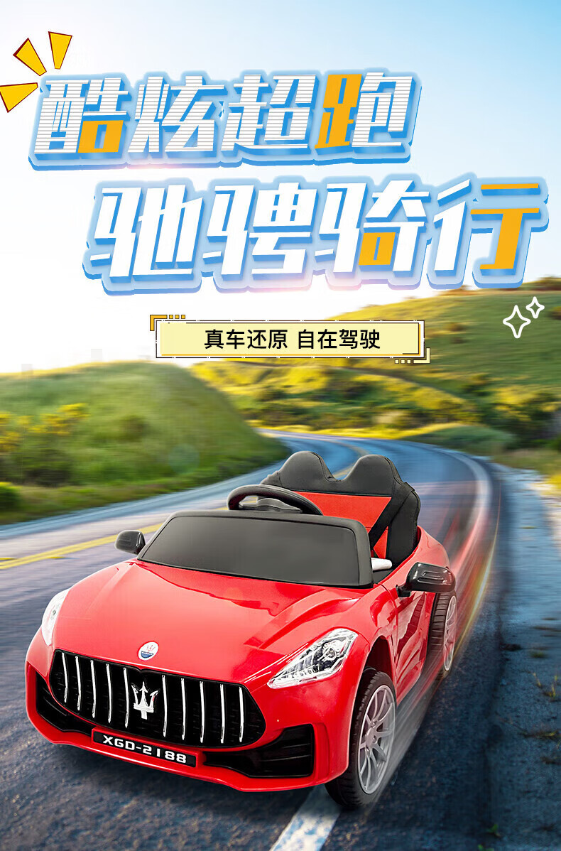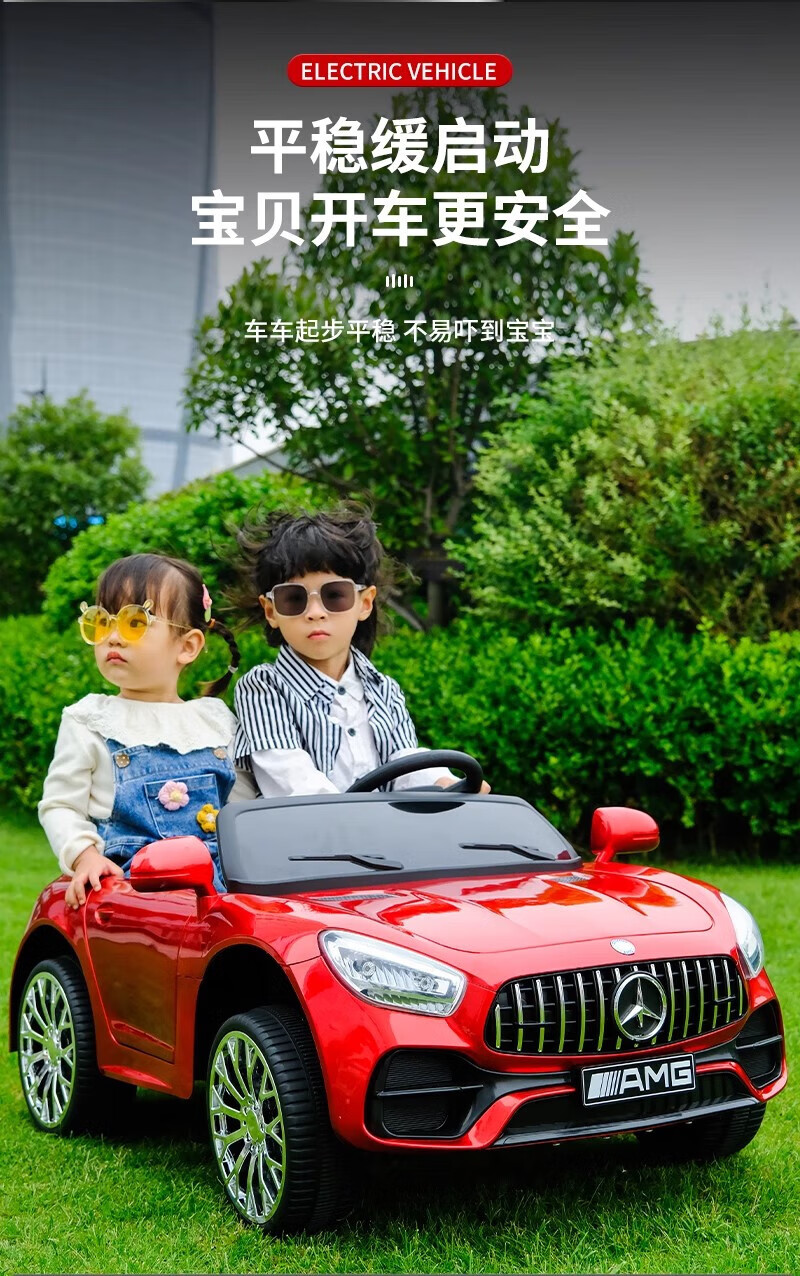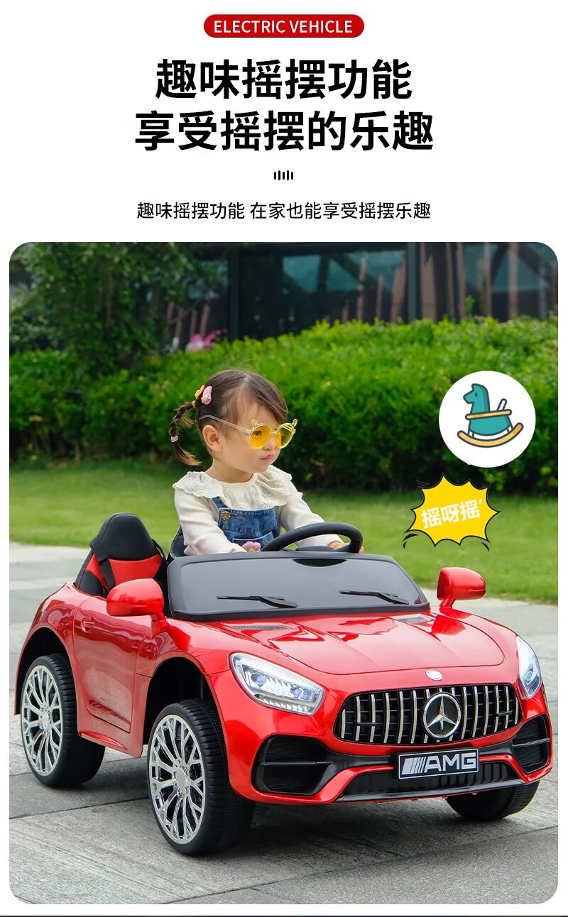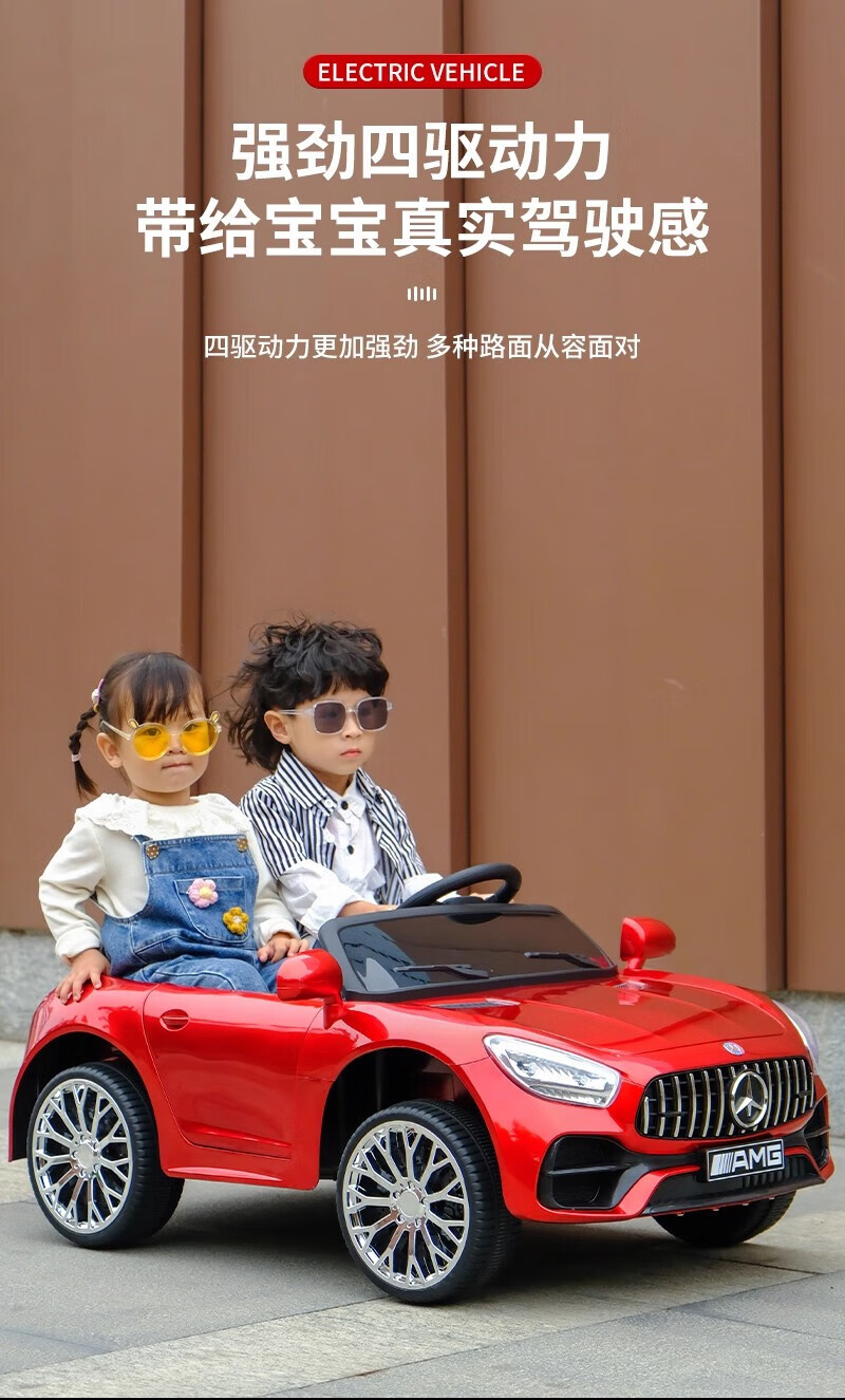 Fun Baby Masha children's electric car can sit on the remote control car for adults, the child can drive the stroller toy car, four-wheel electric, red, without remote control