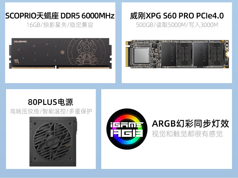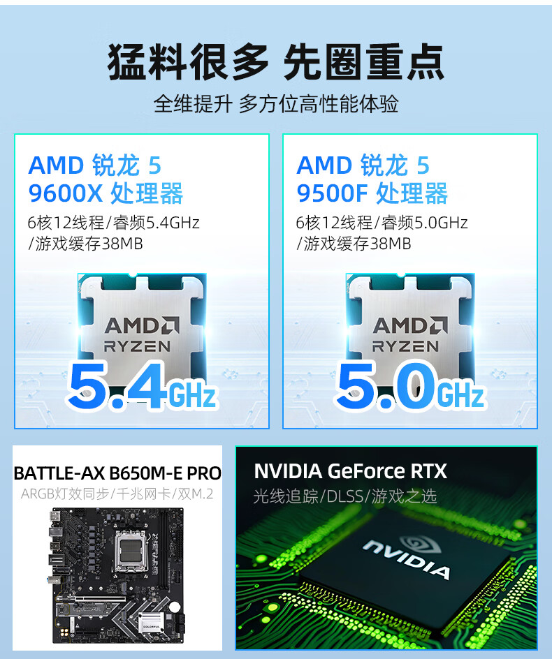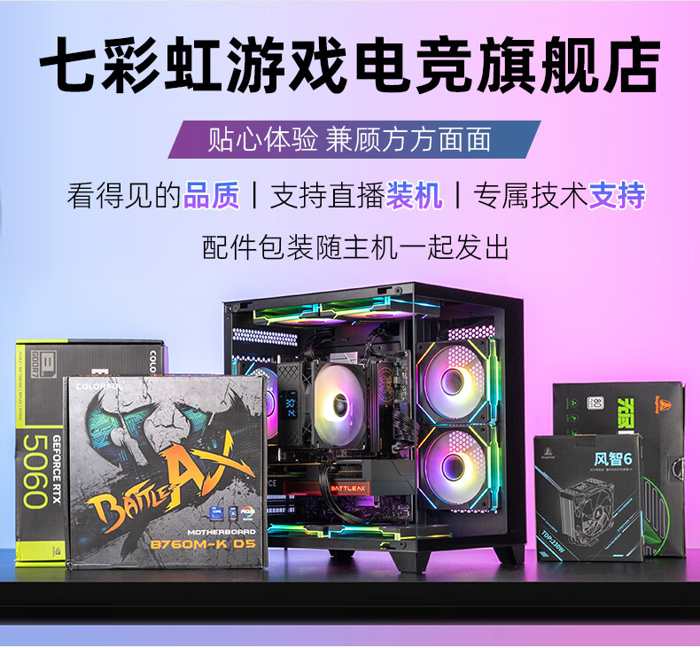 Colorful amd Ruilong r5 9600x/9500f rtx5070/5060ti/5050 graphics card sea view room desktop assembly computer host game e-sports flagship store diy complete machine eight R5 9600X+5070+500G+16G