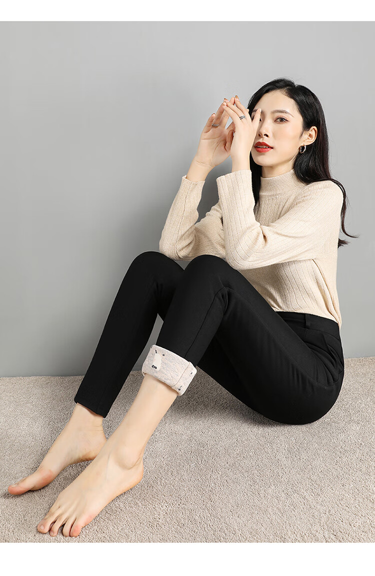 MiiOW silk cotton pants for women to wear in winter, thickened large size, high waist, slimming leggings, new velvet warm pants for small feet, silk-filled lamb lining 2XL recommended 105-120 Jin Jin is equal to 0.5 kg