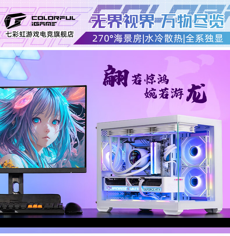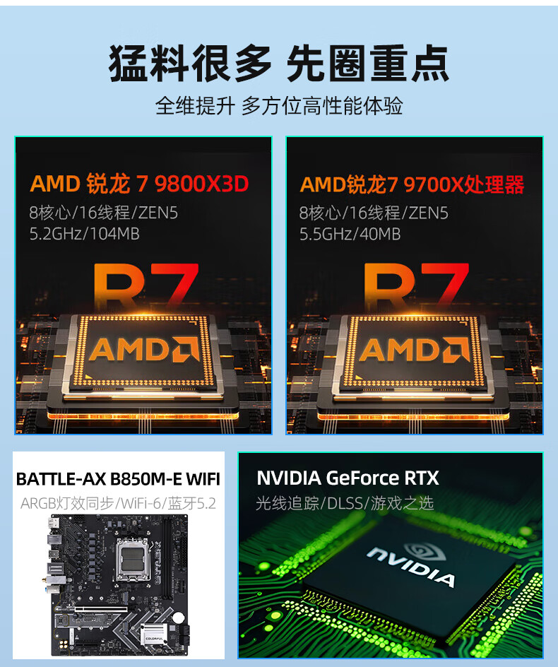 Colorful amd Ruilong r7 9800x3d/9700x rtx5080/5070ti/5060 white sea view room desktop assembly computer host game e-sports flagship store diy complete machine three R7 9700X+5060T16+1T+32G
