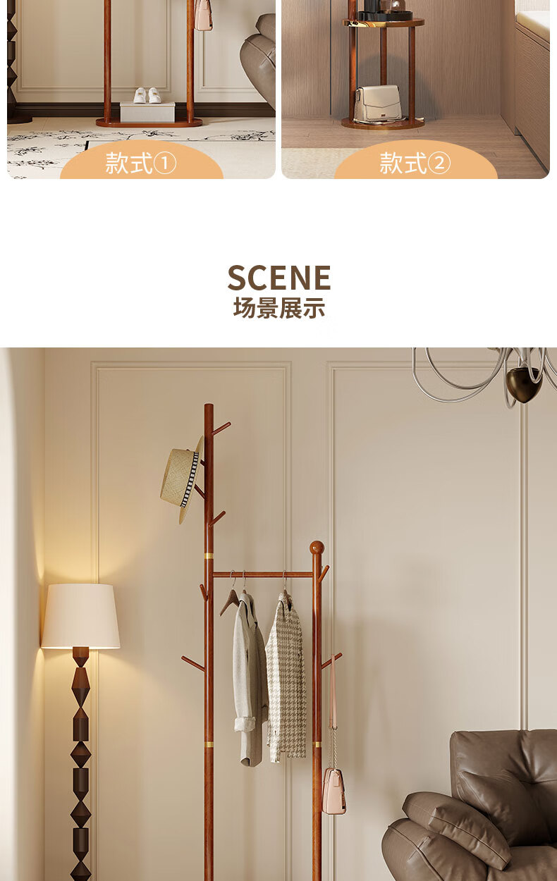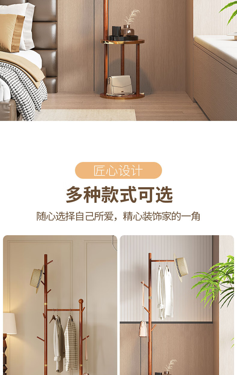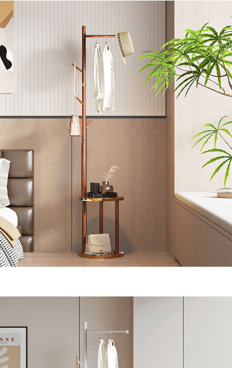 Miaoli solid wood clothes hanger floor-standing coat rack room storage bedroom clothes hanger indoor home vertical clothes storage rack single layer oval plate-walnut color solid solid wood
